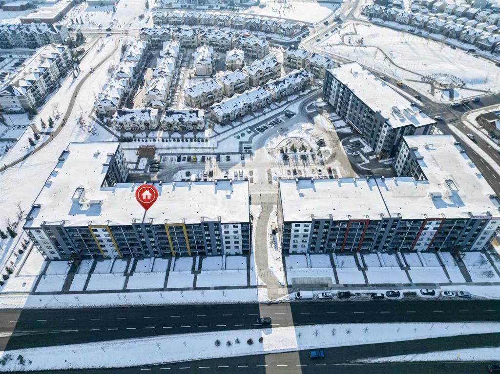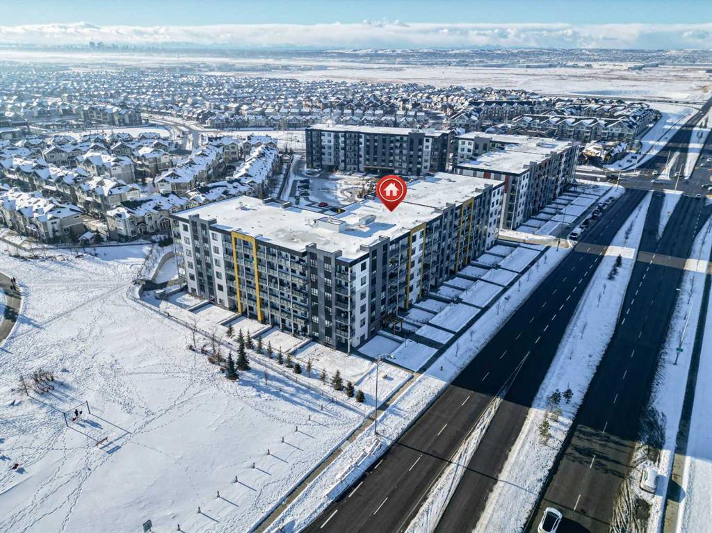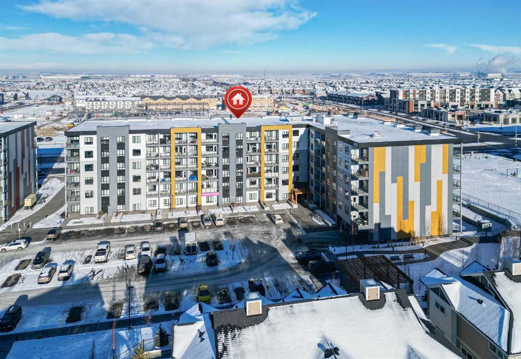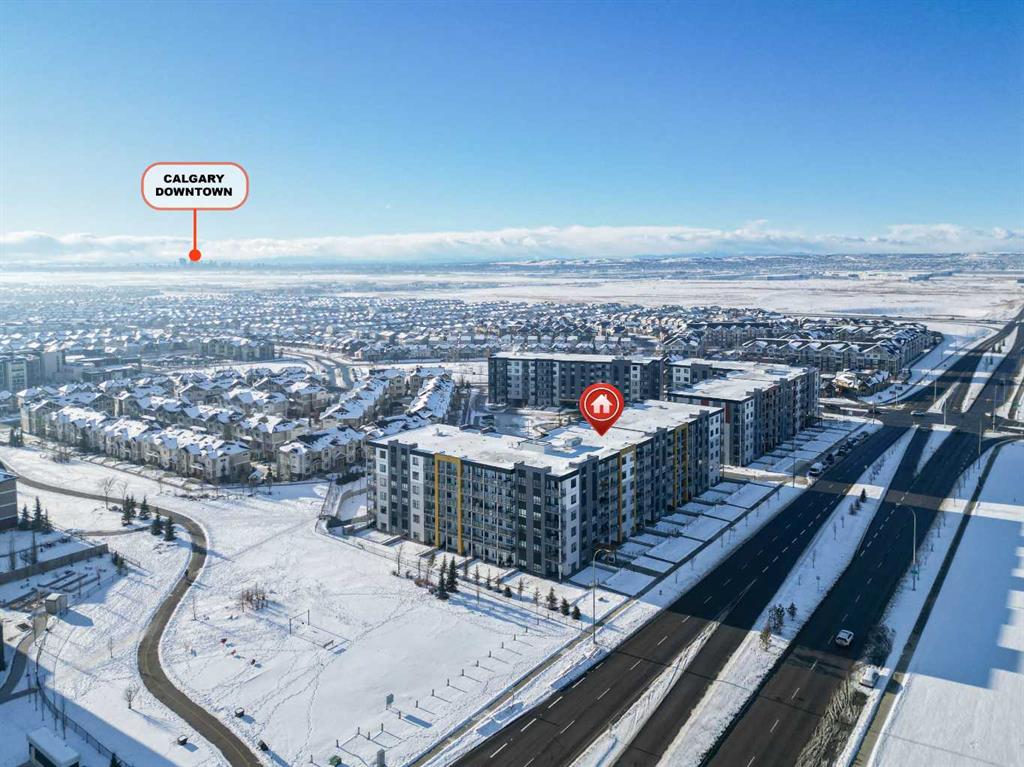 Welcome to 3613, 60 Skyview Ranch Road NE — a bright and thoughtfully designed 2-bed, 2-bath condo offering 708.99 sq ft of modern, comfortable living. This inviting home features durable vinyl plank flooring throughout, tile in both bathrooms, and an abundance of pot lights that enhance the clean, contemporary feel. Large windows fill the space with natural light, creating a warm and open atmosphere. The kitchen is stylish and functional, complete with stainless steel appliances including a microwave hood fan, stove, refrigerator, and dishwasher. Stone countertops, generous drawers, and a convenient breakfast bar make this space perfect for cooking, hosting, or enjoying a relaxed morning coffee. The primary bedroom includes a walk-in closet and a private ensuite with a spacious walk-in shower. The second bedroom is well-sized, with the nearby full bathroom offering a tub/shower combo — ideal for guests or roommates. In-suite stacking laundry adds everyday convenience. This unit includes a titled underground parking stall, access to bicycle storage, and the building features two elevators for easy movement throughout. The community also offers a lovely picnic area, perfect for enjoying sunny days outdoors. Located with quick access to Metis Trail, Stoney Trail, and Deerfoot Trail, commuting is seamless, and you’re just a short drive from the shopping, dining, and entertainment at CrossIron Mills. A great opportunity for first-time buyers, downsizers, or investors looking for comfort and convenience in a well-connected location.
