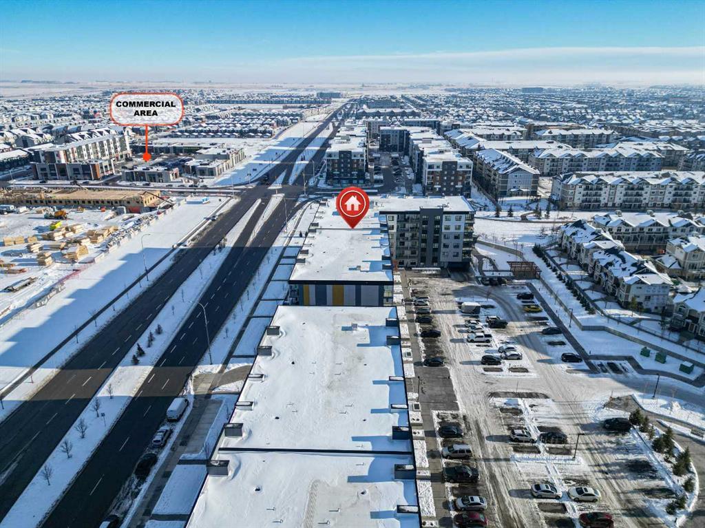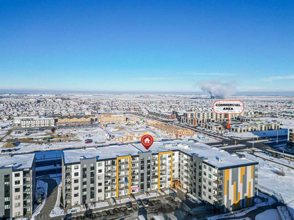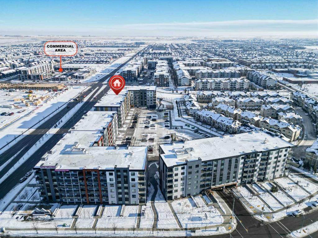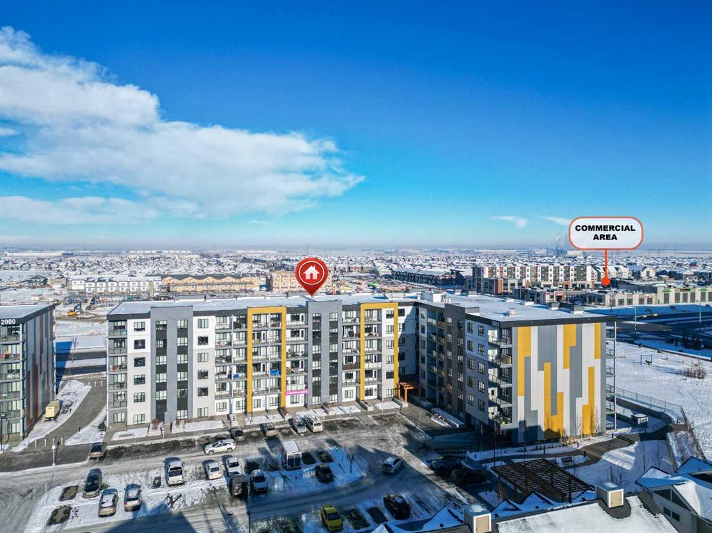 Welcome to 3613, 60 Skyview Ranch Road NE — a bright and thoughtfully designed 2-bed, 2-bath condo offering 708.99 sq ft of modern, comfortable living. This inviting home features durable vinyl plank flooring throughout, tile in both bathrooms, and an abundance of pot lights that enhance the clean, contemporary feel. Large windows fill the space with natural light, creating a warm and open atmosphere. The kitchen is stylish and functional, complete with stainless steel appliances including a microwave hood fan, stove, refrigerator, and dishwasher. Stone countertops, generous drawers, and a convenient breakfast bar make this space perfect for cooking, hosting, or enjoying a relaxed morning coffee. The primary bedroom includes a walk-in closet and a private ensuite with a spacious walk-in shower. The second bedroom is well-sized, with the nearby full bathroom offering a tub/shower combo — ideal for guests or roommates. In-suite stacking laundry adds everyday convenience. This unit includes a titled underground parking stall, access to bicycle storage, and the building features two elevators for easy movement throughout. The community also offers a lovely picnic area, perfect for enjoying sunny days outdoors. Located with quick access to Metis Trail, Stoney Trail, and Deerfoot Trail, commuting is seamless, and you’re just a short drive from the shopping, dining, and entertainment at CrossIron Mills. A great opportunity for first-time buyers, downsizers, or investors looking for comfort and convenience in a well-connected location.