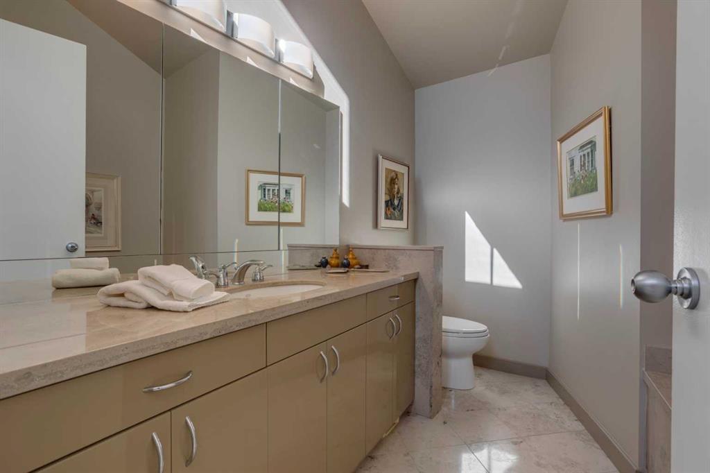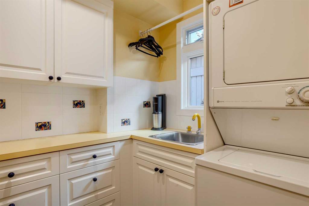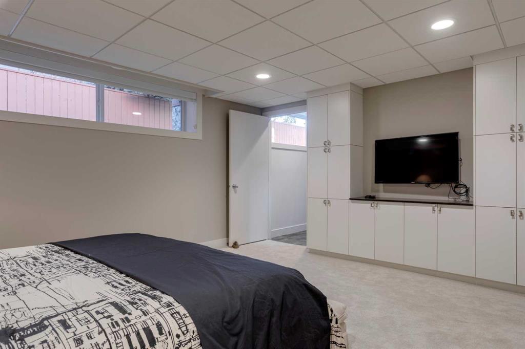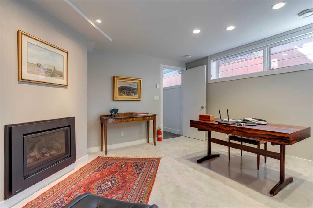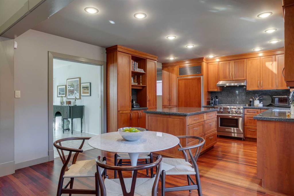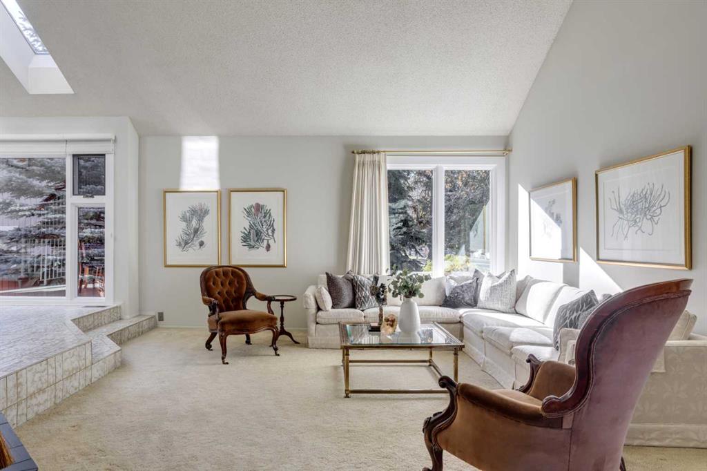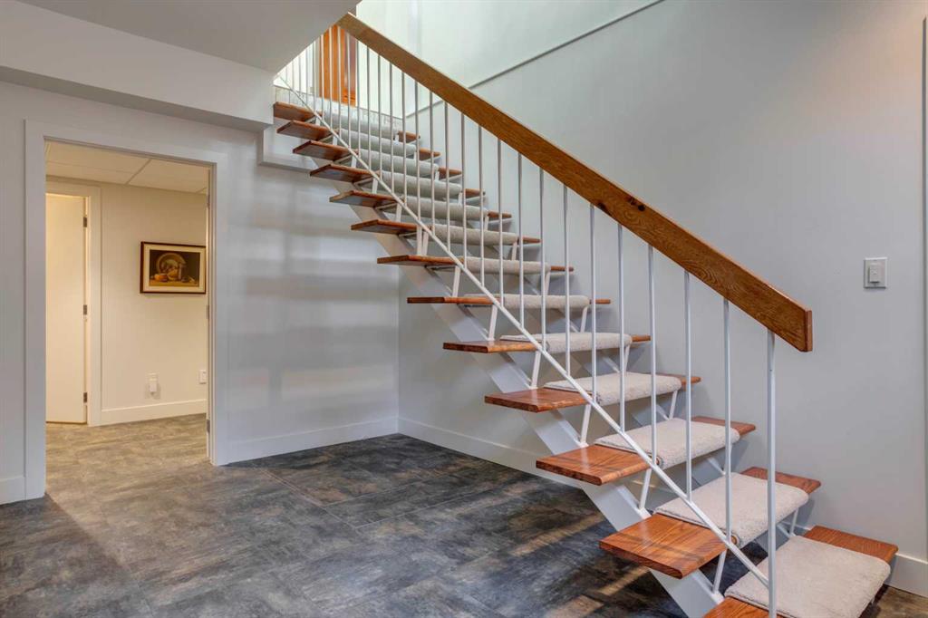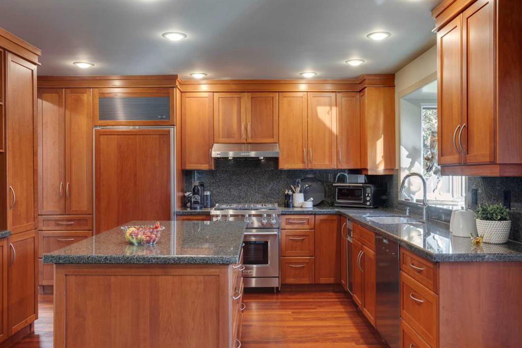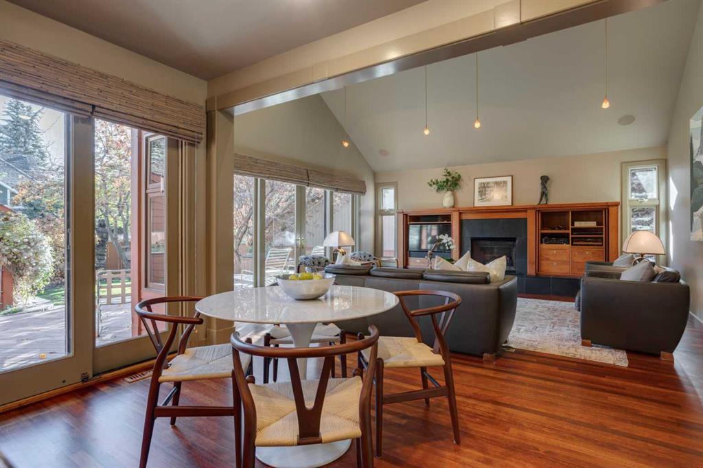 This modern-architectural family home offers an unbeatable location in the heart of West Elbow Park on a quiet street. The community centre is at the end of the block with tennis, basketball, skating, playfield and an off-leash area. Just over a block to Elbow Park School with other top schools close by. Also a quick walk to The Glencoe Club and the river pathway system for walking and biking. Large 50’ x 125’ (6243 sq ft) lot. Architect Robert Miller designed this significant home which incorporates site-specific design to capture maximum natural light and provide exciting spatial volumes. Very much a “Dwell Magazine” vibe. Over 3600 square feet total development with 4 bedrooms and 3.5 baths. Expansive main floor plan with living room and dining room at the front to host family and friends while enjoying the wood-burning fireplace, wet-bar and dramatically vaulted ceilings. Open plan across the rear overlooking the yard. Newer high-end kitchen with great workspace, storage and top appliances (Subzero, Wolf and Miele) adjacent to a casual dining space. Large family room with vaulted ceilings, gas fireplace and built ins. Real site-finished hardwood floors run throughout. A mudroom, laundry room and 2-piece powder room complete the main level. The bright upper floor holds 3 bedrooms including a large primary suite with closet wall and renovated 3-piece ensuite with shower. 2 additional bedrooms with vaulted ceilings and a renovated house bath with soaking tub. Superior lower level…a result of the newer vintage of the home. Great windows and nice ceiling height throughout the recreation room with fireplace, large 4th bedroom, renovated bath and extensive storage. Access out from the kitchen and family room to a full width deck and fenced yard with large grassed playspace. Oversized double garage off the paved alley. A rare opportunity!