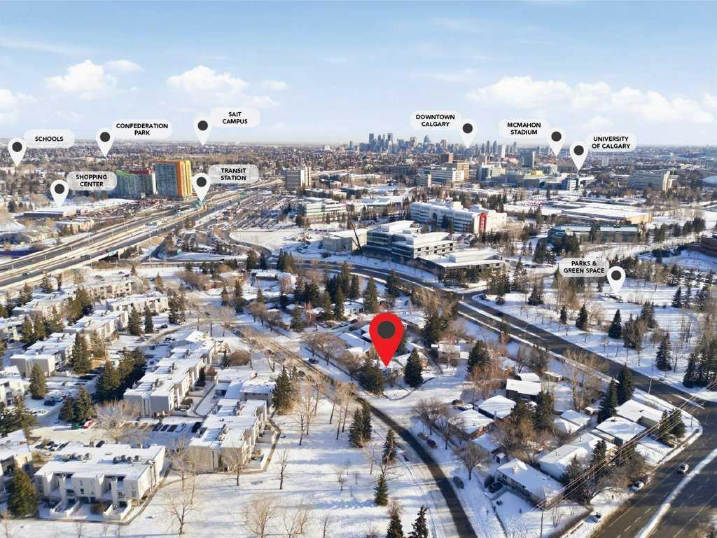 Welcome to this bright and sunny 4-level split located on a corner lot in the desirable community of Varsity. This home offers 3 bedrooms, 2 full bathrooms, and a private yard, making it an excellent option for families or investors. The main level features a spacious entryway, a cozy family room with a wood-burning fireplace, a large laundry room with a new washing machine, and a full bathroom. The kitchen level offers granite countertops, stainless steel appliances, and built-in cabinetry for added storage. The open-concept dining and living areas are filled with natural light from large windows, creating a warm and inviting space. Upstairs, you’ll find three well-sized bedrooms and a 4-piece bathroom. The finished basement includes a large open recreation room with a bar, wood-burning fireplace, and built-in Murphy bed, along with abundant storage in the crawl space. Recent updates to the home include a brand-new roof installed in 2025. Outside, enjoy a fully fenced and large private backyard with a single detached garage and a concrete RV parking pad. Ideally located within walking distance to the University of Calgary and a 9 minute walk to the LRT Station, this is a fantastic opportunity in a prime location.