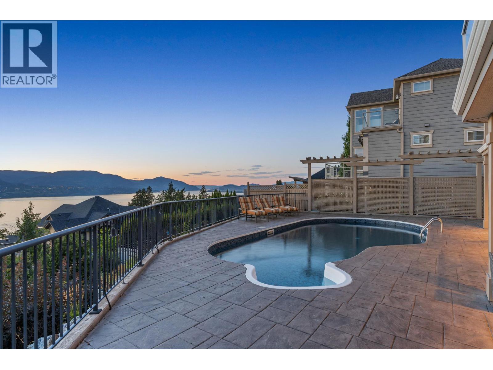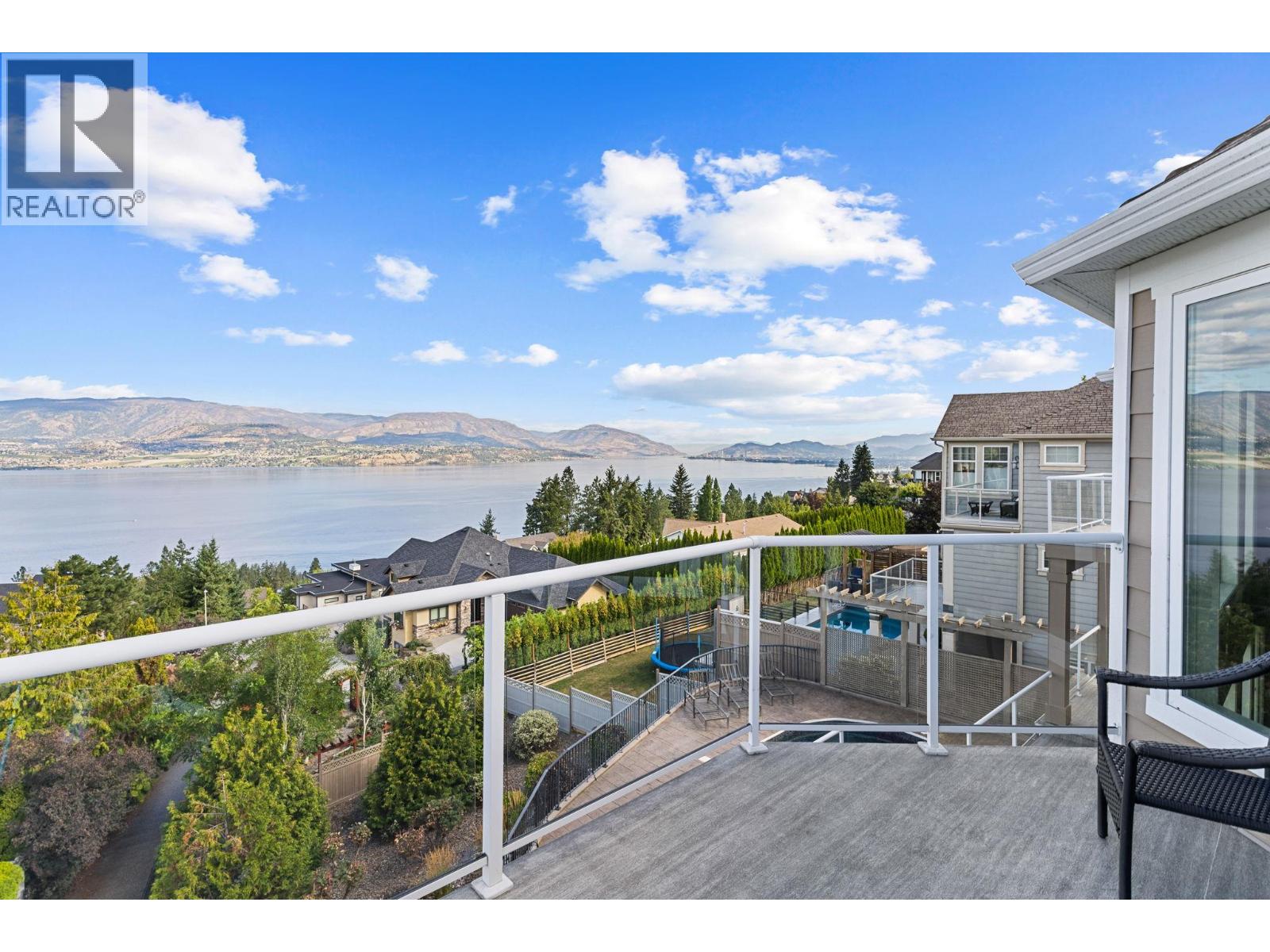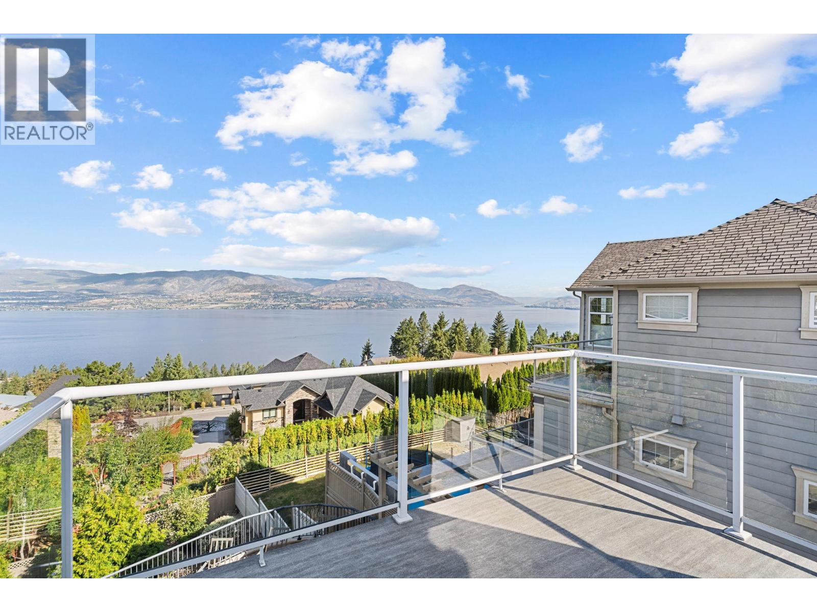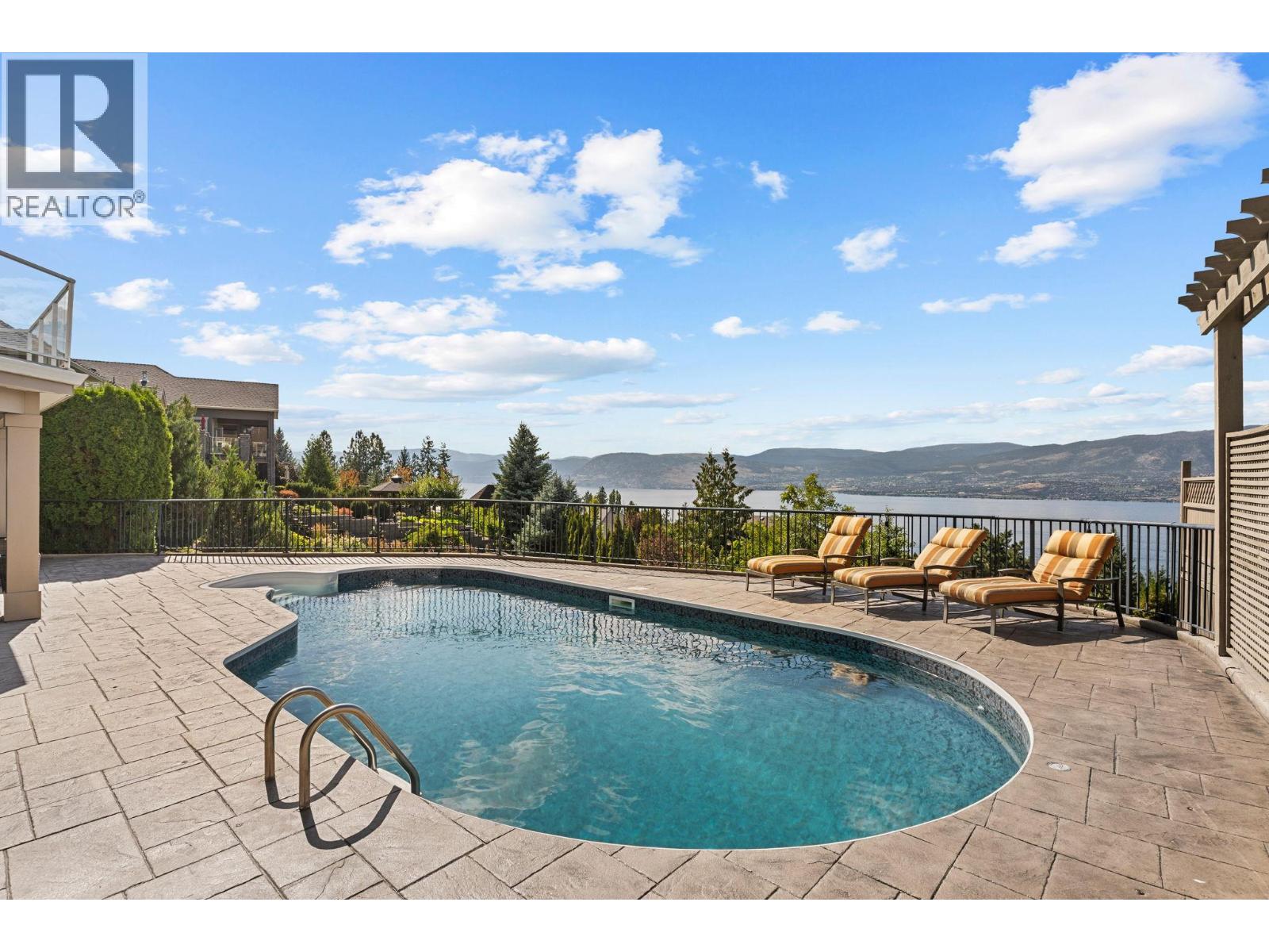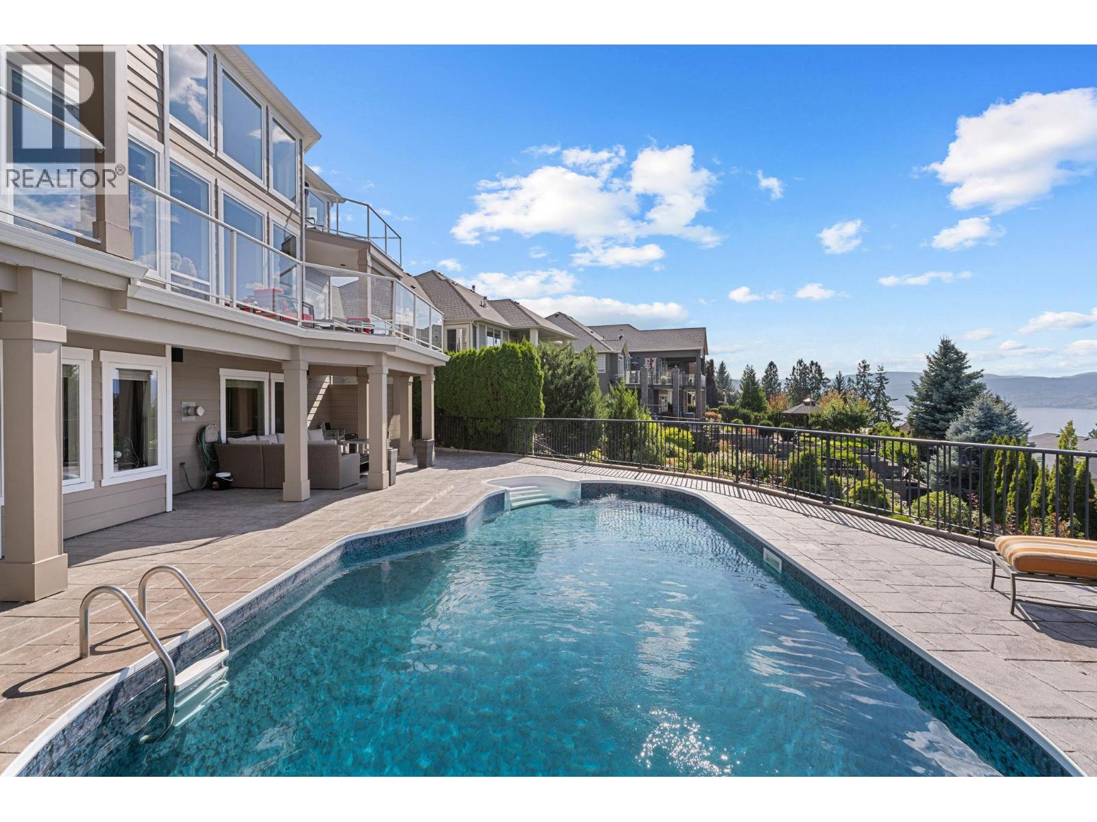 Welcome to this stunning, freshly painted, 5 bed, 4.5 bath home located on the ""Ledge"", distinguished homes on Quilchena Drive facing the Lake. Located in the heart of Kettle Valley. No hills, no worries, luxury, light, and lifestyle come together. Designed to impress, this residence features expansive open-concept living with panoramic lake views from every floor. Massive 20 foot ceilings flood the home with natural light, framing the Okanagan at its finest. There are three full bedrooms upstairs highlighted by a 625 square foot master suite. The chef-style kitchen flows seamlessly into the main living and dining areas perfect for entertaining or quiet evenings at home. Step outside to your private backyard oasis complete with a beautiful pool, sun-soaked patio, and views that truly make this the best lot on the street. The walk-out basement offers flexible space, including a dedicated gym room, media area, and guest suite potential. Every detail in this home is thoughtfully designed for upscale family living. All this on a flat street just steps from Kettle Valley Park, and 5 minute walking distance to grocery stores, schools, and amenities. Homes with this combination of design, location, and view rarely come to market.