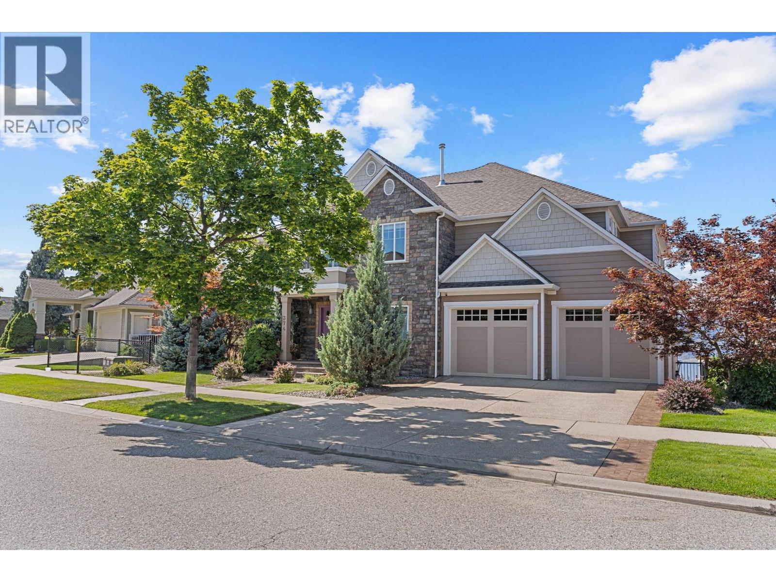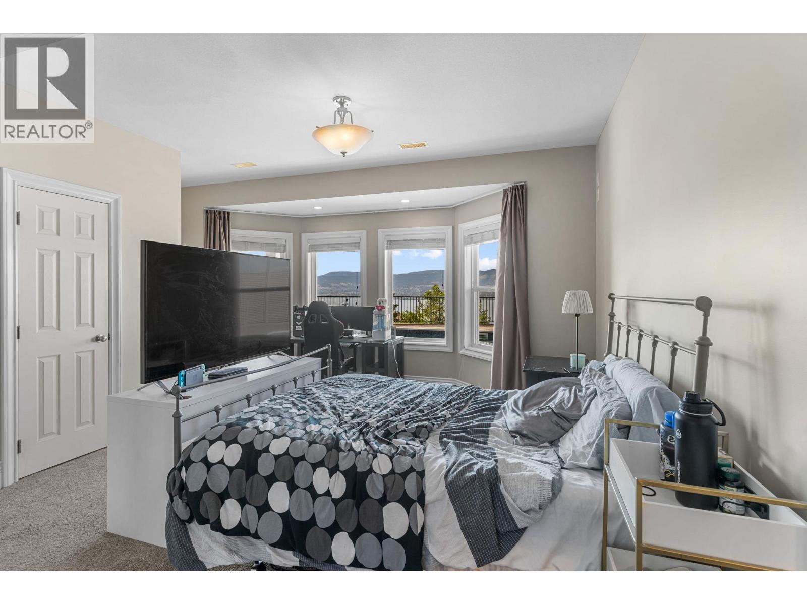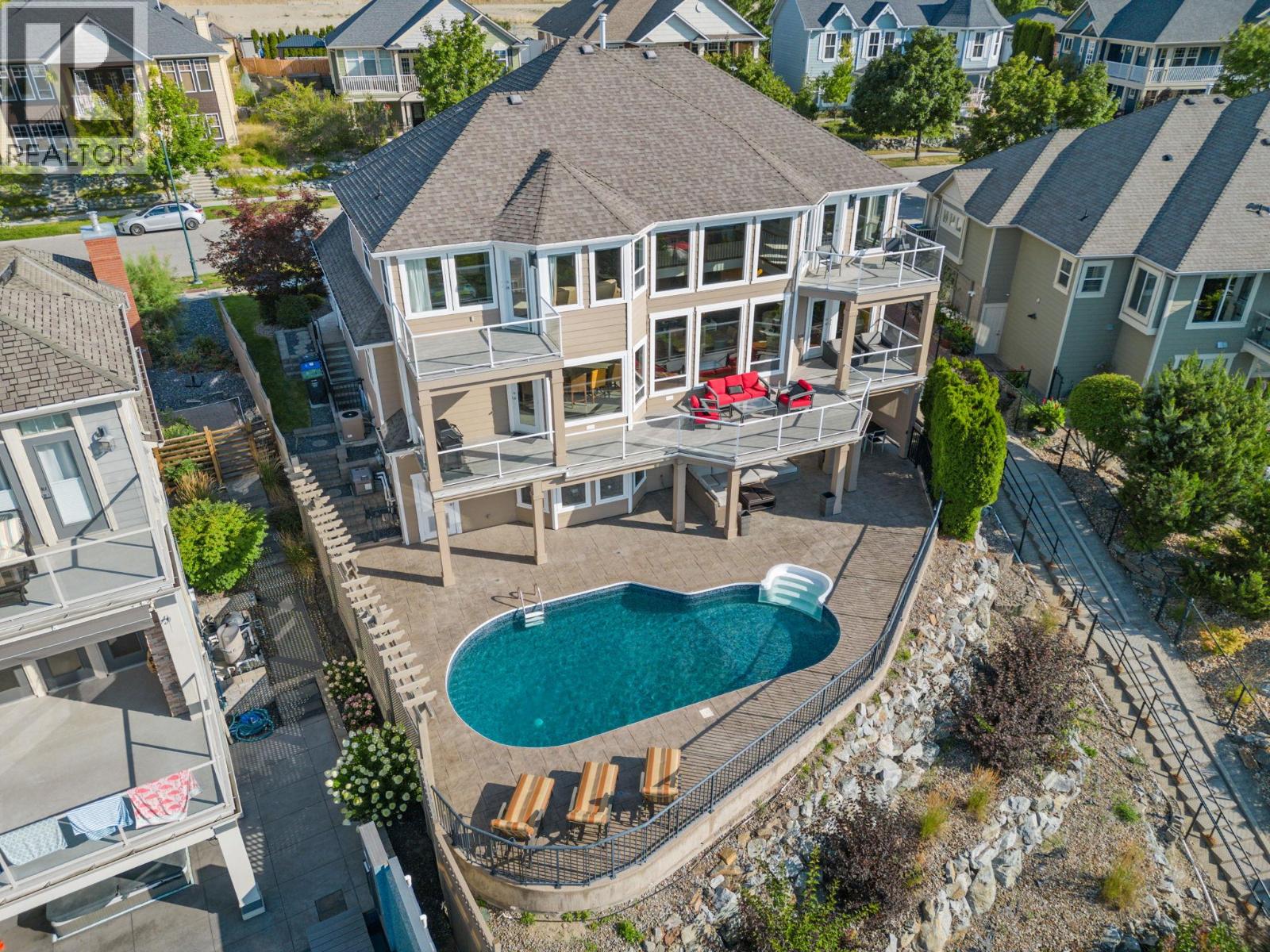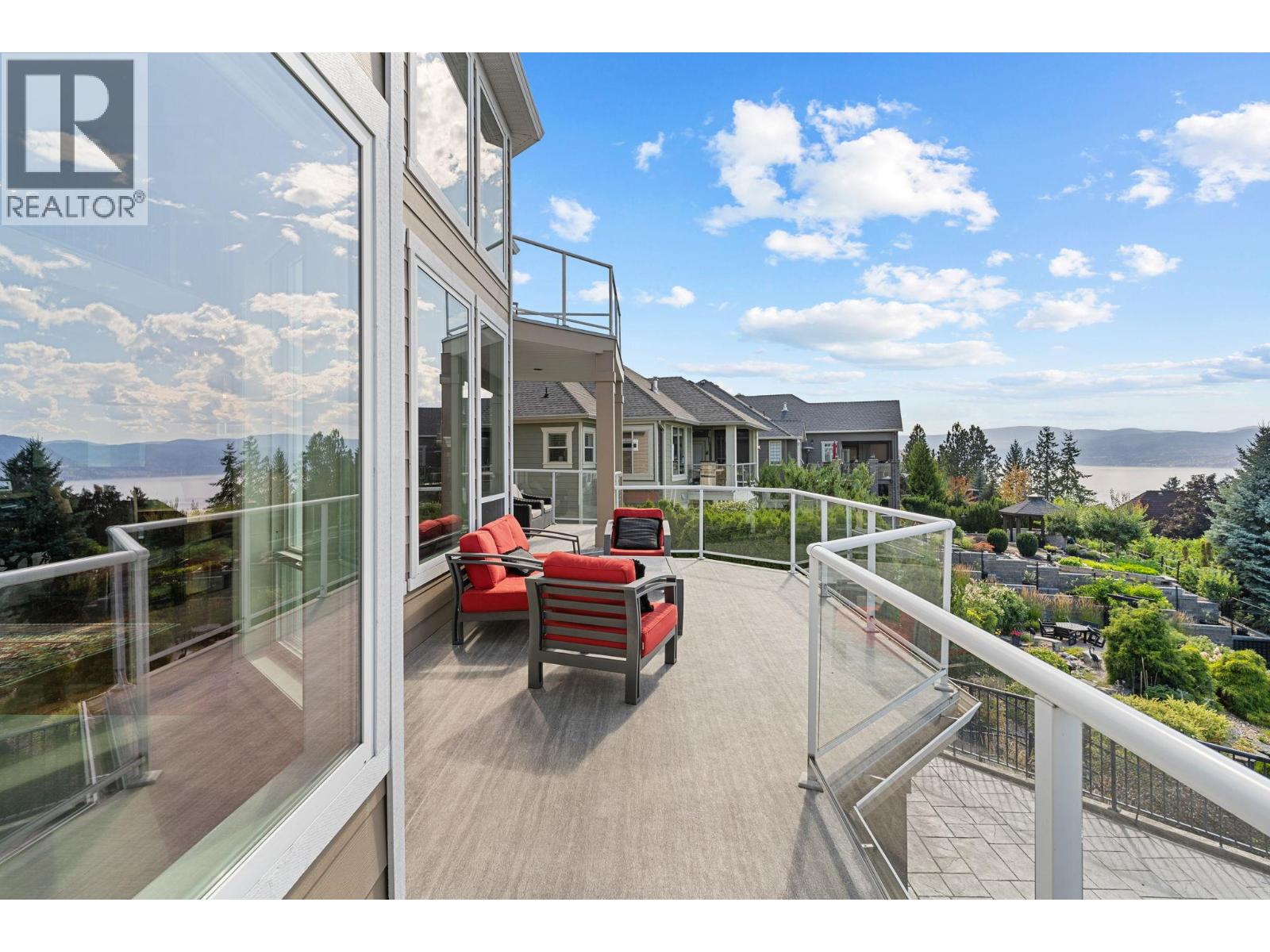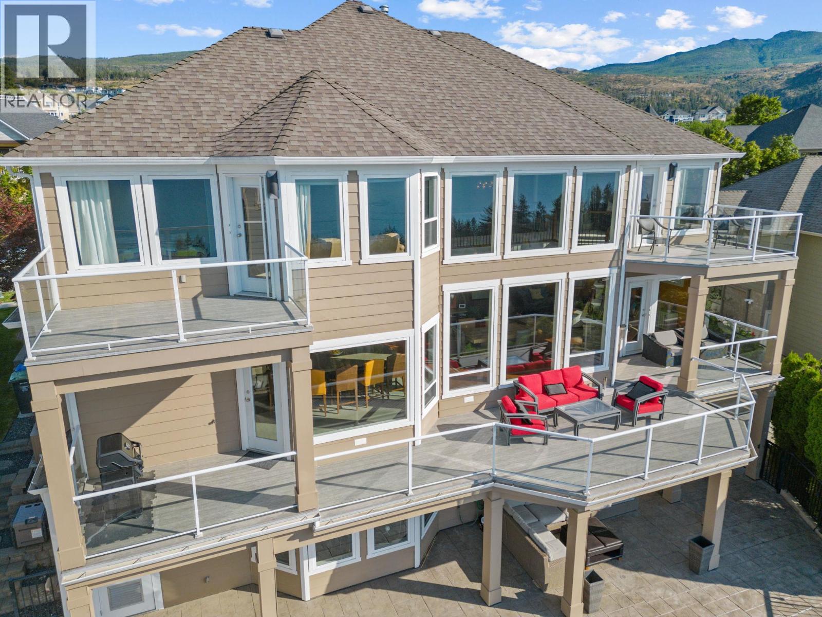 Welcome to this stunning, freshly painted, 5 bed, 4.5 bath home located on the ""Ledge"", distinguished homes on Quilchena Drive facing the Lake. Located in the heart of Kettle Valley. No hills, no worries, luxury, light, and lifestyle come together. Designed to impress, this residence features expansive open-concept living with panoramic lake views from every floor. Massive 20 foot ceilings flood the home with natural light, framing the Okanagan at its finest. There are three full bedrooms upstairs highlighted by a 625 square foot master suite. The chef-style kitchen flows seamlessly into the main living and dining areas perfect for entertaining or quiet evenings at home. Step outside to your private backyard oasis complete with a beautiful pool, sun-soaked patio, and views that truly make this the best lot on the street. The walk-out basement offers flexible space, including a dedicated gym room, media area, and guest suite potential. Every detail in this home is thoughtfully designed for upscale family living. All this on a flat street just steps from Kettle Valley Park, and 5 minute walking distance to grocery stores, schools, and amenities. Homes with this combination of design, location, and view rarely come to market.
