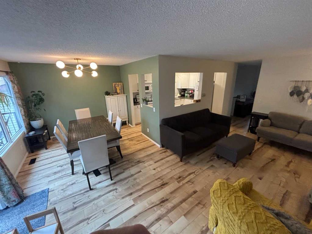 excellent upgrades of KITCHEN, DINING, LVING AREAS, BATHROOMS, & 4 bedrooms!! Fantastic location, quick Ring road access, Transit near, kids are within 2 blocks of schools & community parks & playgrounds, Bike paths convenience store & shops near... FURNACE 2009, WINDOWS & PATIO DOORS IN 2010, FLOORING & ROOF SHINGLES in 2013... KITCHEN & DINING AREAS are OPENED & UPGRADED....ENLARGED FRONT PRIVATE BALCONY . 2 PARKING STALLS in the back with Lane access & plenty of parking in the front. Inviting Great Room with the Corner fireplace. LARGE WINDOWS in the Lower level with the bedrooms in the back & the front recreation room & a second full bathroom that has the potential of a suite in the future....