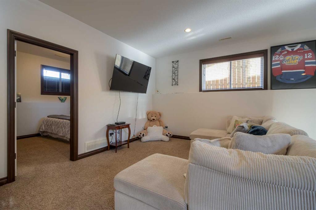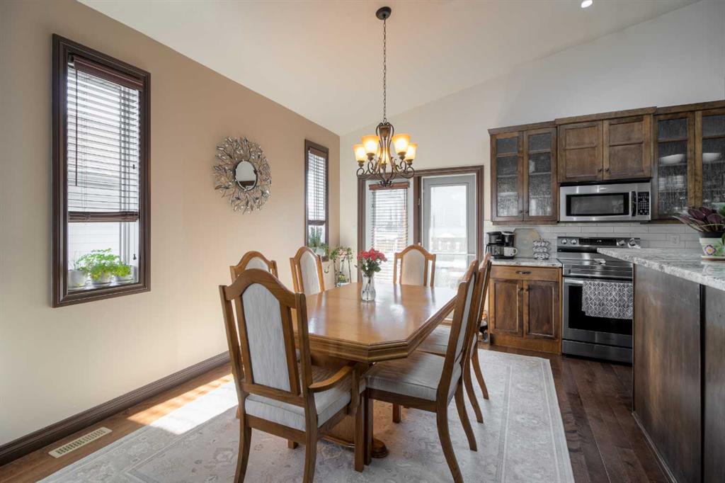 Welcome to this spacious and well-appointed 6 bedroom family home, perfectly designed for comfort and functionality. The open-concept main floor offers a bright and inviting living space, featuring a thoughtfully designed kitchen with granite countertops, corner pantry, and ample prep and counter space. The kitchen flows seamlessly into the dining area and living room, where a cozy gas fireplace creates the perfect gathering spot. The primary bedroom is conveniently located on the main floor and features dual closets and a private ensuite complete with a jetted tub. Upstairs, you’ll find two additional bedrooms and a full bathroom, making it an ideal layout for children or guests. The fully finished basement offers incredible versatility with two more bedrooms, a spacious family room with wet bar area, laundry, and direct access to the backyard. Situated in a fantastic location just around the corner from Chinook Lake Park and close to shopping, groceries, and everyday amenities, this home checks all the boxes for family living.