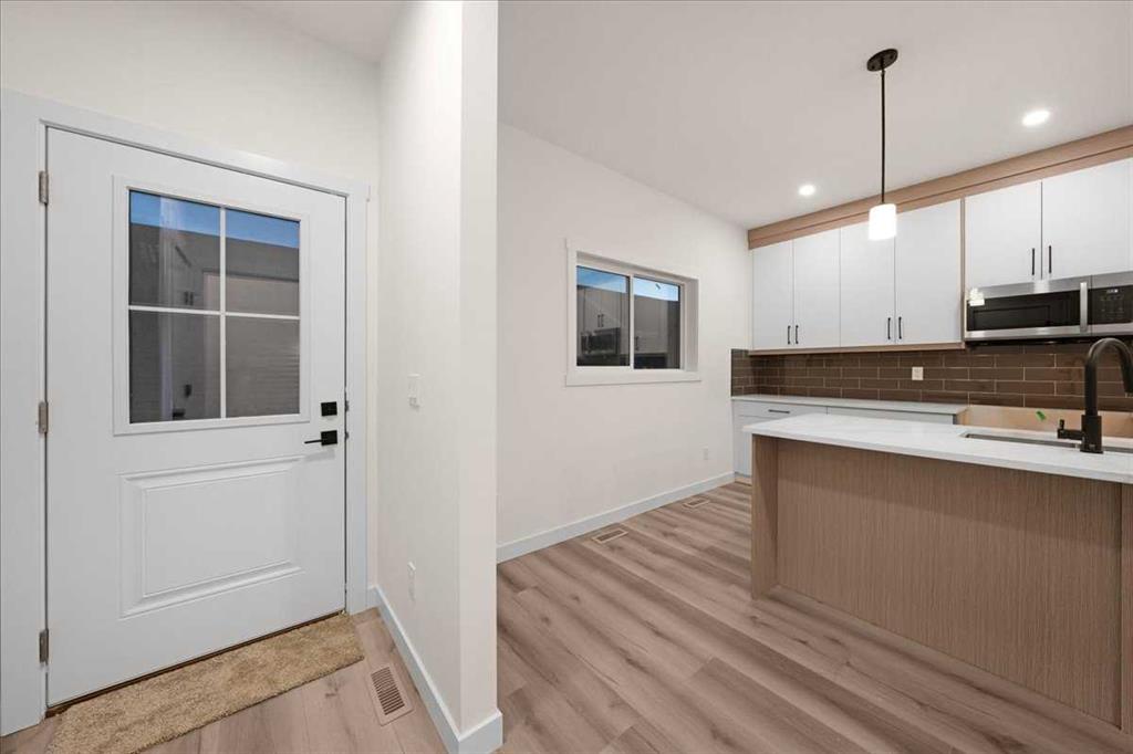 Welcome to 39 Baysprings Terrace – Brand New Townhomes by Luxury Custom Builders! Experience the perfect blend of modern comfort and timeless design in these thoughtfully crafted, brand-new townhomes. Built with quality and functionality in mind, these homes offer spacious layouts ideal for today’s lifestyle.Step inside to an open-concept main floor featuring stylish luxury vinyl plank flooring throughout. The heart of the home is the chef-inspired kitchen, showcasing a large quartz island, stainless steel appliances, and abundant cabinetry—perfect for both everyday living and entertaining. A convenient half-bath completes the main level. Upstairs, you’ll find three generously sized bedrooms, each with walk-in closets and custom built-ins. The primary suite is designed to impress with space for a king-size bed and a luxurious 5-piece ensuite that includes dual sinks, a deep soaker tub, and a separate walk-in shower. A dedicated laundry area on this level adds everyday convenience. The unfinished basement offers roughed-in plumbing and is ready for your future development. Outside, enjoy a professionally landscaped and fully fenced west-facing backyard with access to a double detached garage. This self-managed complex is beautifully maintained with low condo fees and a strong sense of community. Located near walking paths, the waterfront, and year-round recreation like paddle-boarding in summer and skating in winter. Families will love the proximity to parks, playgrounds, Nose Creek School (K–4), shopping, dining, and essential services. Whether you're seeking a family-friendly home or a smart investment, there’s a layout here to fit your lifestyle. Check out the virtual link.