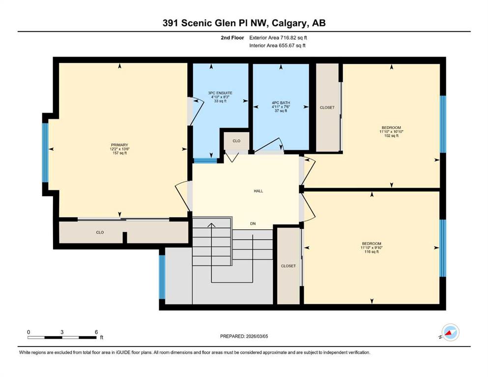 | Bedroom - Primary | 13`6" x 12`2" | Upper |