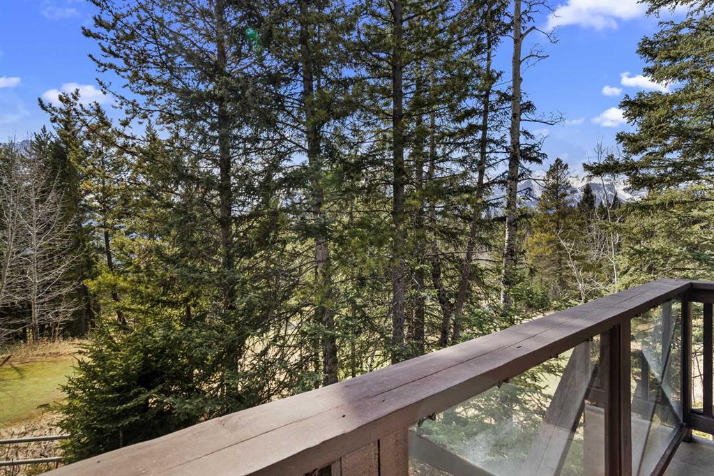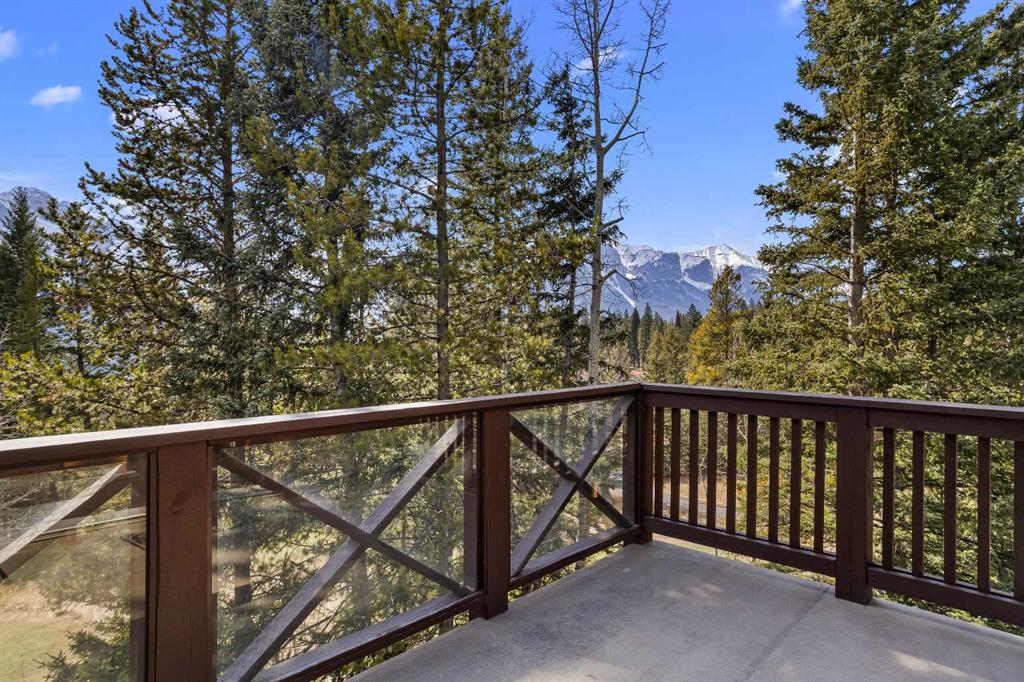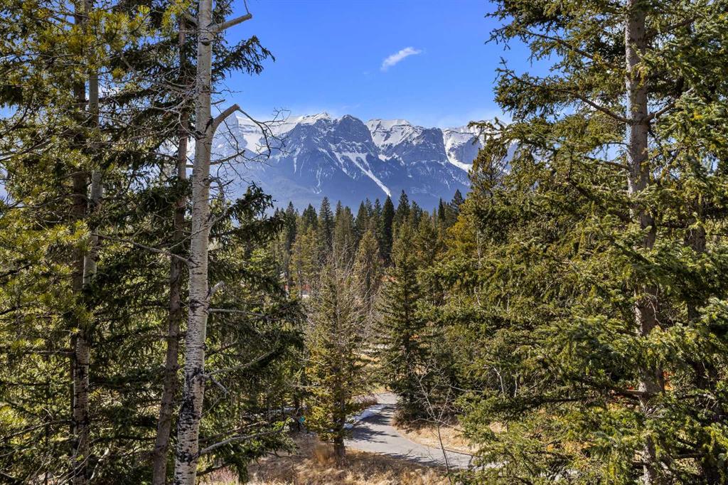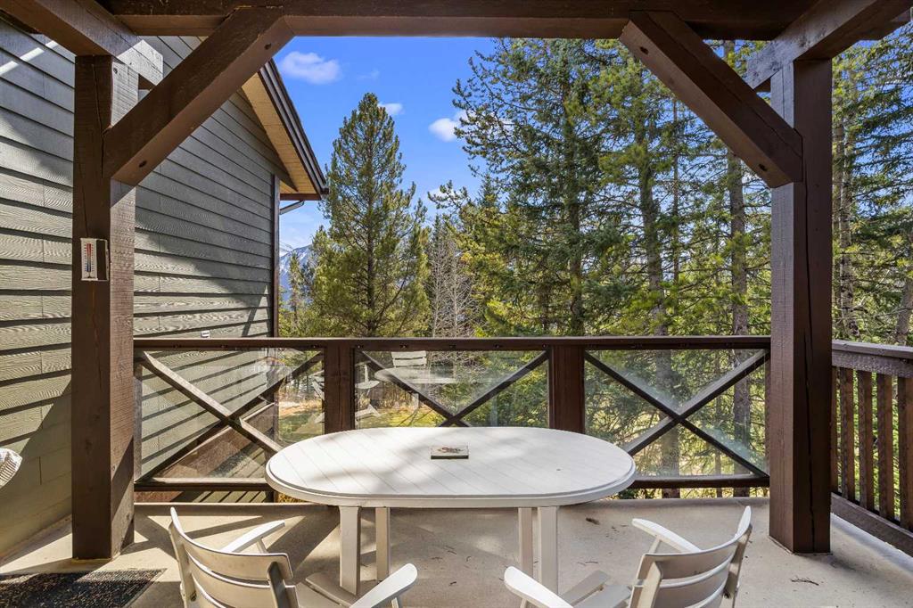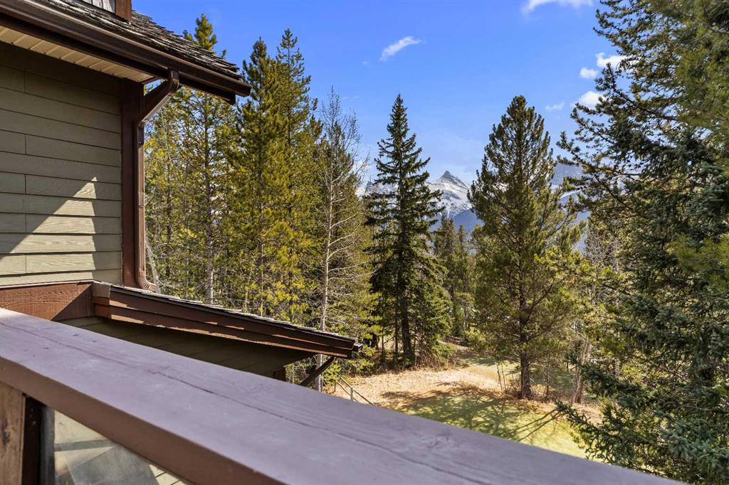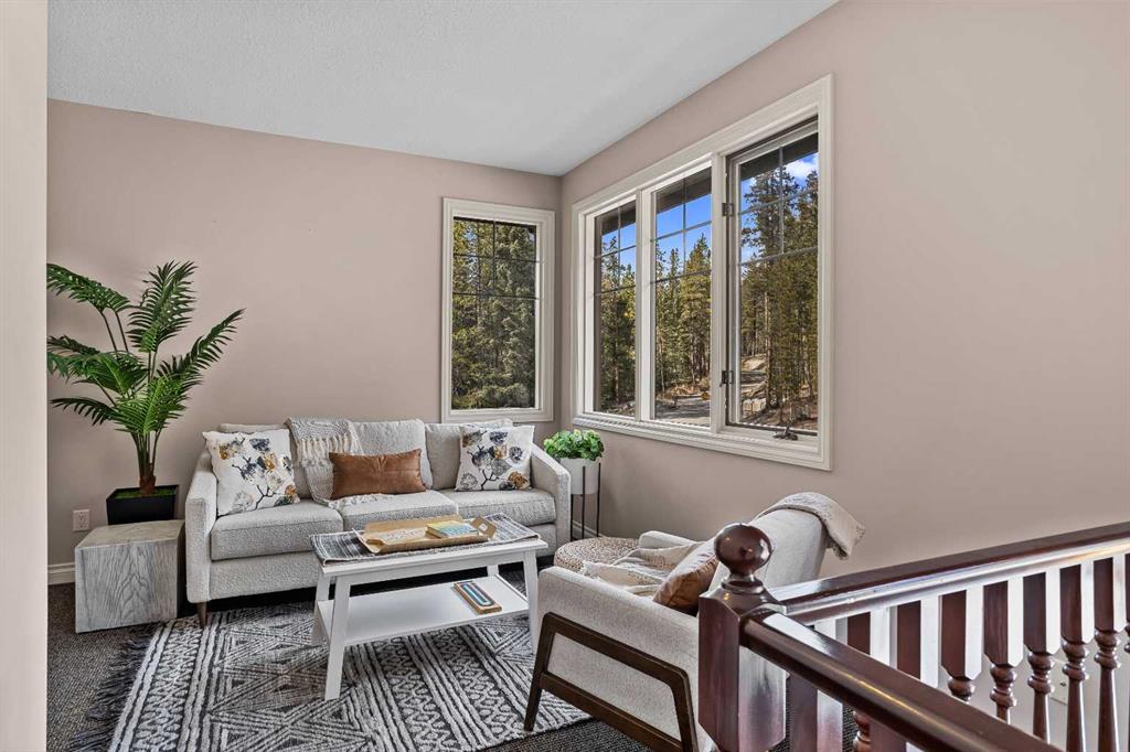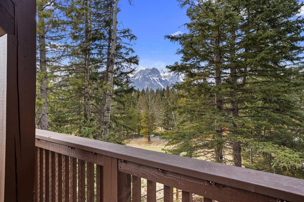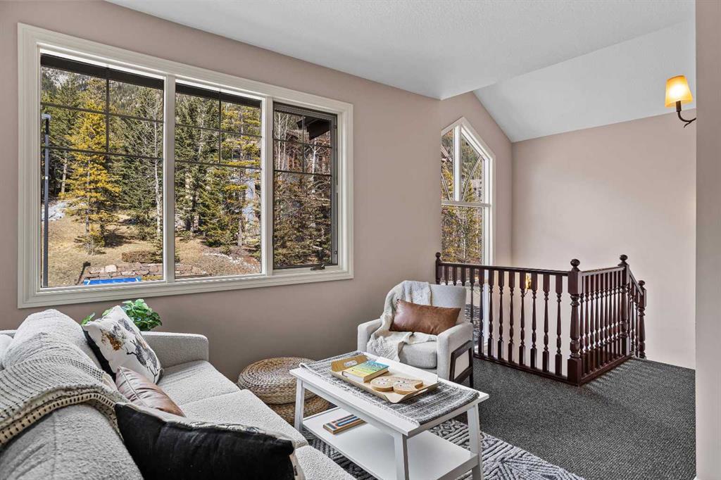 Some properties in Canmore have a great view. This one has the whole picture. Sitting at the quiet end of Stone Creek Road, this 3,000+ sq ft southwest-facing end-unit is perched up in the trees above the Bow Valley, looking out over the 9th tee of Silvertip Golf Course and the full south range beyond. Walk out your front door and you are straight onto the trail network. No neighbours behind, no traffic coming through, just the creek, the trees, and the mountains in every direction. From the moment you step inside, the pace of life slows down. The main floor is anchored by a Rundlestone fireplace, with big windows that bring the outside in and an open-concept kitchen and dining area designed for easy entertaining, framing uninterrupted views of the valley below from morning through to sunset. Tucked into the trees on the main level, a window-wrapped office offers a genuinely inspiring place to spend a morning. Upstairs, a tranquil sitting area gazes over the creek bed toward the peaks, alongside 2 spacious bedrooms and a primary retreat with a private balcony and elevated mountain views. The steam shower ensuite adds a layer of comfort that makes this space feel like a proper escape from the everyday. The walkout lower level includes a 3rd bedroom and a generous unfinished space with in-floor heating already roughed in, offering real potential for a 4th bedroom, media room, or whatever your lifestyle calls for. Large windows and direct patio access keep it bright and connected to the outdoors. With the Silvertip clubhouse, restaurant, and market just a short walk away and Canmore's trail network right at your door, this property offers a balance that is genuinely hard to find in the mountains. Privacy without isolation. Tranquility without compromise. Properties at this end of the road, up in the trees with this kind of setting, do not come available often.
