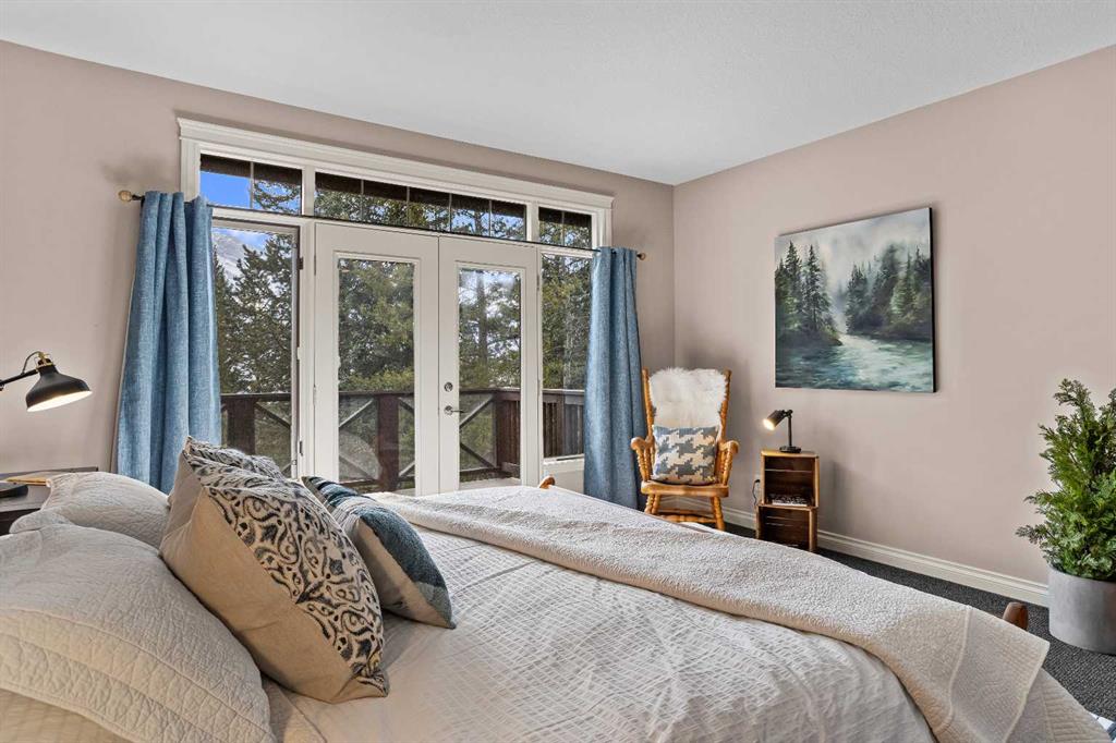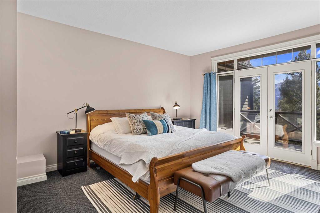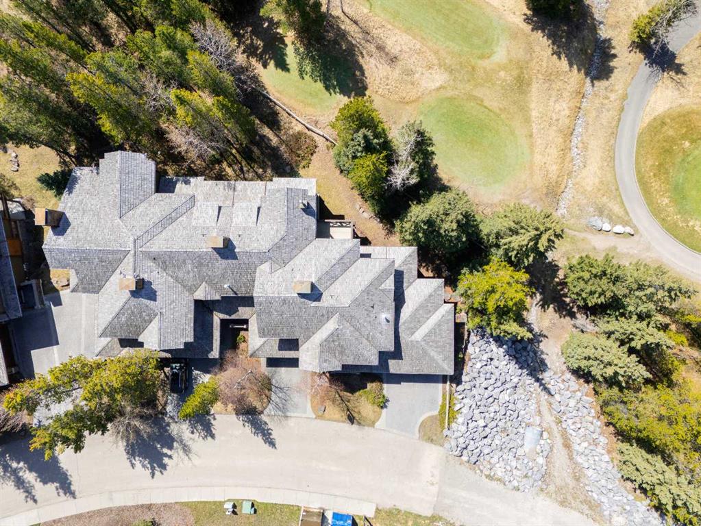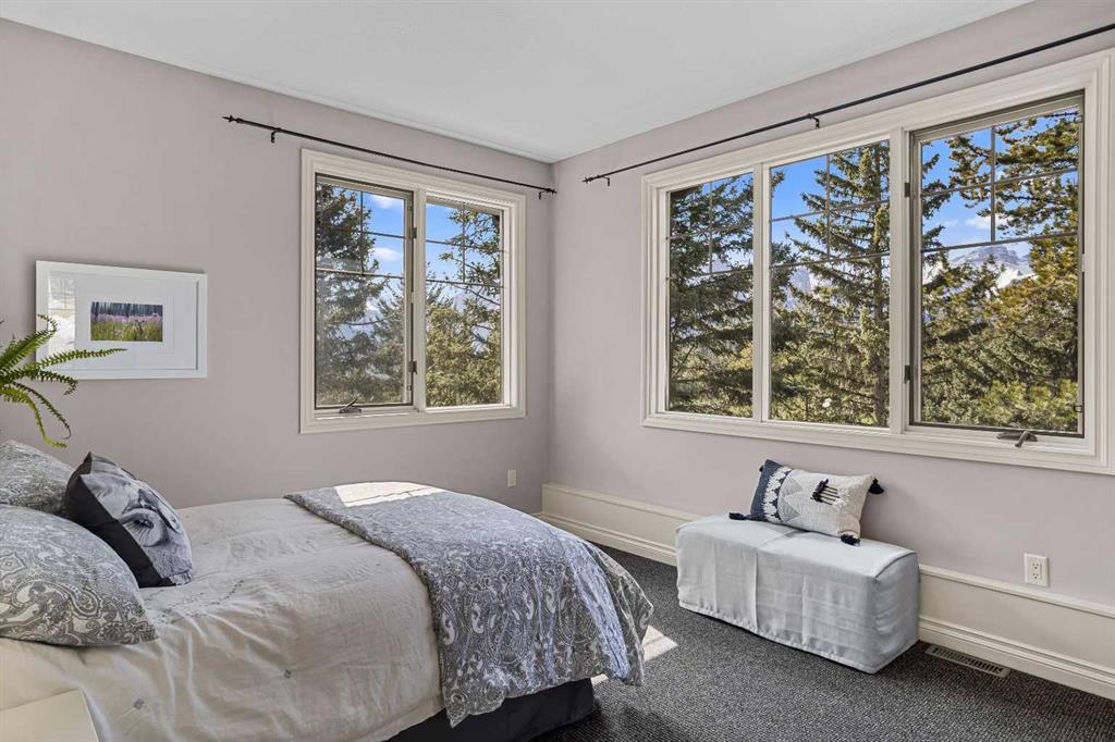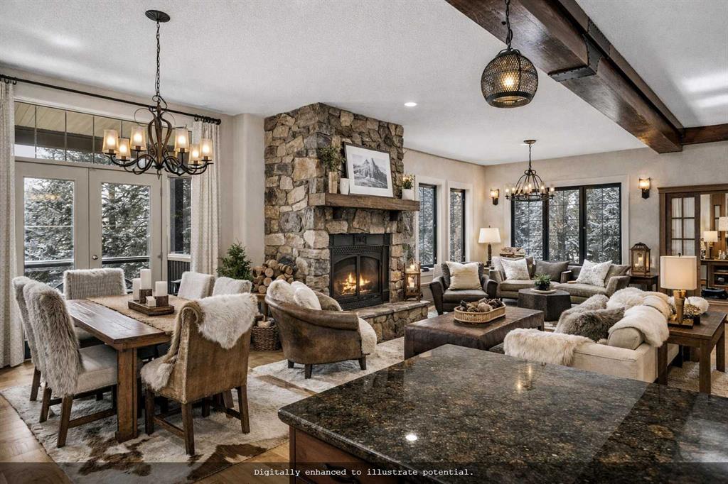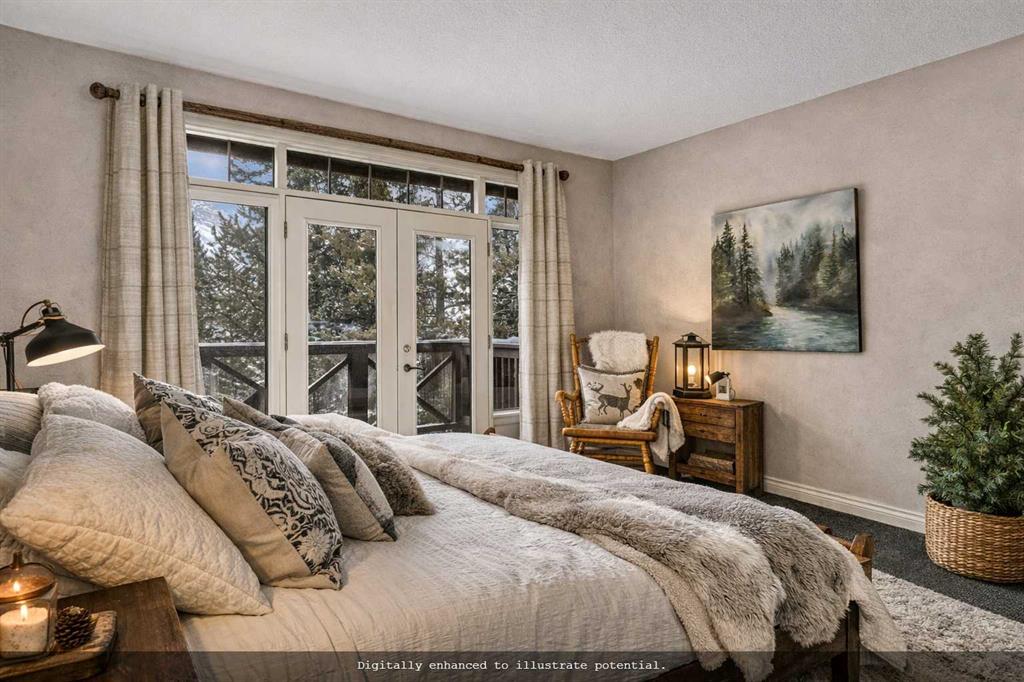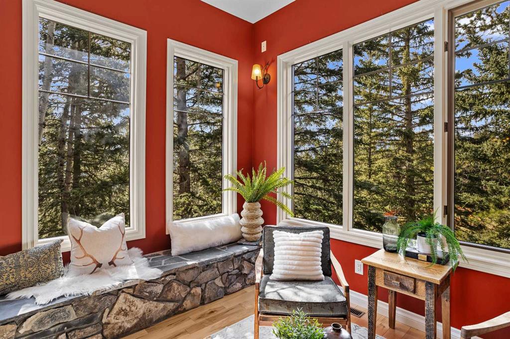 Some properties in Canmore have a great view. This one has the whole picture. Sitting at the quiet end of Stone Creek Road, this 3,000+ sq ft southwest-facing end-unit is perched up in the trees above the Bow Valley, looking out over the 9th tee of Silvertip Golf Course and the full south range beyond. Walk out your front door and you are straight onto the trail network. No neighbours behind, no traffic coming through, just the creek, the trees, and the mountains in every direction. From the moment you step inside, the pace of life slows down. The main floor is anchored by a Rundlestone fireplace, with big windows that bring the outside in and an open-concept kitchen and dining area designed for easy entertaining, framing uninterrupted views of the valley below from morning through to sunset. Tucked into the trees on the main level, a window-wrapped office offers a genuinely inspiring place to spend a morning. Upstairs, a tranquil sitting area gazes over the creek bed toward the peaks, alongside 2 spacious bedrooms and a primary retreat with a private balcony and elevated mountain views. The steam shower ensuite adds a layer of comfort that makes this space feel like a proper escape from the everyday. The walkout lower level includes a 3rd bedroom and a generous unfinished space with in-floor heating already roughed in, offering real potential for a 4th bedroom, media room, or whatever your lifestyle calls for. Large windows and direct patio access keep it bright and connected to the outdoors. With the Silvertip clubhouse, restaurant, and market just a short walk away and Canmore's trail network right at your door, this property offers a balance that is genuinely hard to find in the mountains. Privacy without isolation. Tranquility without compromise. Properties at this end of the road, up in the trees with this kind of setting, do not come available often.