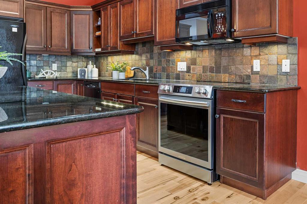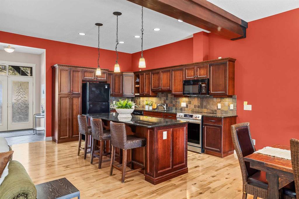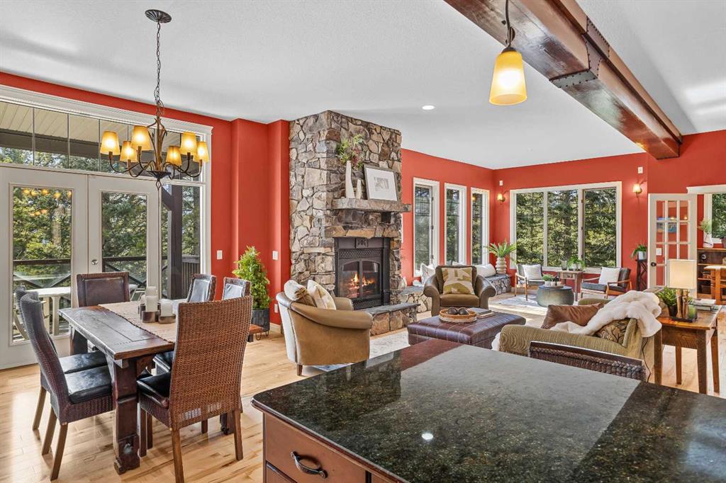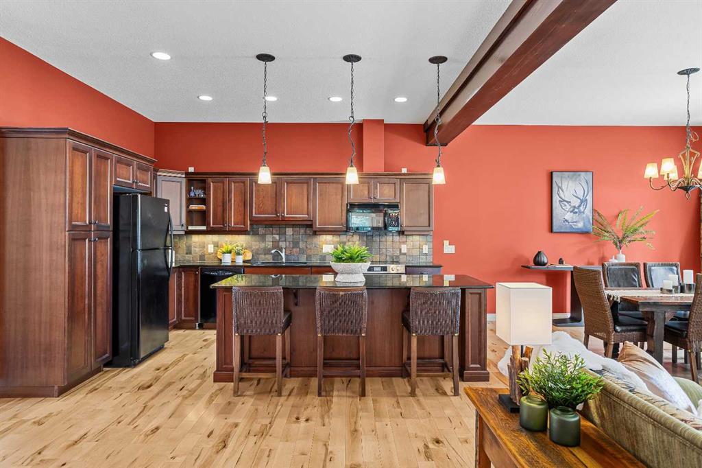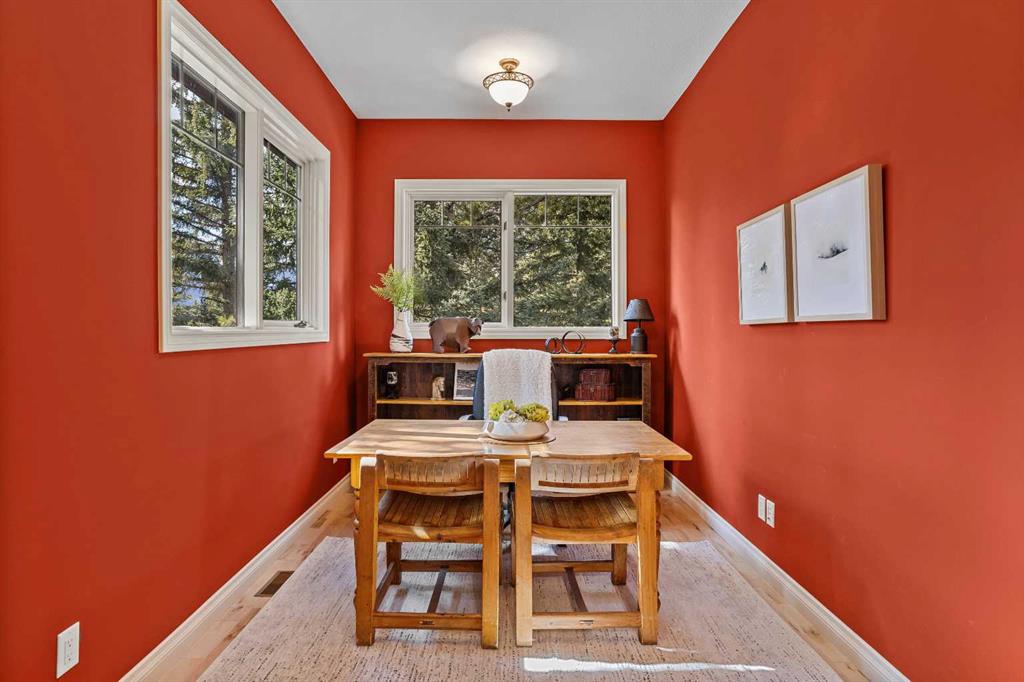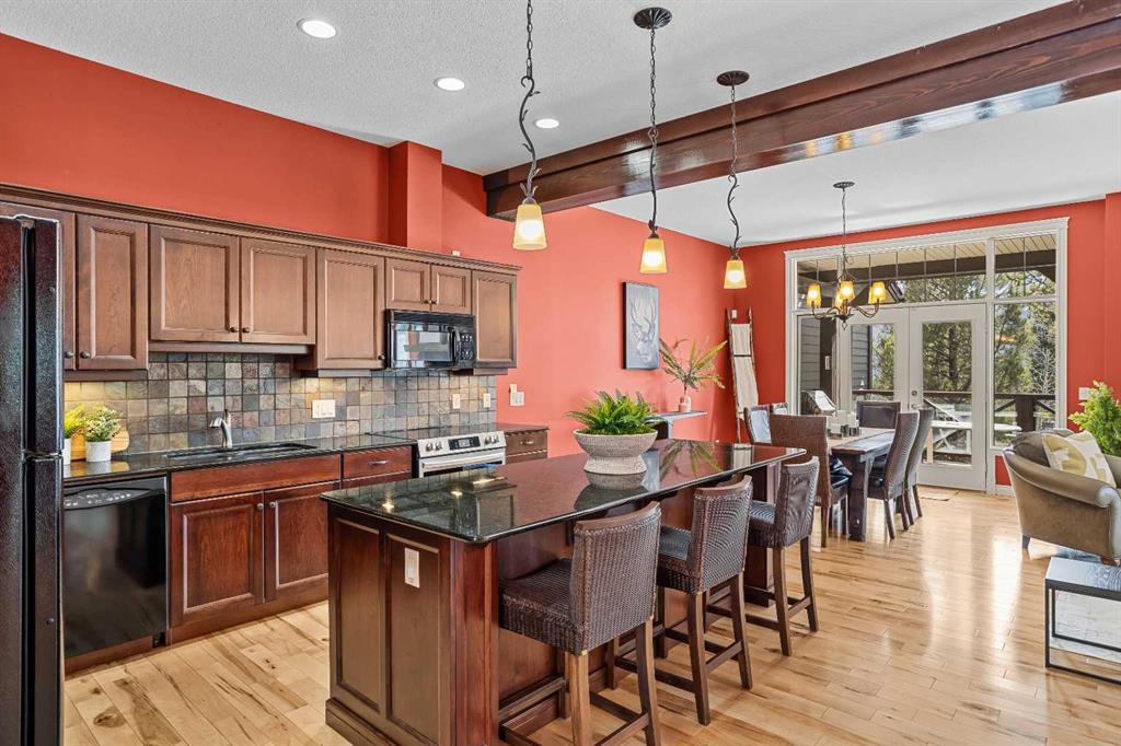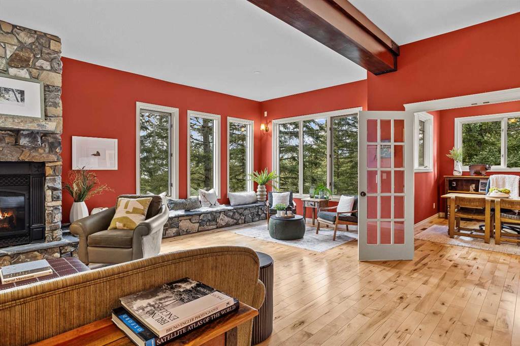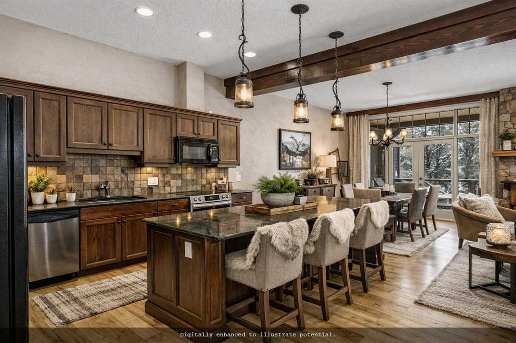 Some properties in Canmore have a great view. This one has the whole picture. Sitting at the quiet end of Stone Creek Road, this 3,000+ sq ft southwest-facing end-unit is perched up in the trees above the Bow Valley, looking out over the 9th tee of Silvertip Golf Course and the full south range beyond. Walk out your front door and you are straight onto the trail network. No neighbours behind, no traffic coming through, just the creek, the trees, and the mountains in every direction. From the moment you step inside, the pace of life slows down. The main floor is anchored by a Rundlestone fireplace, with big windows that bring the outside in and an open-concept kitchen and dining area designed for easy entertaining, framing uninterrupted views of the valley below from morning through to sunset. Tucked into the trees on the main level, a window-wrapped office offers a genuinely inspiring place to spend a morning. Upstairs, a tranquil sitting area gazes over the creek bed toward the peaks, alongside 2 spacious bedrooms and a primary retreat with a private balcony and elevated mountain views. The steam shower ensuite adds a layer of comfort that makes this space feel like a proper escape from the everyday. The walkout lower level includes a 3rd bedroom and a generous unfinished space with in-floor heating already roughed in, offering real potential for a 4th bedroom, media room, or whatever your lifestyle calls for. Large windows and direct patio access keep it bright and connected to the outdoors. With the Silvertip clubhouse, restaurant, and market just a short walk away and Canmore's trail network right at your door, this property offers a balance that is genuinely hard to find in the mountains. Privacy without isolation. Tranquility without compromise. Properties at this end of the road, up in the trees with this kind of setting, do not come available often.