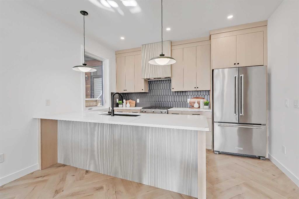 Move into the heart of South Calgary today with this brand-new, walkout townhome that perfectly blends luxury, location, and low-maintenance living! Thoughtfully designed w/ 3 beds, 2.5 baths, and a LEGAL 1 BED SUITE (approved by the city), this is inner-city living without compromise! The interiors strike a perfect balance between modern luxury & livable design. Find high-end finishes that are rare to find at this price point — blonde wood tones, sleek custom cabinetry, and modern & thoughtful tile. Designer hardware, mid-century inspired embellishments, and a clean neutral palette give this space a fresh, elevated vibe. The kitchen is the heart of the home, designed w/ both form and function in mind. A large quartz island anchors the space w/ bar seating for casual meals or morning coffee. There's a full stainless steel appliance package, generous cabinetry, and a stylish backsplash that adds just the right amount of visual interest. It's open to the dining area and spacious living room & balcony, creating the perfect layout for hosting or just relaxing at home. And don’t forget the upscale powder room, complete w/ designer lighting. Upstairs, the primary suite feels like a boutique hotel retreat w/ a PRIVATE BALCONY, a large walk-in closet, and a modern 3-pc ensuite w/ a fully tiled walk-in shower. Two additional bedrooms and a full bathroom give you space for guests, kids, or home office! And yes, there's a laundry room upstairs, tucked conveniently between bedrooms. Downstairs is perfectly set up for a mortgage helper, additional income generator, or the perfect spot for multi-generational living w/ a LEGAL 1-BED SUITE (approved by the city). The modern touches flow into this space as well, w/ an open kitchen & living room space w/ ceiling-height cabinetry, stainless steel appliances, and quartz countertops, complete w/ separate laundry, a great-sized bedroom, and a full 4-pc bathroom. There is a separate entrance to the suite, as well as access from the main home to the suite for complete ease of use. The suite also boasts a private deck. The low-maintenance landscaping and a detached garage at the back are a serious bonus in the inner city. The backyard also features upright bike racks & secure CycleSafe lockers for added convenience. You’re tucked into a tree-lined street in South Calgary, but just a short stroll to absolutely everything. Our Daily Brett and South Calgary Pool & library are just at the end of the street, cSPACE King Edward’s arts & community programming is just a few blocks over, and all the everyday amenities in Marda Loop are w/in walking distance — Blush Lane Organic Market, Safeway, Shoppers, fitness studios, and an incredible lineup of restaurants. You’re minutes from 17th Ave’s restaurants & nightlife, and a quick commute to downtown! Whether you're looking for a stylish new home in an established neighbourhood or a long-term rental property w/ strong demand, this unit is an incredible opportunity! *pictures from show suite*