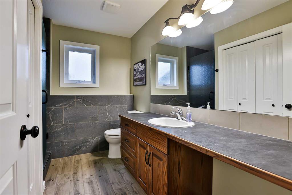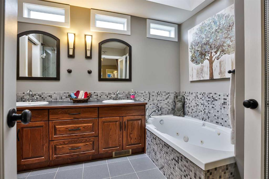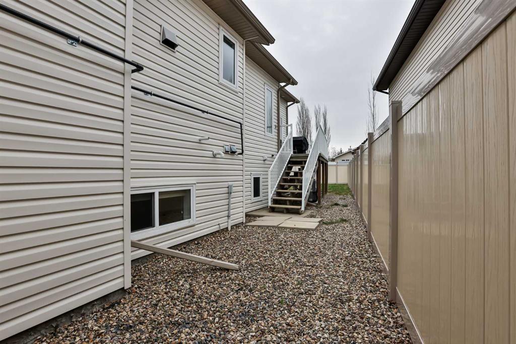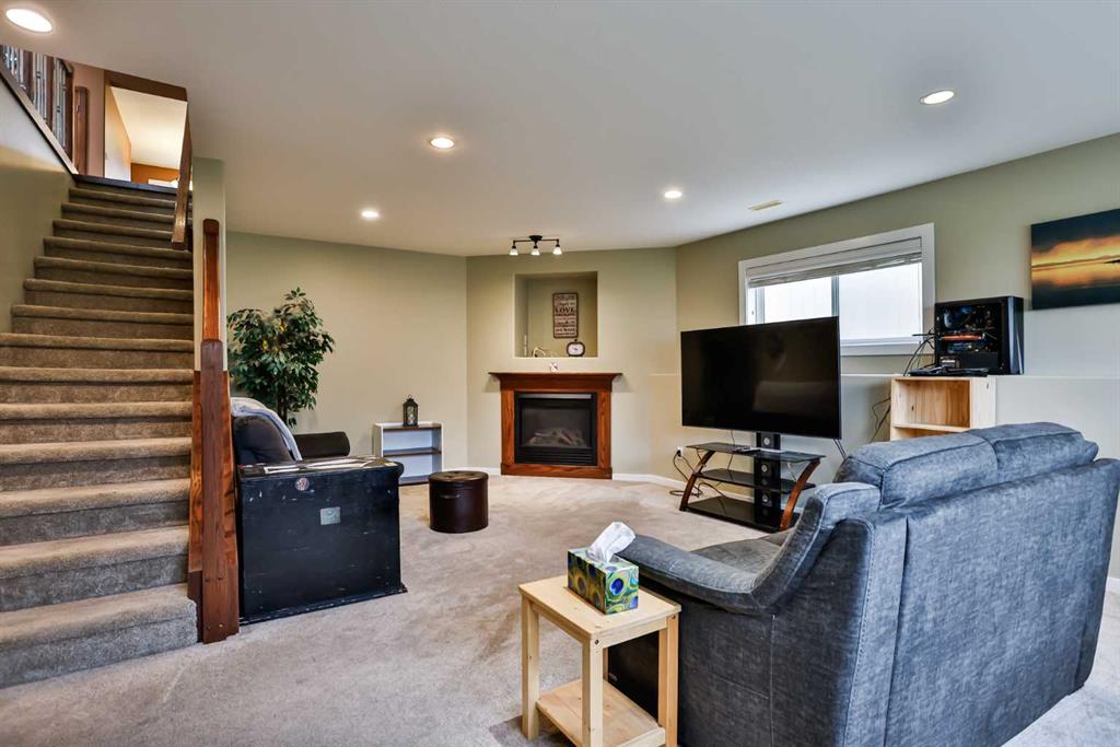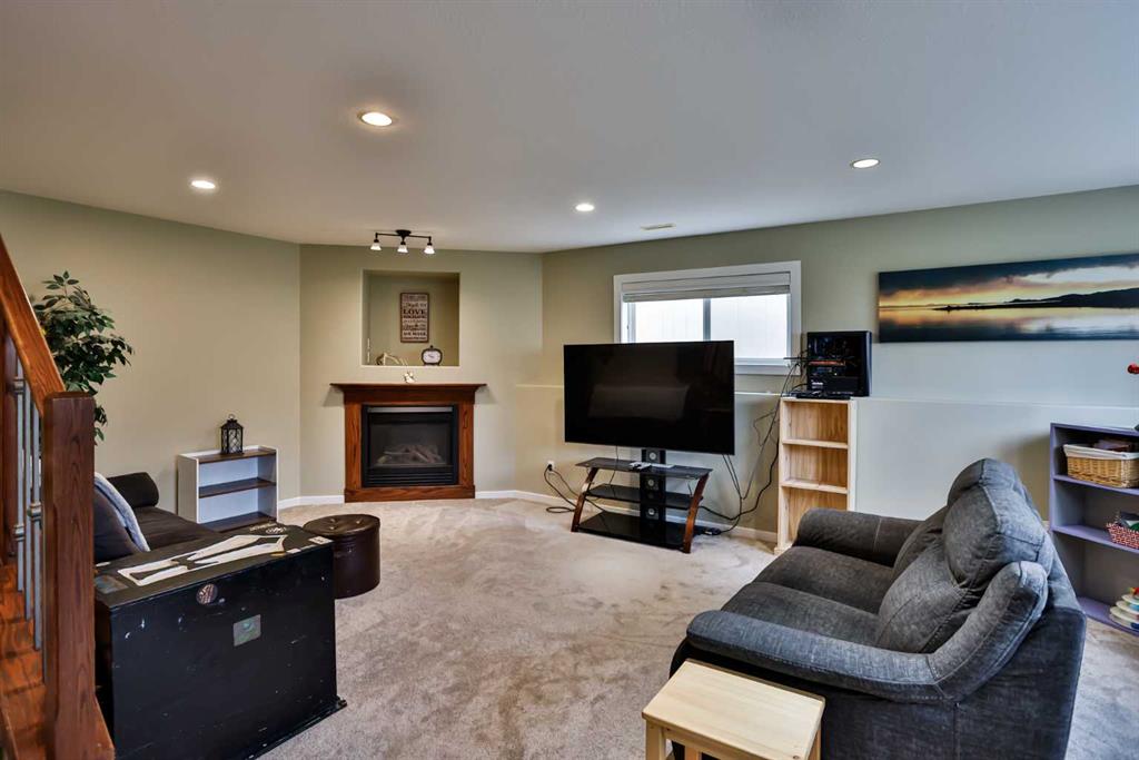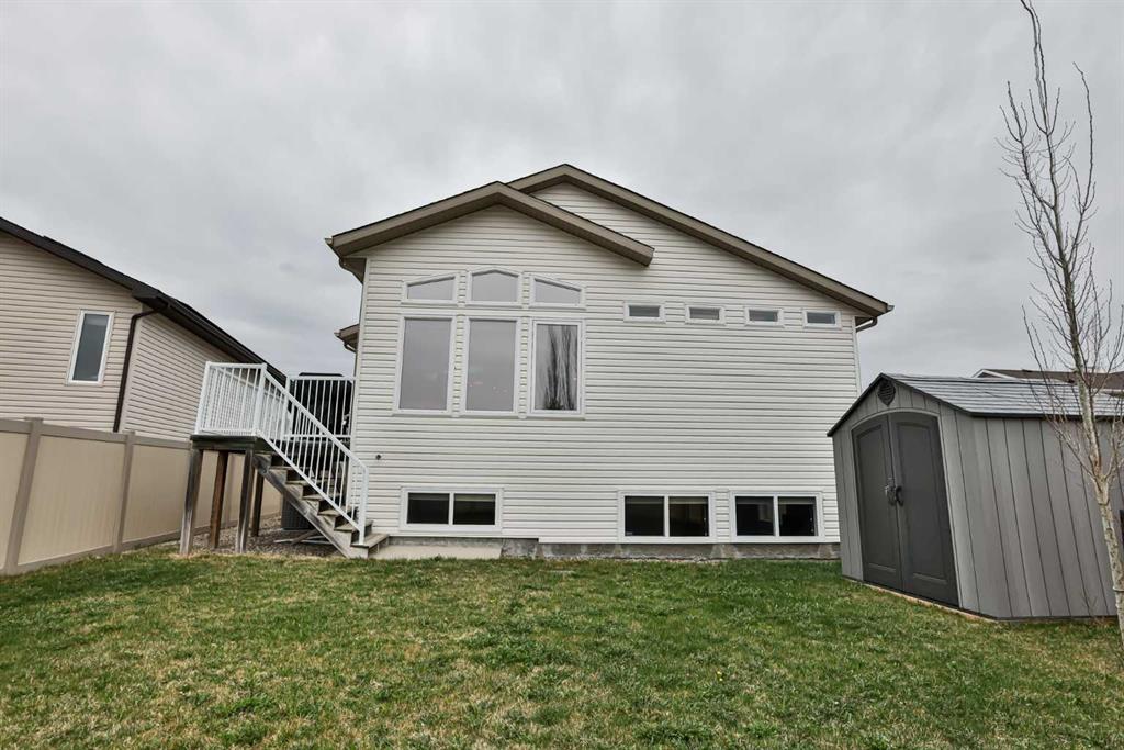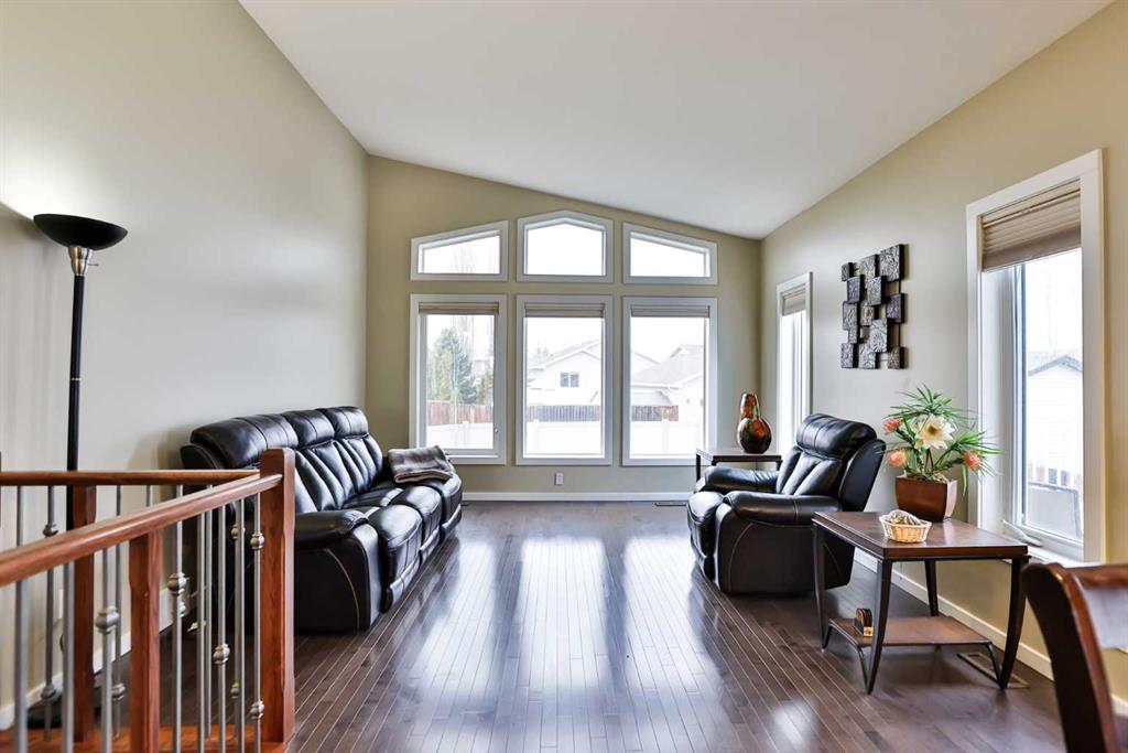If you’re looking for a six-bedroom home—look no further! This fully developed bi-level offers 2 bedrooms on the main floor and 4 additional bedrooms in the basement, providing incredible space for families of all sizes. Located in the highly desirable Riverstone neighbourhood, just steps from St. Patrick Fine Arts Elementary School, you’ll love the nearby park, pond, and extensive walking paths. This home boasts beautiful street appeal with a covered front veranda, pillars, and added stonework for a warm, inviting exterior. The main floor features hardwood and tile flooring throughout and an open-concept layout connecting the kitchen, dining, and living areas—perfect for entertaining. The kitchen offers stainless steel appliances, including a gas range and newer hood fan, ample cabinetry with pot and pan drawers, and a stunning frosted glass double-door pantry. A large skylight floods the entire main floor with natural light. Just off the kitchen is a combined mudroom and laundry area with built-in cabinetry, desk space, and shelving for extra storage, plus an additional skylight. This space provides direct access to the double attached garage, which is drywalled and insulated. The primary bedroom is located at the back of the home and features a spacious ensuite with recently updated glass shower, jetted tub, walk-in closet, double vanity, transom windows, and a skylight—creating a bright and relaxing retreat. Off the dining room is a covered side deck, offering a protected outdoor space with stairs leading down to the backyard. The yard is fully fenced with low-maintenance PVC fencing, includes underground sprinklers, and features a recently installed shed. A maple and iron spindle railing leads to the basement, where large windows and a gas fireplace create a bright and welcoming space. You’ll find 4 bedrooms, a recently updated bathroom, and exceptional storage, including under-stair storage, a large double closet, a linen closet, and an additional flex/storage room separating the rear bedrooms. This property has seen many updates over the years, including a roof (2014), furnace (approx. 4 years ago), air conditioning (approx. 5 years ago), water softener (approx. 4 years ago), new blinds, front door, and carpets (approx. 6 years ago). Appliances have also been updated within the past 3–8 years. If you’re looking for a spacious home in the desirable Riverstone area, call your REALTOR® today!