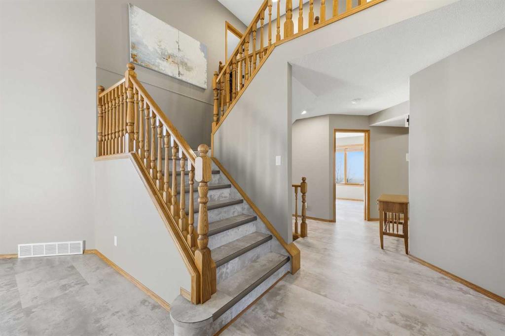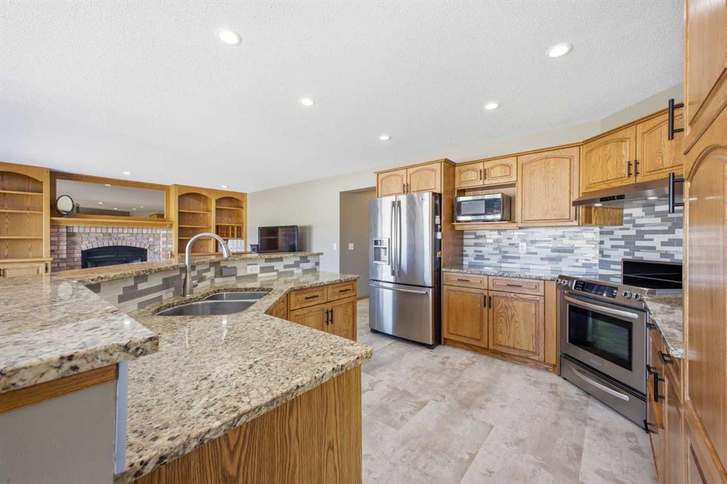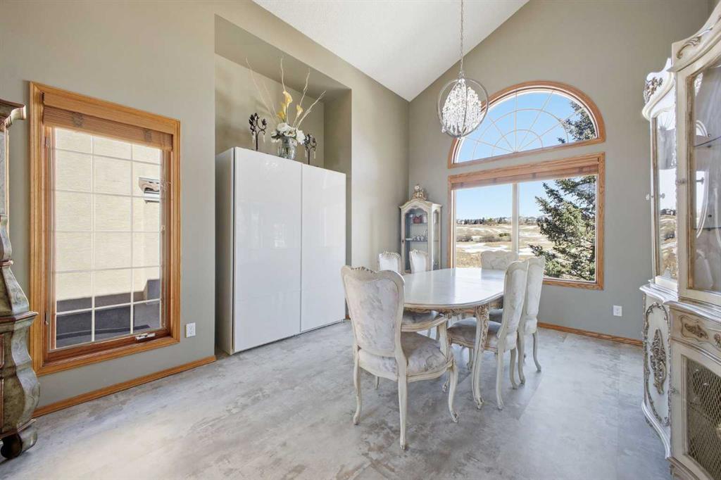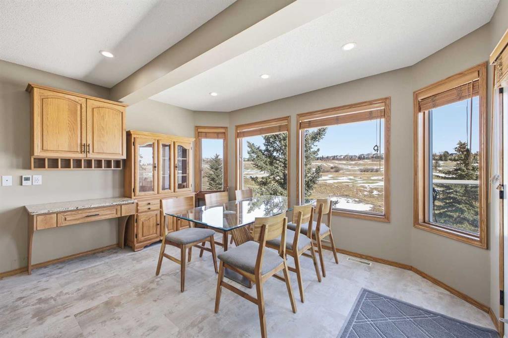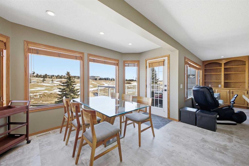 Perfectly positioned in the prestigious community of Country Hills Estates, this exceptional walkout home offers nearly 3,000 sq. ft. of refined living space with breathtaking golf course views. Backing directly onto the 6th tee box of the renowned Country Hills Golf Club, this property presents a rare opportunity to own one of the most desirable locations in the neighbourhood. The home makes an immediate impression with its triple car garage, distinctive rubber driveway, and welcoming walkway to the front entrance. Inside, a formal living and dining room with vaulted ceilings creates an elegant space for entertaining while capturing beautiful views of the golf course. Newer loose lay vinyl flooring throughout adds a fresh, modern feel. The main level is thoughtfully designed with a large, versatile den -ideal for a home office, library, or additional living space - alongside a convenient powder room, while the central living room is anchored by a classic wood-burning fireplace with custom built-in shelving. The open kitchen features stainless steel appliances, granite countertops, and a sunlit breakfast nook overlooking the fairway. Step onto the glass-railed balcony to enjoy uninterrupted golf course views—perfect for morning coffee or evening sunsets. A laundry room tucked away from the main living spaces adds everyday convenience. Upstairs, the home offers four generously sized bedrooms and three full bathrooms, a rare and ideal layout for families. The oversized primary retreat features a walk-in closet with built-in organizers and a beautifully renovated 5-piece ensuite with in-floor heating, dual vanities, a freestanding tub, and glass-tiled walk-in shower. All upstairs bathrooms have been tastefully renovated with quartz countertops, and one secondary bedroom includes its own private 3pc ensuite. The fully developed walkout basement adds exceptional versatility with two additional bedrooms, a spacious living area with a gas fireplace, and a full kitchen—perfect for guests, extended family, or multi-generational living. The lower level also offers abundant storage with multiple closets and dedicated storage areas. Walk out to an enclosed patio overlooking the golf course — another peaceful outdoor space to enjoy. Additional highlights include dual-zone furnaces and a newer metal roof, both reflecting the pride of ownership throughout the home. Beyond the property, the location is equally exceptional. Residents enjoy direct access to a scenic walking path looping around Country Hills Golf Club, just a five-minute walk from the front door. The home is also close to excellent schools including Simons Valley School and Sir John A. Macdonald School. With quick access to shopping, major routes, downtown, and the airport, this location has so much to offer. Backing onto one of Calgary’s premier golf courses in the sought-after community of Country Hills Estates, this is a rare opportunity to secure a truly unique property in a highly coveted setting.
