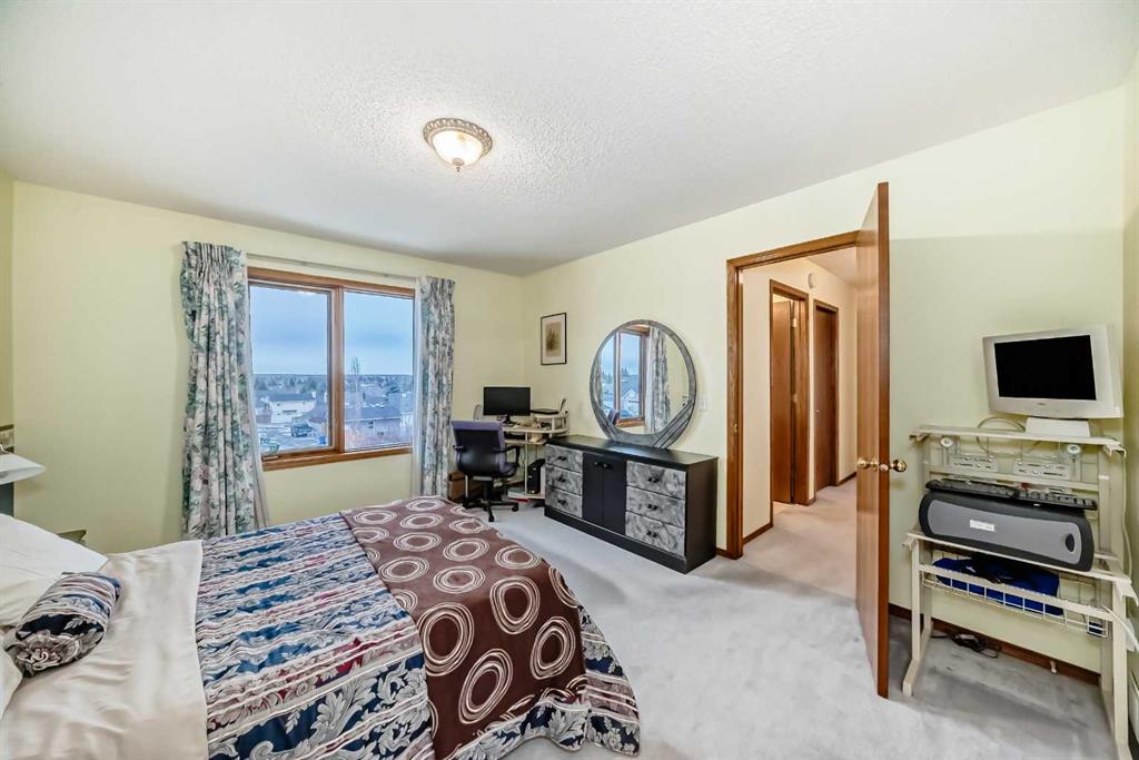 Welcome to this well-kept home in a desirable cul-de-sac location, offering comfort, space, and convenience. Spacious main level, this property features neutral finishes, an elegant open-railing staircase, and a functional kitchen complete with island, walk-in pantry, and a large bay nook opening onto the deck. The main floor also offers laundry and a warm family room with fireplace. Spacious bedrooms upstairs include a primary suite with walk-in closet and a relaxing ensuite with jetted tub and separate shower. The basement is 95% finished, ideal for added family living or entertaining. Important updates include the furnace and hot water tank replaced in recent years, plus new roof and gutters in October 2025. Ideally located with easy access to Stoney Trail, Deerfoot Trail, and shopping including T&T Supermarket.