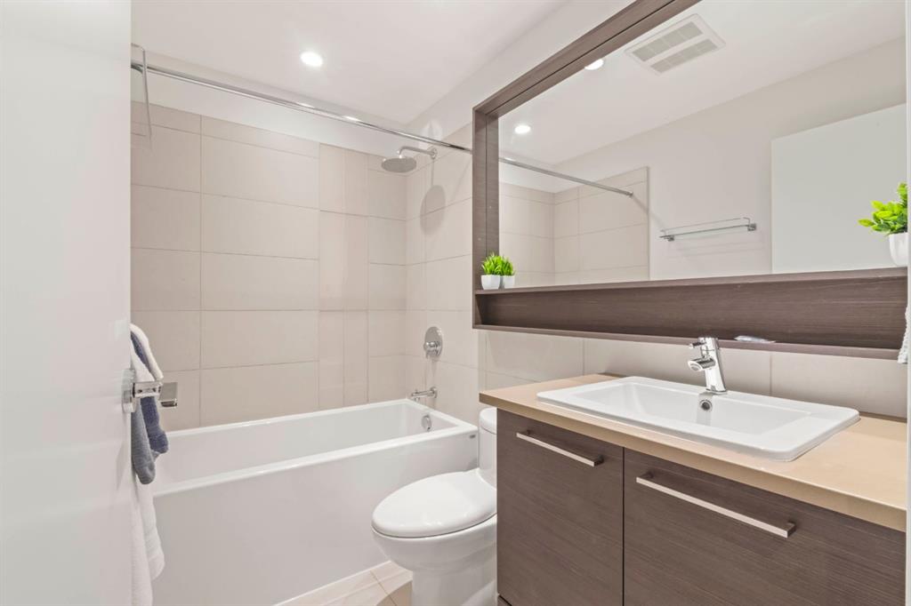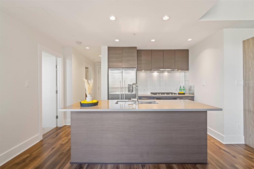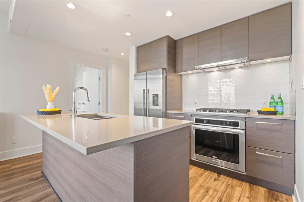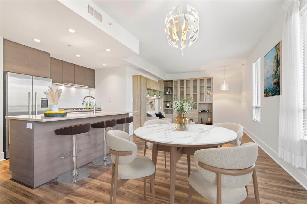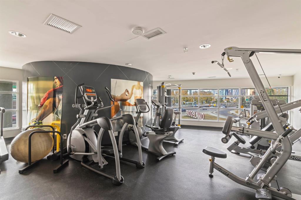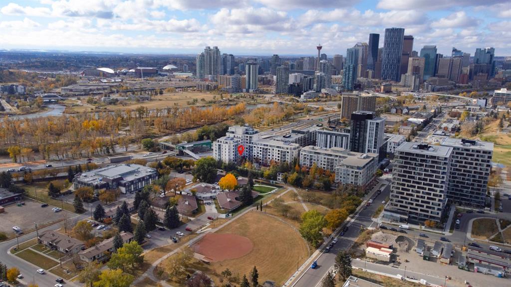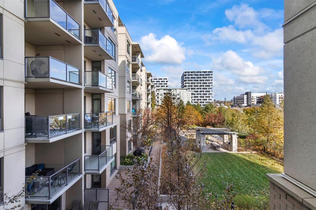 Welcome to the amazing neighbourhood of BRIDGELAND!! This location is fantastic...experience urban living at its finest in this stunning freshly painted Central Air Conditioned 1-bedroom condo. This residence offers not only a comfortable living space but also a convenient and vibrant lifestyle. Situated in an amenity-rich building, this condo provides an array of features that enhance your daily life. The condo's location is also highly advantageous for commuters, with easy access to public transit, ensuring a swift and stress-free journey to downtown and all trendy restaurants and entertainment options in downtown Calgary. For those who love outdoor activities, the Bow River is just a stone's throw away. Grab your bike and set out on a picturesque ride along the river, soaking in the scenic beauty of the surroundings. Step inside the condo, and you'll be greeted by a modern and elegant interior. The kitchen is adorned with a large kitchen island, stainless steel appliances that seamlessly blend style and functionality. The open floor plan with extra built in cabinets creates a spacious atmosphere, making the most of the available square footage. A generously sized bedrooms provide ample space for relaxation and privacy. The bedroom also boasts 2 good-sized closets. The unit is equipped with a 4 piece bathroom with a soakertub/shower combo. The balcony is a perfect spot to have a quiet morning coffee or unwind after a long day with beautiful views of the community garden. Additionally, the unit comes with underground titled parking along with ample amounts of visitor parking. The true gem of this condo is its location. In conclusion, this beautiful 1-bedroom condo in Bridgeland, presents a unique opportunity to enjoy upscale urban living. With an abundance of amenities, and convenient access to dining and transit options, it's a residence that combines comfort, style, and the undeniable allure of city life.
