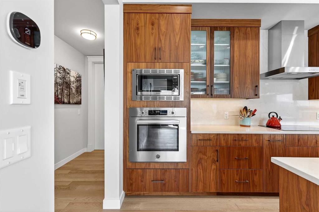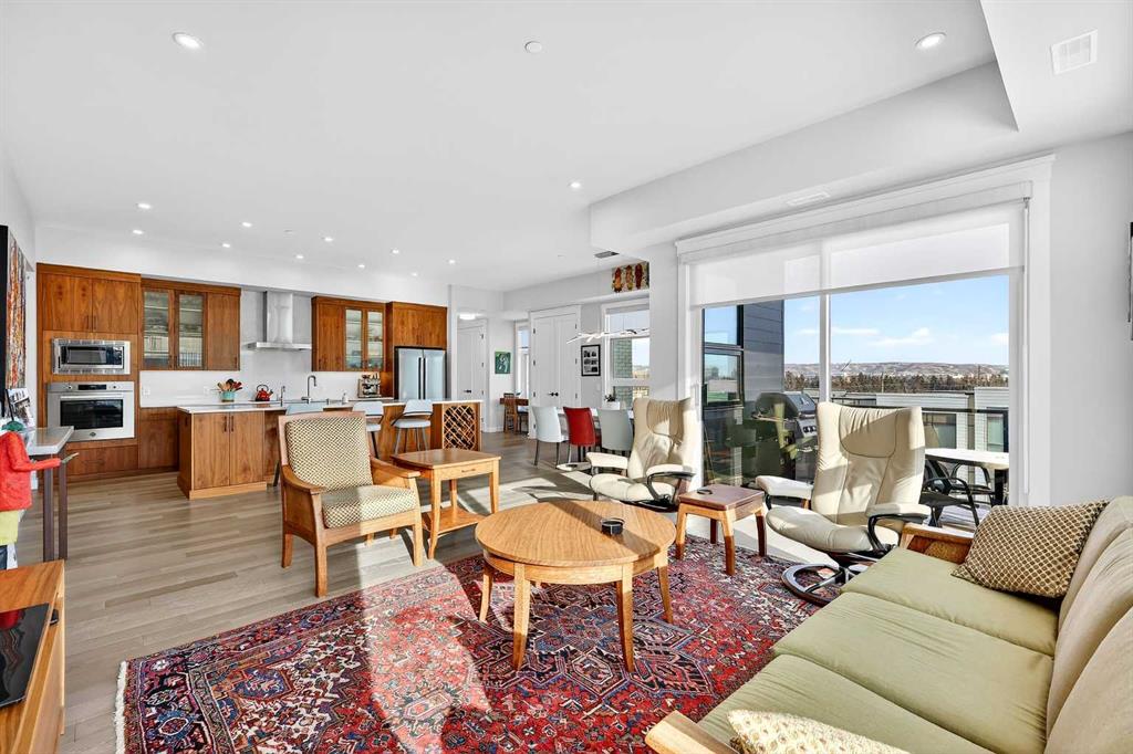 LUXURY PENTHOUSE LIVING WITH UNRIVALED INNER CITY LIVING IN UNIVERSITY DISTRICT – 21 LEBEL CRESCENT NW. Indulge in the pinnacle of upscale living in this exceptional penthouse condo in the prestigious Cabella development—located in Calgary’s premier NW lifestyle community. Offering a rare blend of expansive living space and refined elegance, this 1776+ builder sq ft residence is designed for those who value quality, privacy, and breathtaking surroundings. From the moment you step into the spacious foyer, you're greeted by abundant natural light streaming through numerous large south-facing windows, creating a warm, welcoming atmosphere. Adjacent to the entrance, and adorned with a double closet, a private powder room, you'll be swept into the heart of the condo, which features two distinct yet flowing living and dining areas, each anchored by a central island in the kitchen—ideal for entertaining or unwinding. An outdoor 12' x 8' covered balcony provides seasonal escapes, offering panoramic east/south views of University District, Nose Hill, the city skyline, and inner courtyard—an ever-changing natural masterpiece at your doorstep. Inside, the bespoke gourmet kitchen features white quartz countertops, upgraded cabinetry, and generous storage. In the private quarters, you'll find a beautifully appointed in-suite laundry room with matching cabinetry and surfaces, blending utility with style. The first primary bedroom suite is a sanctuary, featuring a five-piece spa-style ensuite, a large custom walk-in closet, and oversized windows. Adjacent to this suite, a cozy second bedroom is an ideal space for reading, working, or hobbies. The third bedroom is equally luxurious, with generous proportions, large windows, and quick access to the third bathroom. This four-piece ensuite features a tiled soaker tub and a vanity with ample storage, providing convenience and comfort. This home also includes a private, attached double garage with additional storage space — a rare and valuable feature in condo living. Additionally, it's conveniently located just a few steps from your elevator. Life at Capella is defined by lifestyle and community. Capella, developed by Brookfield Residential in Calgary’s University District, offers a "lock-and-leave" luxury lifestyle that blends high-end, maintenance-free living with immediate access to a vibrant, walkable urban environment. As part of a 200-acre master-planned community, Capella specifically appeals to a diverse demographic—including downsizers, professionals, and academics—seeking to balance comfort with convenience. Set against the backdrop of the University of Calgary, this extraordinary penthouse combines space, privacy, and refined living in an unbeatable location. Don’t miss your chance to experience luxury living at its finest—schedule your private tour today.