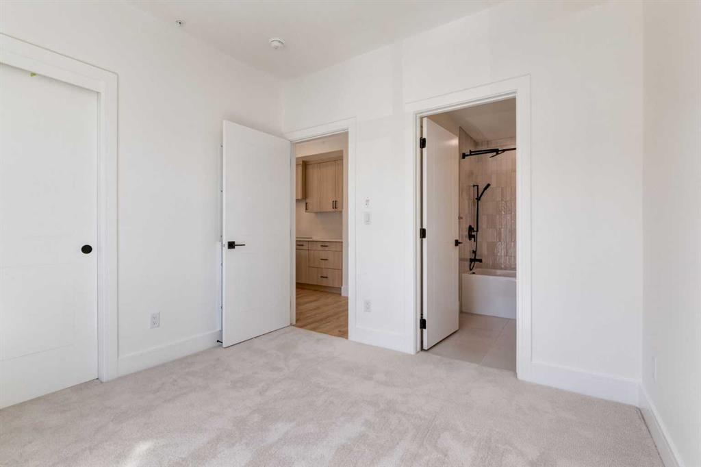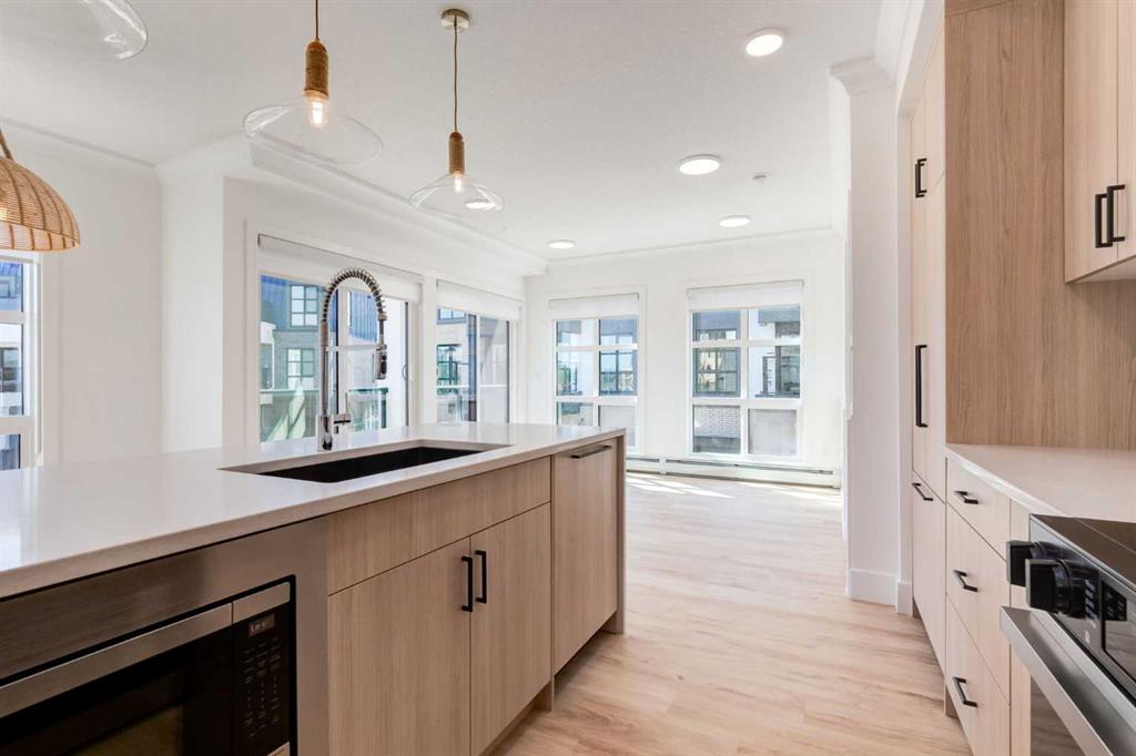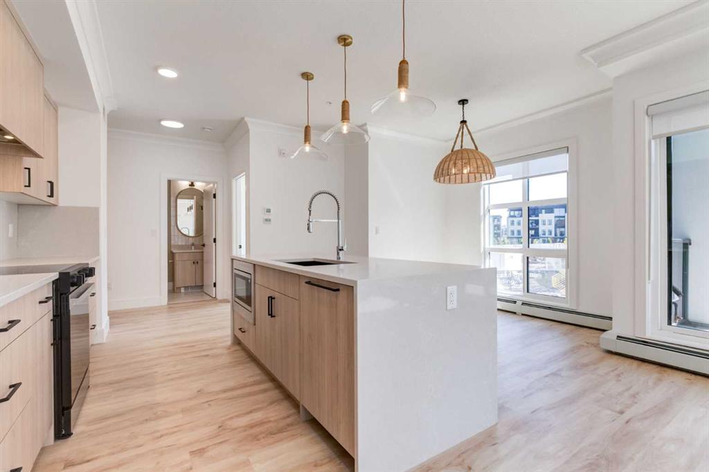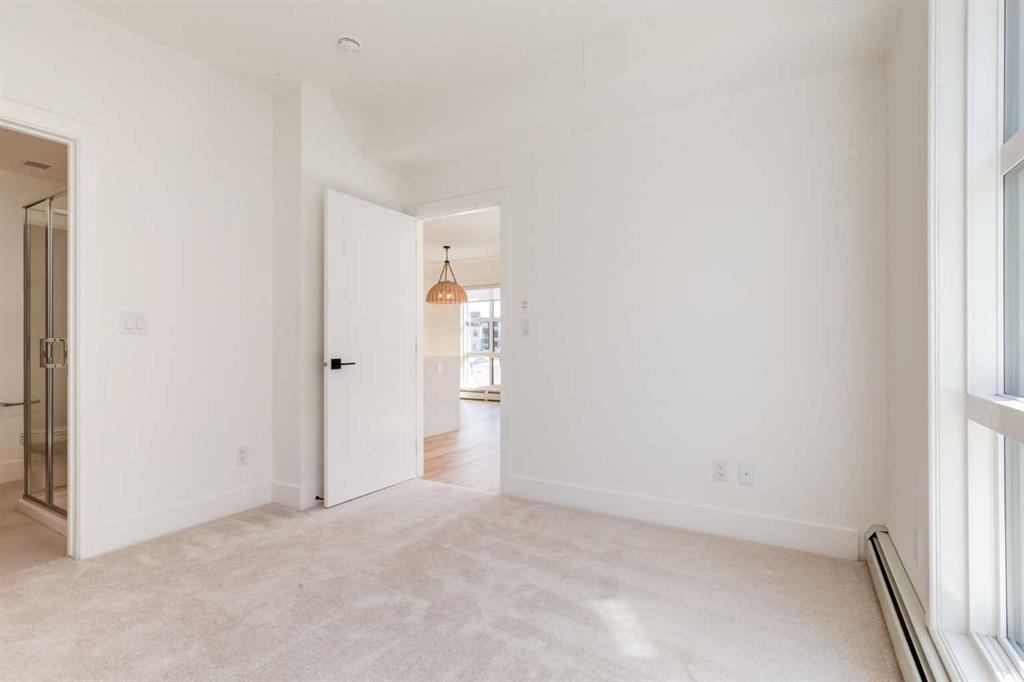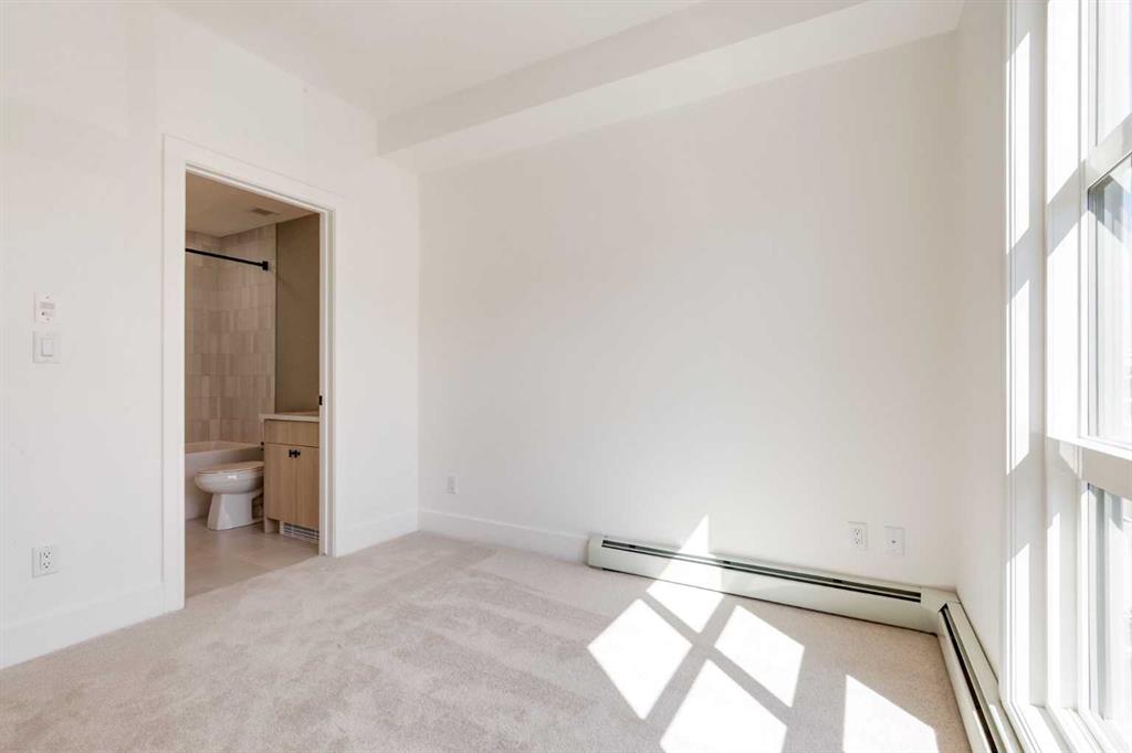 Discover the "Argento" floorplan by award-winning Rohit Homes—a beautifully designed 2-bedroom, 2-bathroom corner unit that offers the perfect balance of style and functionality. Located on the second floor in the sought-after Quesnay at Currie Barracks, this bright and airy home is flooded with natural sunlight, making it an ideal sanctuary for downsizers or anyone seeking a serene, low-maintenance lifestyle. Featuring the tranquil Ethereal Zen color palette, the interior exudes calm and sophistication. Designed by the award-winning interior designer, the unit includes premium finishes such as 9' ceilings, quartz countertops with a waterfall edge, a quartz backsplash, full-height cabinetry, a stainless appliance package, bespoke light fixtures, and window coverings. The open-concept layout seamlessly integrates the kitchen, dining, and living areas, perfect for both relaxing and entertaining. The spacious primary bedroom includes a private ensuite, while the second bedroom and additional full bath offer comfort and flexibility for guests or a home office. Step outside to enjoy a large SE facing balcony, extending your living space into the outdoors. This pet-friendly and AIRBNB-friendly building offers titled heated underground parking and plenty of visitor spaces. Ideally located minutes from downtown, Mount Royal University, and the vibrant amenities of 17th Ave and Marda Loop, the Argento floorplan is a rare gem. Limited units are available—secure your slice of modern living today! **Photos are taken from existing building of the same models. Not of the exact unit **