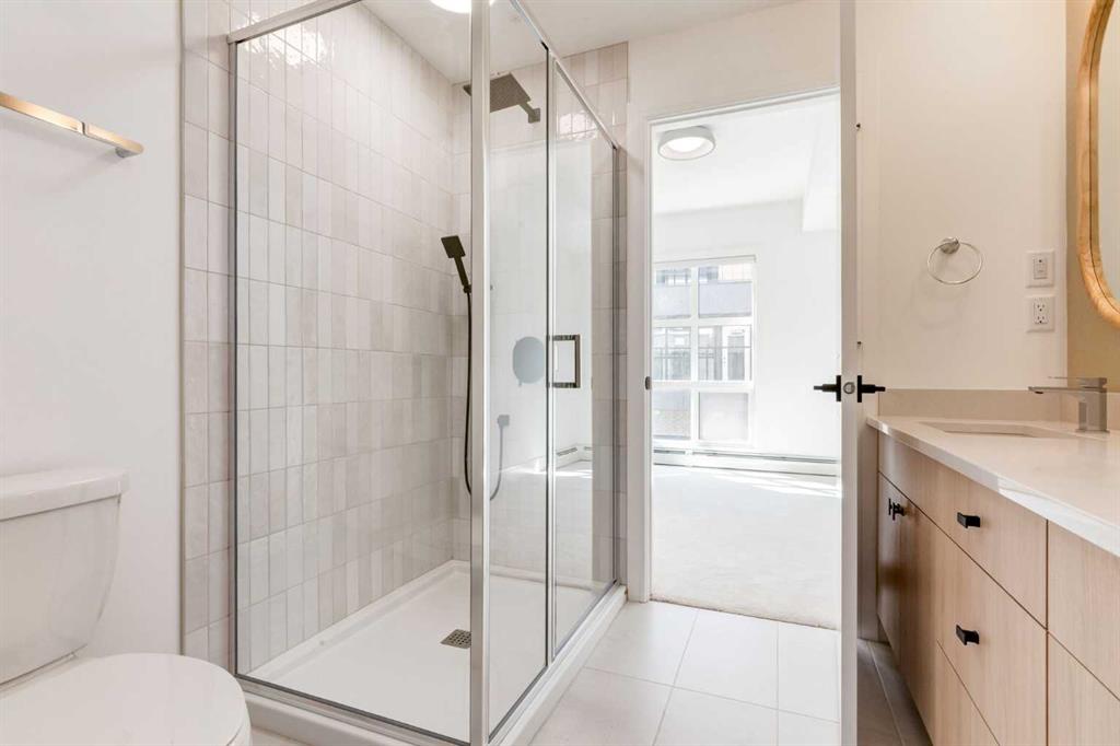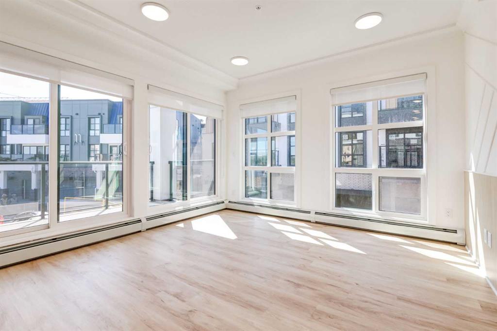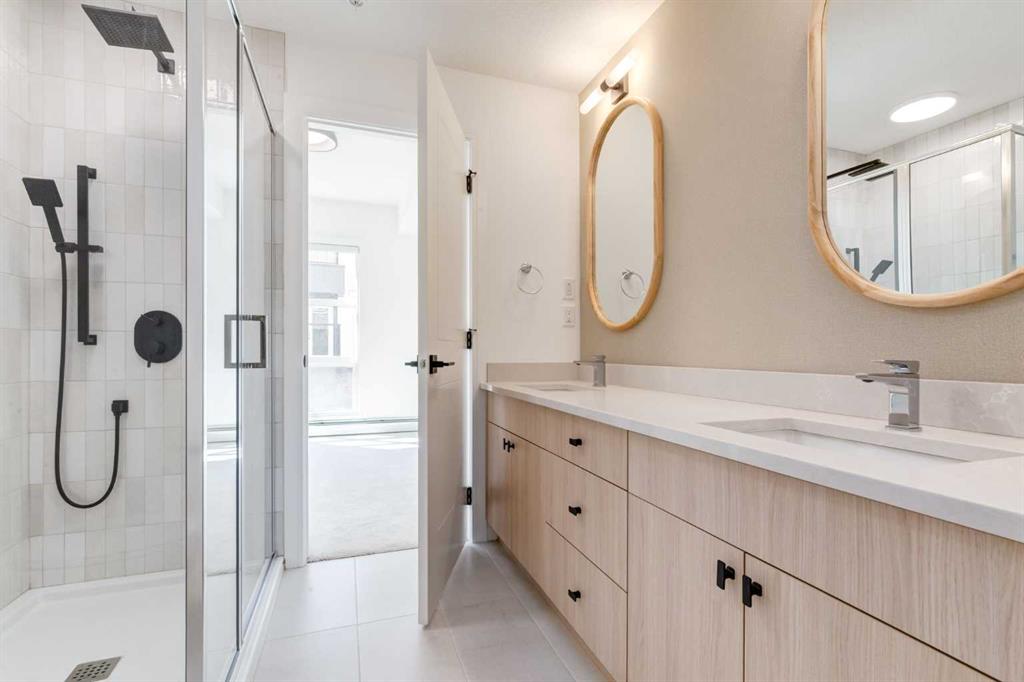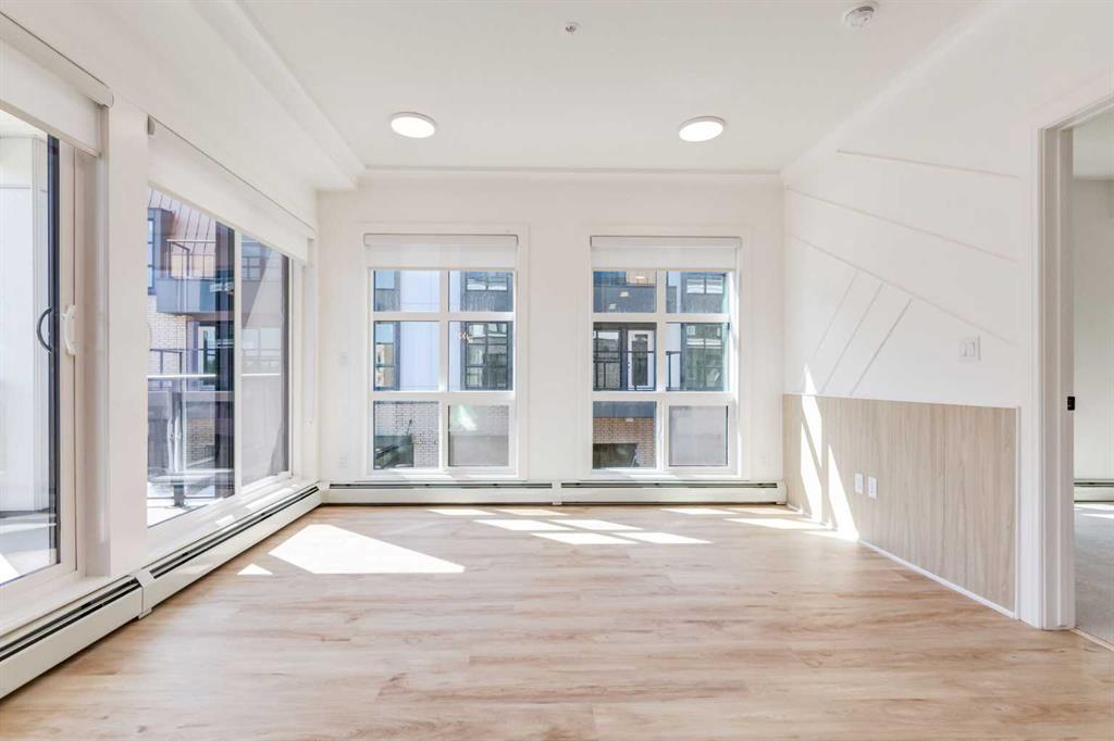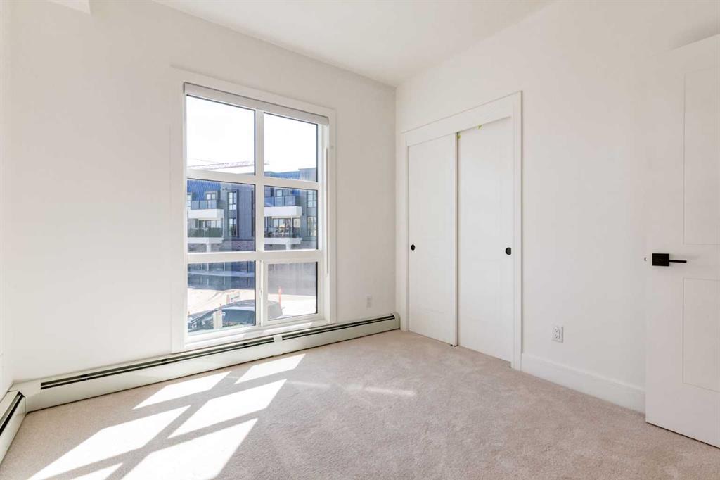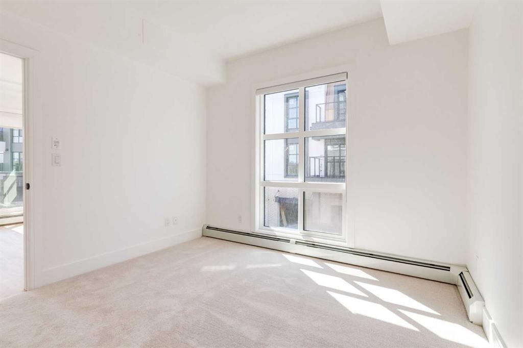 Discover the "Argento" floorplan by award-winning Rohit Homes—a beautifully designed 2-bedroom, 2-bathroom corner unit that offers the perfect balance of style and functionality. Located on the second floor in the sought-after Quesnay at Currie Barracks, this bright and airy home is flooded with natural sunlight, making it an ideal sanctuary for downsizers or anyone seeking a serene, low-maintenance lifestyle. Featuring the tranquil Ethereal Zen color palette, the interior exudes calm and sophistication. Designed by the award-winning interior designer, the unit includes premium finishes such as 9' ceilings, quartz countertops with a waterfall edge, a quartz backsplash, full-height cabinetry, a stainless appliance package, bespoke light fixtures, and window coverings. The open-concept layout seamlessly integrates the kitchen, dining, and living areas, perfect for both relaxing and entertaining. The spacious primary bedroom includes a private ensuite, while the second bedroom and additional full bath offer comfort and flexibility for guests or a home office. Step outside to enjoy a large SE facing balcony, extending your living space into the outdoors. This pet-friendly and AIRBNB-friendly building offers titled heated underground parking and plenty of visitor spaces. Ideally located minutes from downtown, Mount Royal University, and the vibrant amenities of 17th Ave and Marda Loop, the Argento floorplan is a rare gem. Limited units are available—secure your slice of modern living today! **Photos are taken from existing building of the same models. Not of the exact unit **