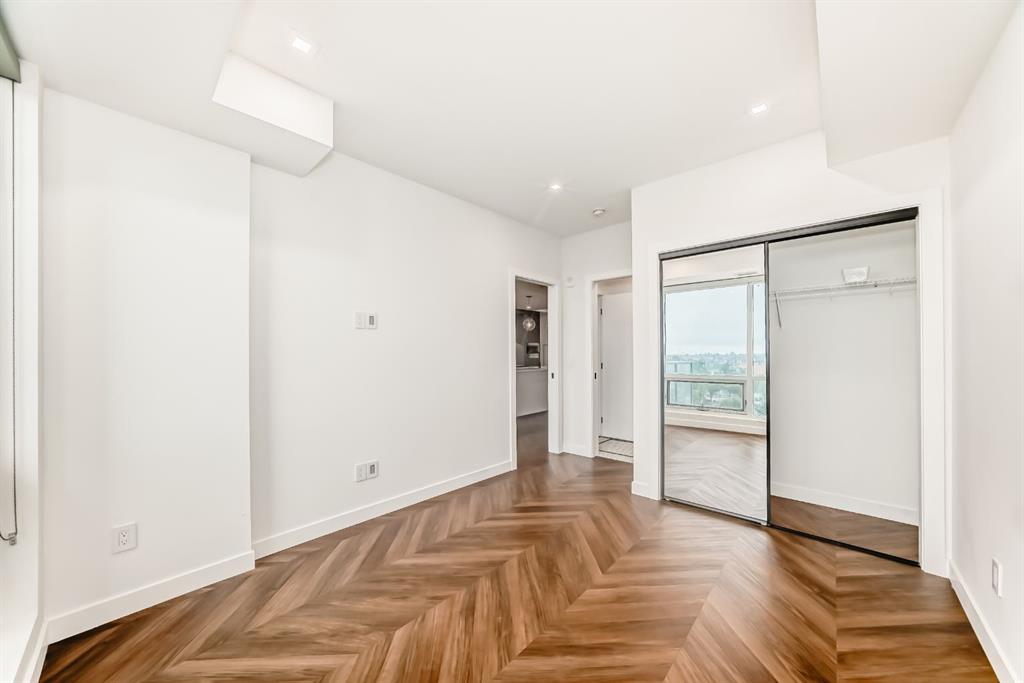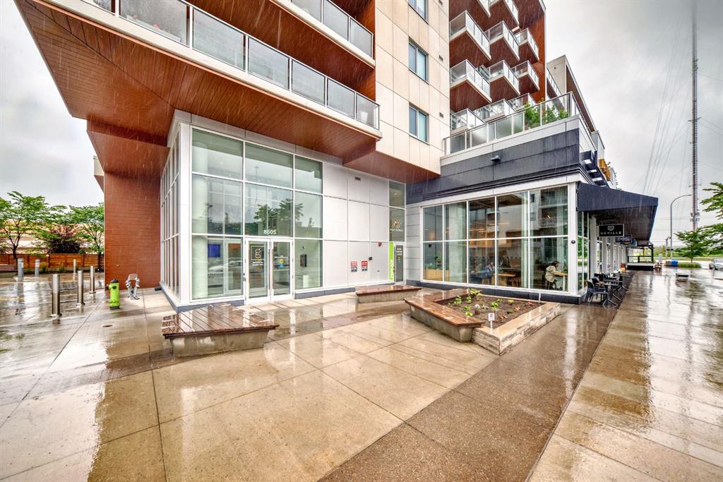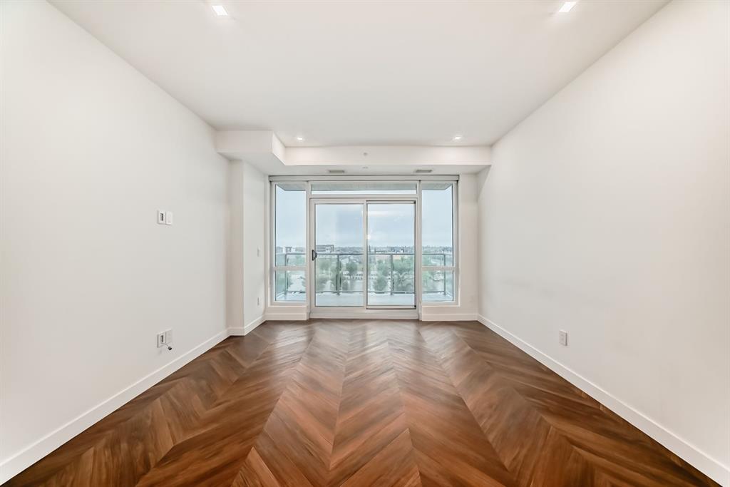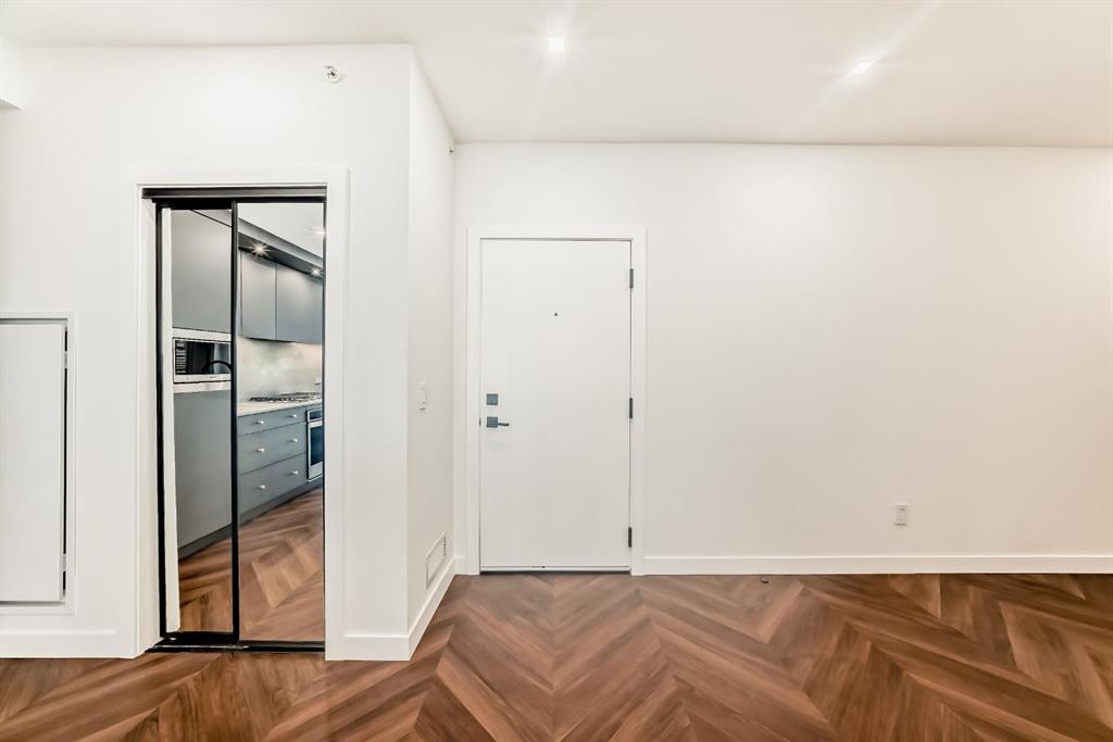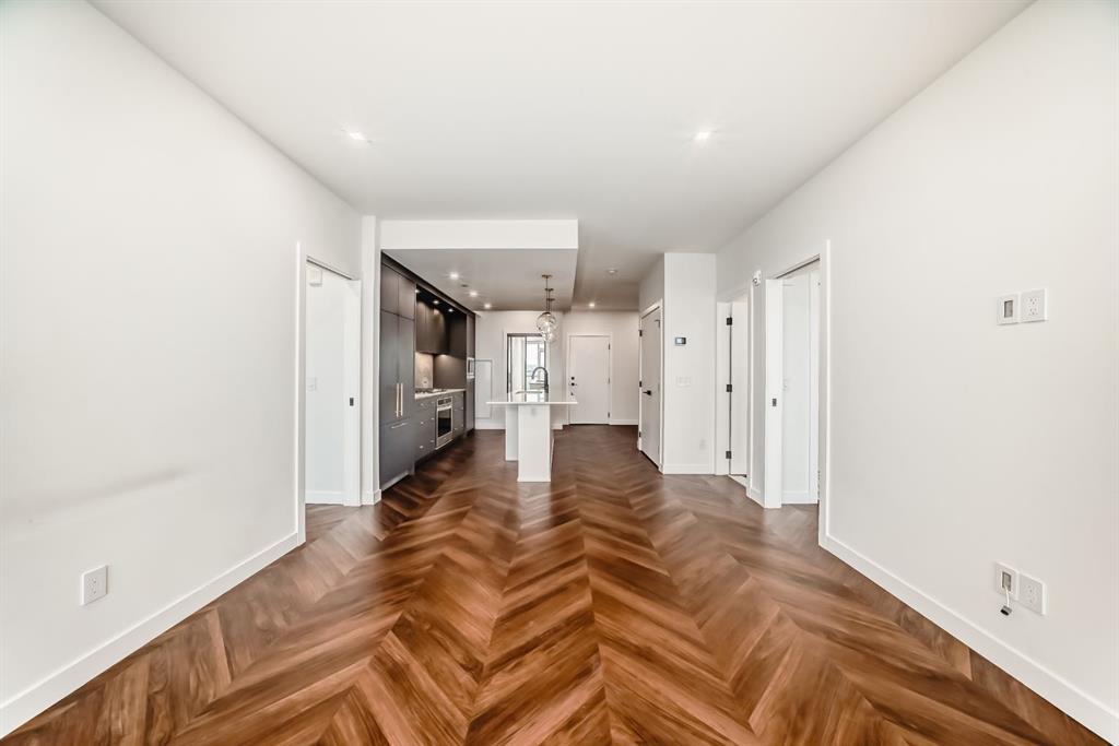 Lowest Priced Unit- Step into this stunning 2-bedroom, 2-bathroom plus den condo that perfectly blends modern luxury with everyday comfort. Featuring 9-ft ceilings, floor-to-ceiling windows, and stylish herringbone flooring, this bright and open space includes a gourmet kitchen with quartz countertops, full-height soft-close cabinetry, LED lighting, and premium appliances. The spacious primary bedroom boasts a walk-in closet and a 4-piece ensuite, while the second bedroom is paired with a sleek 3-piece bath. Enjoy the convenience of in-suite laundry, a private balcony, and access to amenities like concierge service, a social lounge, bike storage, and vibrant ground-floor retailers. Located just 15 minutes from downtown and 5 minutes from WinSport, with easy access to major roads, this home offers the perfect balance of urban living and outdoor lifestyle.