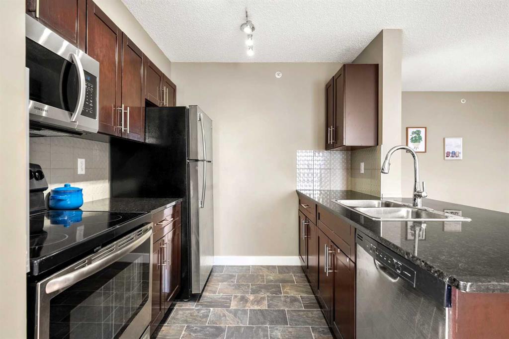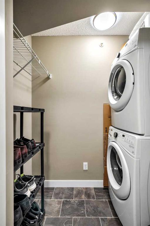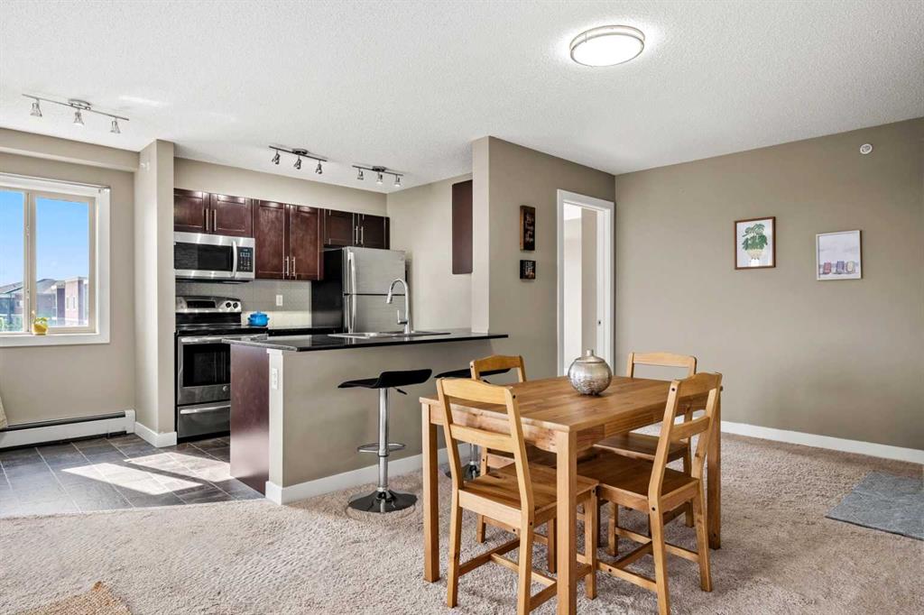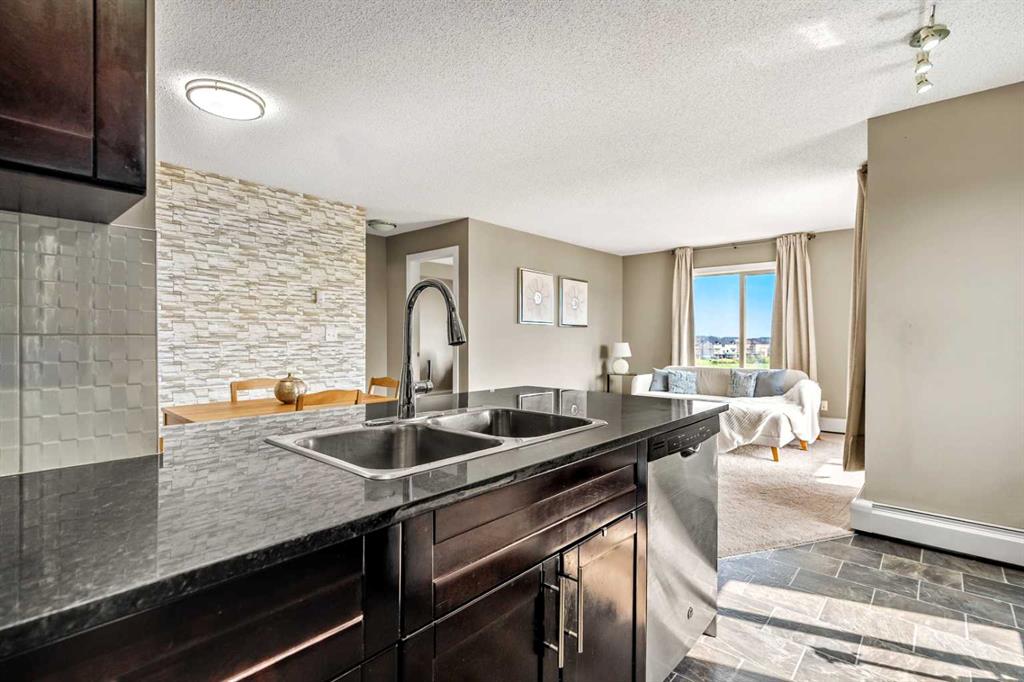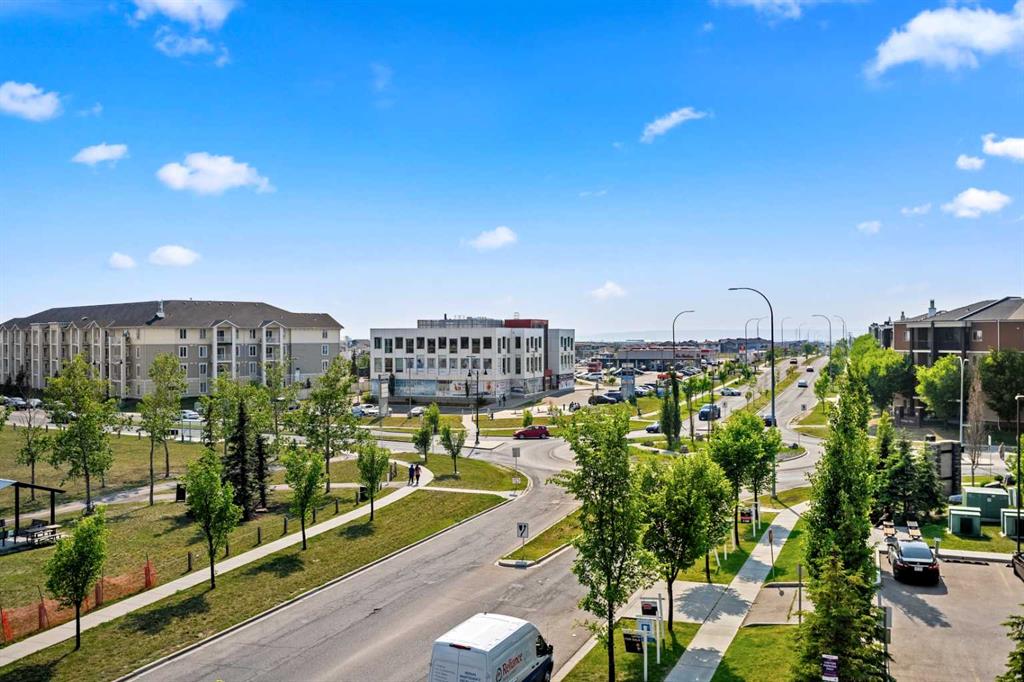 Experience elevated living in this stunning top-floor corner condo in the sought-after community of Saddlestone, offering breathtaking mountain views and a peaceful outlook over Taralake. This bright, spacious, and freshly painted condo is filled with natural light from large windows and enjoys a quiet and private setting. The open-concept layout features granite countertops, modern stainless steel appliances , and in-suite stacked laundry for ultimate convenience. A generous living area and private balcony make it easy to relax or entertain while taking in the panoramic views. A flexible den provides the ideal space for a home office, study, or creative retreat. This unit also includes a heated underground titled parking stall (#198) with a large 10'-6" x 4'-3" private storage unit located directly behind the stall—perfect for extra storage needs. Located just within walking distance to the C-Train station, Genesis Centre, schools, parks, and shopping, this condo offers the perfect blend of comfort, style, and accessibility in one of northeast most desirable communities, Saddlestone. Don’t miss this rare opportunity!