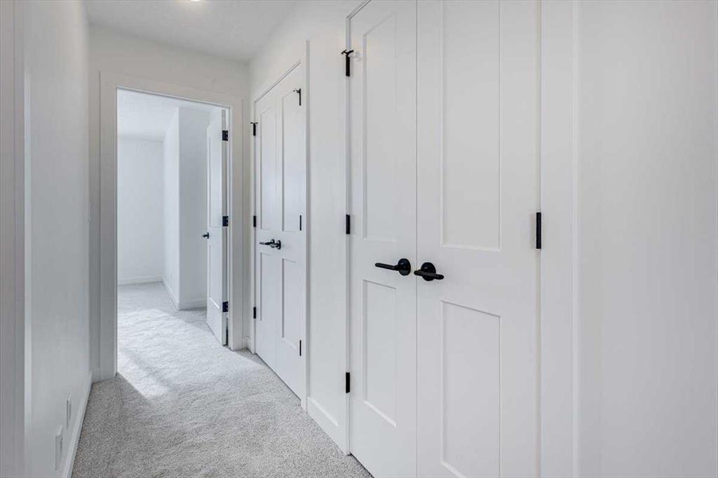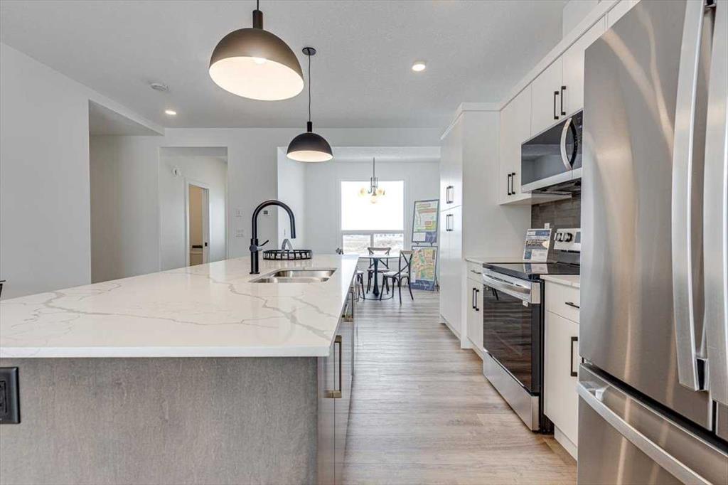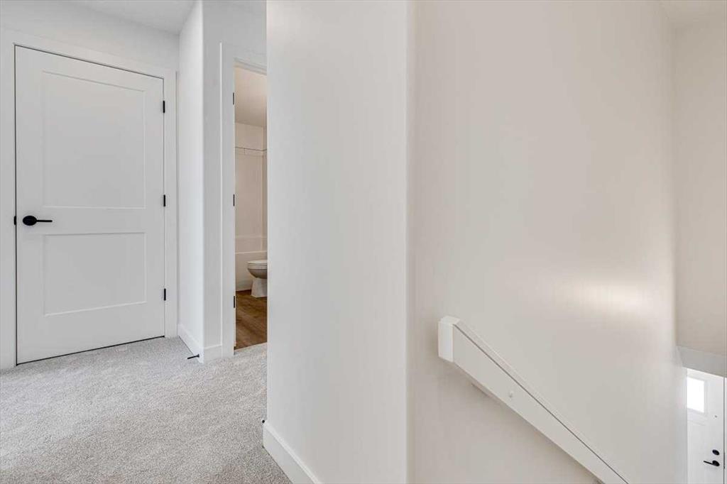 END UNIT with NO CONDO FEES! Stylish, modern 2 Storey Townhomes in the new area of Laredo. Say Goodbye to the stress of older homes & get Alberta New Home Warranty plus additional builder warranty on these Brand New homes built by Asset Builders Corp. Step onto your 7'x7' composite front SW deck, into your spacious entry & you are greeted by a bright & spacious open layout on this main floor. Check out all the natural sunlight through these large energy efficient triple pane windows & you will love this amazing vinyl plank flooring throughout w/cushy carpet in the bedrooms upstairs. The kitchen is the heart of the home, with a large island w/extended Quartz countertop (perfect for your stools, kids homework sessions, or long chats while cooking), built in pantry area, & 4 Stainless appliances included. Dining room will fit your large tables & extra family members. The favorite space of all parents out there is this roomy back entry w/half bath @ the back door that leads to your 10'6"x 10' NE facing back deck w/aluminum railing & yard, with vinyl fence between neighbors (done down north side only) with 2 car parking off the back lane. Upstairs you will find the area for your future washer & dryer, 2 good sized bedrooms, a full main bath + a primary bedroom that features a large walk in closet & full 4 piece ensuite. Extra bonus is the huge hallway closets that make the best use of space! Downstairs is open for your inspiration, but has the advantage of a side entry as well...planned for future bdrm, bath & family room w/plenty of natural light & extra storage. High efficient furnace & 80 gallon HWT so you never run out of hot water! GST included w/rebate to builder. This family neighborhood that's close to shopping, food & walking trails, parks & school areas! Single detached garage could be built in future. Interior finished pictures are from previous unit with the similar layout & colors, currently under construction!!