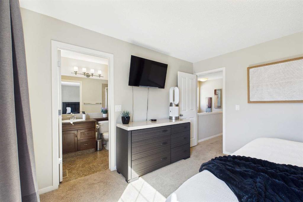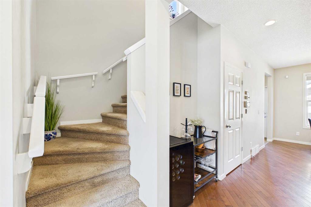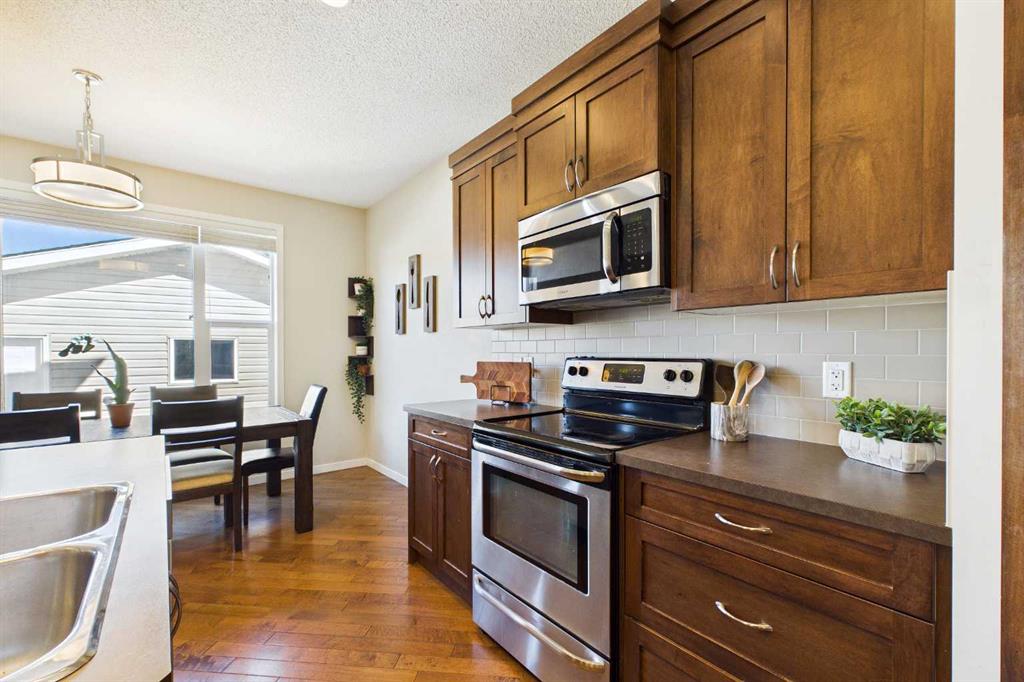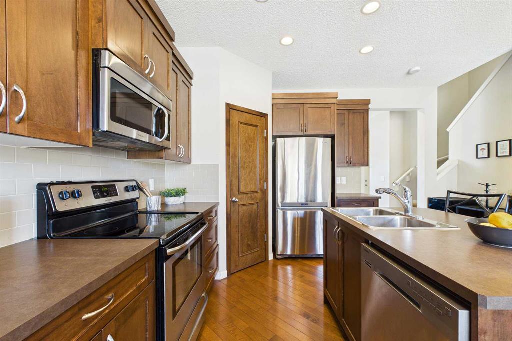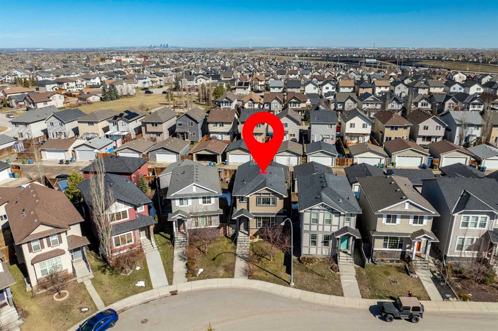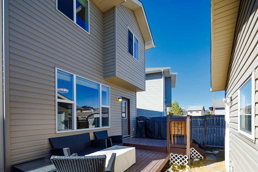 Welcome to this beautifully maintained 3-bedroom, 2.5-bath family home, offering a perfect balance of style, comfort and everyday functionality. Located on a quiet street in the sought after community of Cranston! Thoughtfully designed with 9’ ceilings, large windows, and modern finishes throughout, the bright main floor features an open-concept layout ideal for both relaxing and entertaining. A sun drenched south facing living room welcomes you to the home featuring a cozy gas fireplace. The upgraded kitchen features dark cabinetry, stainless steel appliances, a central island, a corner pantry, and rich hardwood flooring, all flowing into a spacious dining area perfect for hosting. At the rear of the home, a practical mudroom leads out to a fully fenced & landscaped backyard with a generous 2 tiered deck and a double detached garage, offering both convenience and a great outdoor living space. Upstairs, the spacious primary suite includes California Closet built-ins showcasing the large walk in closet, and a private 3pc ensuite, while two additional bedrooms and a full bathroom provide plenty of room for family or guests. The basement offers great potential for future development with two large windows and a bathroom rough-in. Additional features include a tankless hot water heater for greater efficiency. Ideally located in a family-friendly community close to top-rated schools, amenities, the HOA facility, parks, pathways, the Bow River, and with easy access to Deerfoot and Stoney Trail-this move-in ready home is an incredible opportunity.
