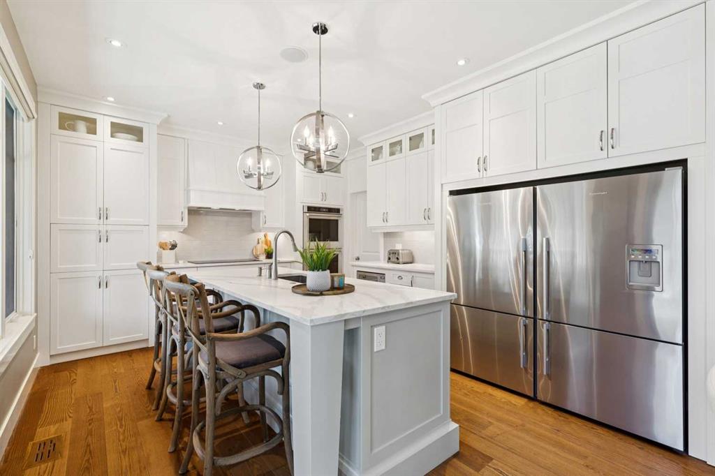 Location, location, location 50 x124' lot! This timeless home is situated on one of the best tree lined streets in Altadore with a west facing beautifully landscaped backyard that is truly an oasis. The main floor plan is the perfect combination of open plan and functional focus. Features include a generous foyer, private powder room, distinct dining room and office with a large mudroom off to the side in its own distinct space. The back of the house opens up into a great room, nook and kitchen/pantry with large windows and patio doors opening up onto the covered composite decking. The upper floor includes a massive master bedroom and spa like ensuite, a large laundry room, as well as 2 considerably sized bedrooms, each with their own sizable walk-in closets sharing a main bathroom. The lower level includes a rec room with bar and flex area, two additional bedrooms as well as a bathroom, mechanical and storage room. This home has been meticulously maintained and shows pride of ownership. The kitchen was upgraded in 2023 with included new double wall ovens, new induction cooktop, new dishwasher and new hood fan. A/C, in-floor heating, vacuflo, and underground sprinkler system are some of the highlights. The oversized double garage with separate attached shed perfect for storage of bikes and outdoor equipment. The wood burning fireplace in the backyard is the perfect gathering place. This is a perfect family home both indoor and outdoor in one of the best communities in Calgary surrounded by a plethora of schools, amenties, bike paths, and only 5 minutes to DT and major thoroughways out of town. Book your showing today!