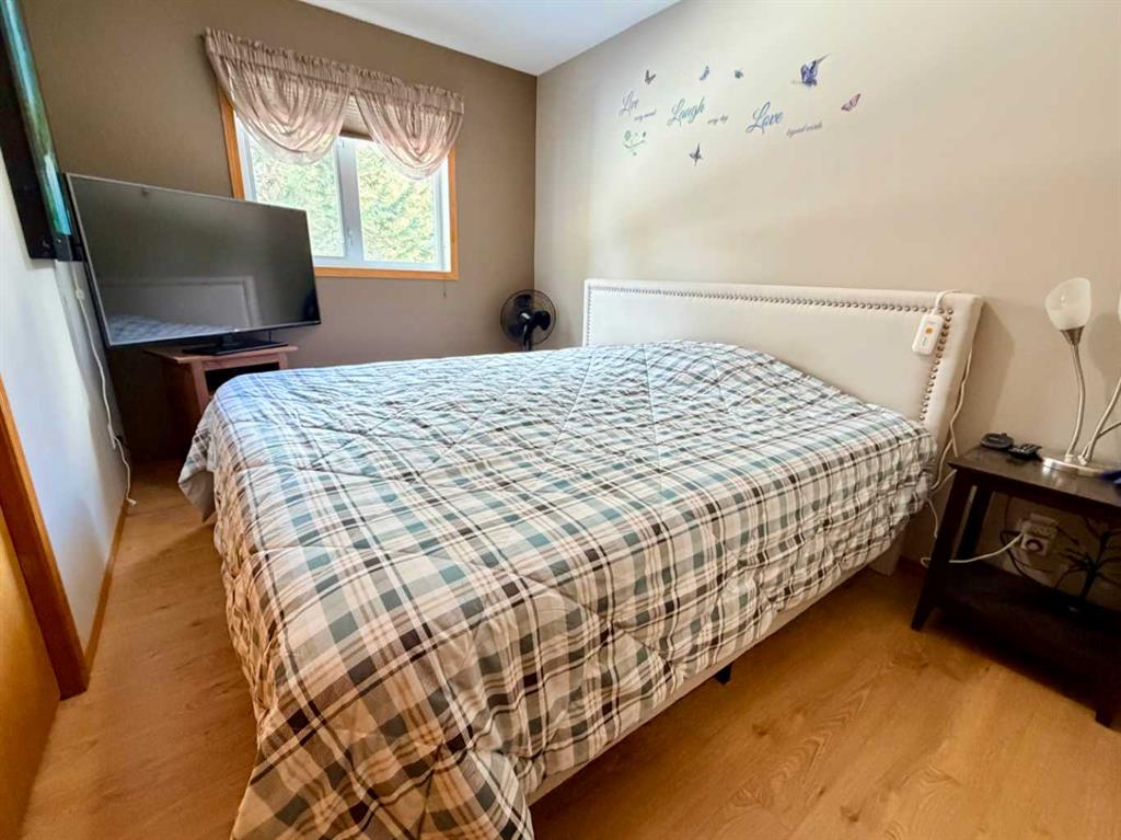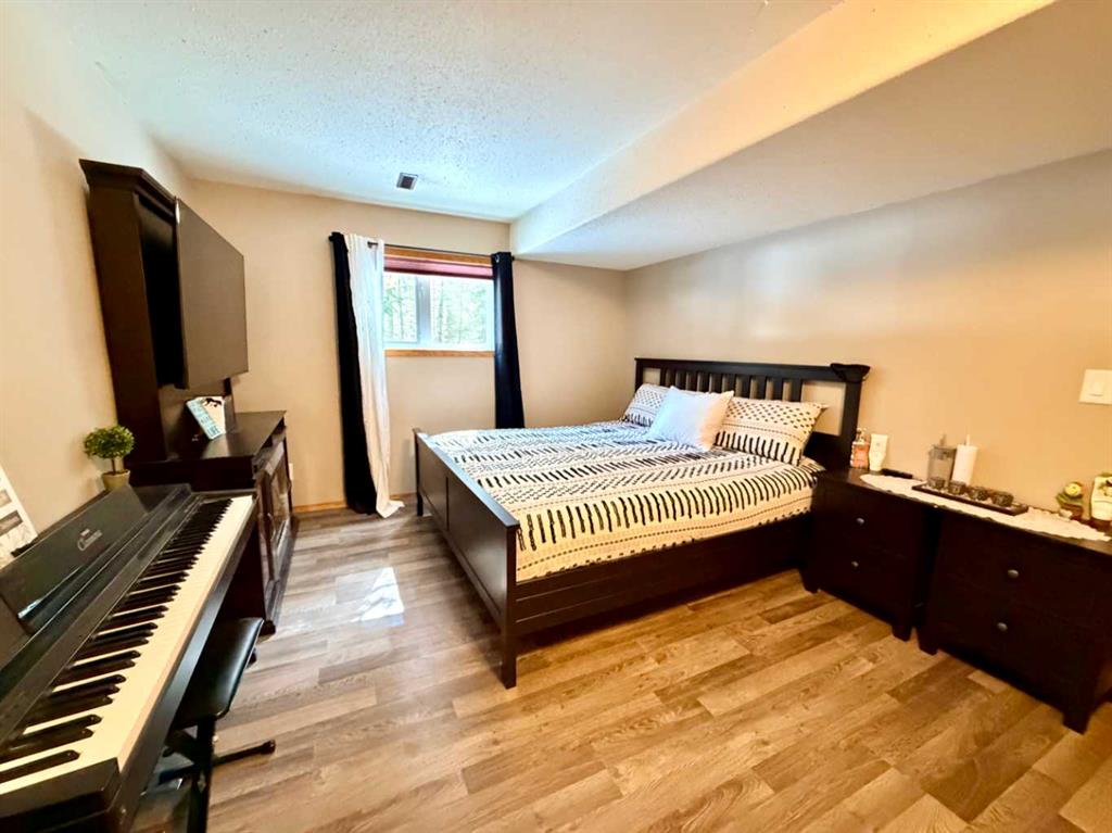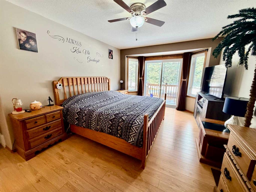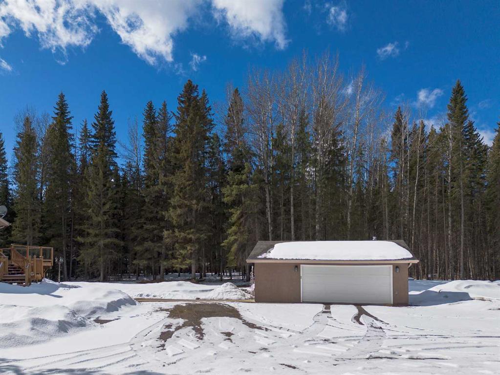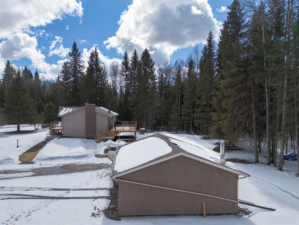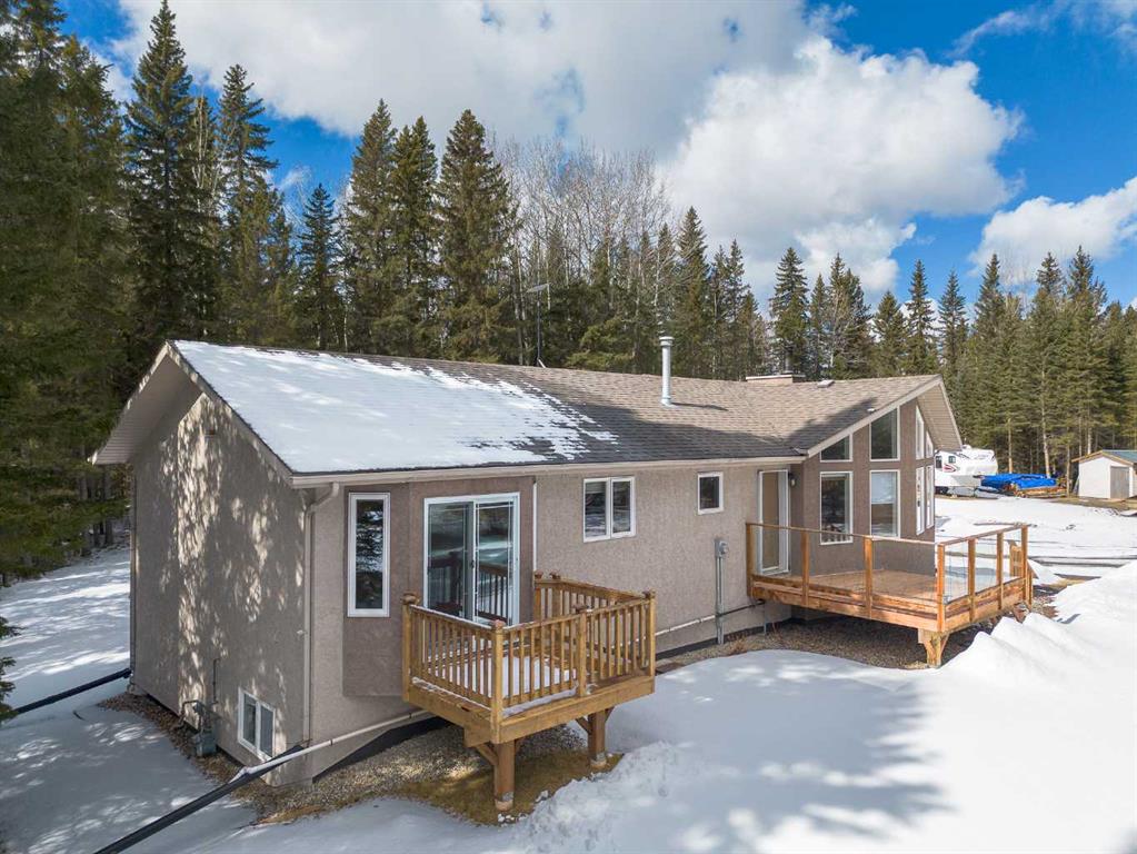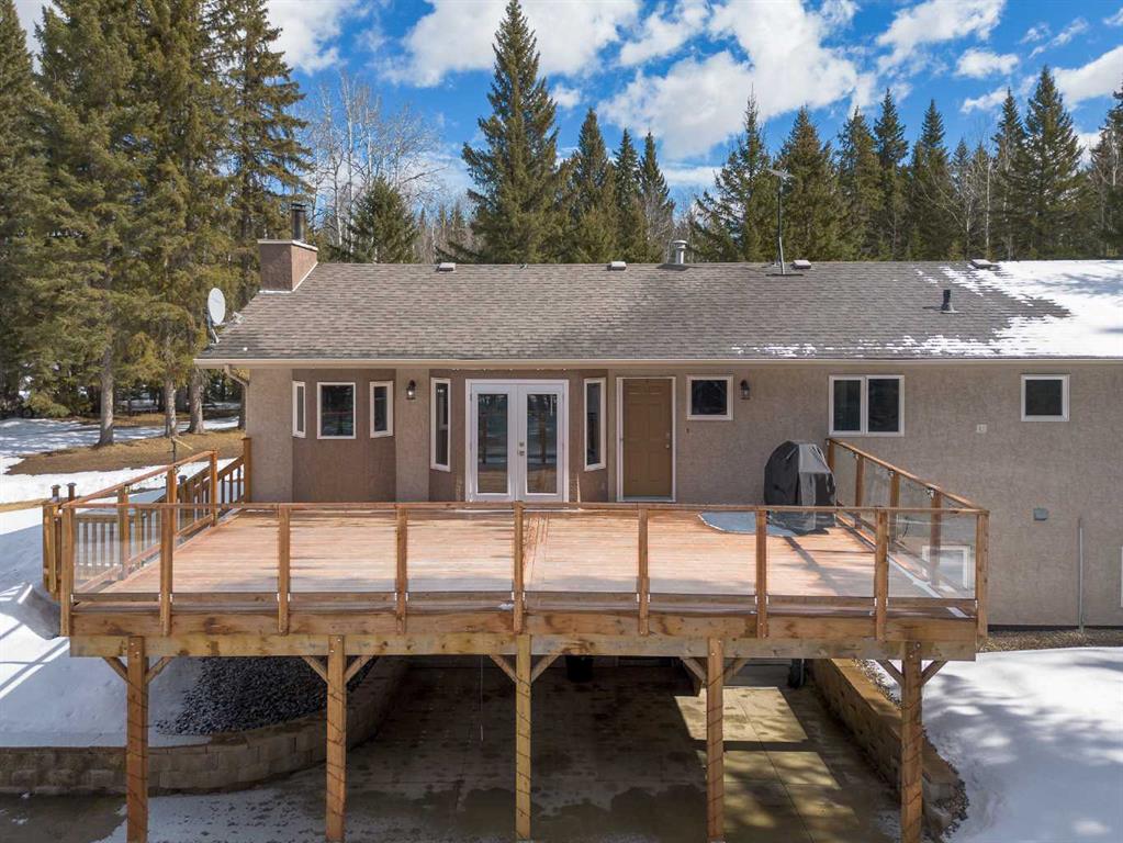 Scenic Acreage nicely tucked in the trees in the desirable community of Clearwater Estates, just south of Rocky Mtn. House. This walkout bungalow is well maintained and in immaculate condition with a comfortable kitchen, nice big main floor living room, oversized master bedroom with a private deck, ensuite with jetted tub and walk in closet. There's a second main floor bedroom as well as a laundry area and two piece bathroom conveniently located next to the back door. The lower level features a walk out to a covered concrete patio (that has a spot for a hot tub with a 60 amp GFI breaker), an oversized rec room with wood stove and kitchen area - the perfect place for entertaining, two additional bedrooms, a full bathroom as well as lots of storage space. The 24 x 28' detached garage is finished and heated and a site has been cleared next to it for a future shop or parking area. Numerous improvements to this property over the last few years including new flooring, paint and countertops, three new decks built with treated lumber, new windows in the home and stucco on both the house and garage, and a new septic field (2020). Here's an acreage that you can simply move in and enjoy!