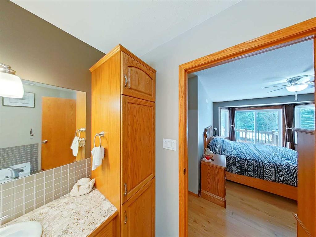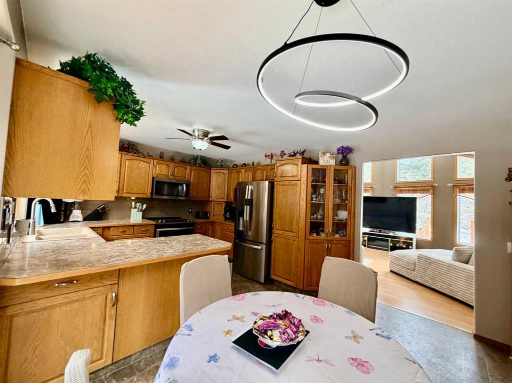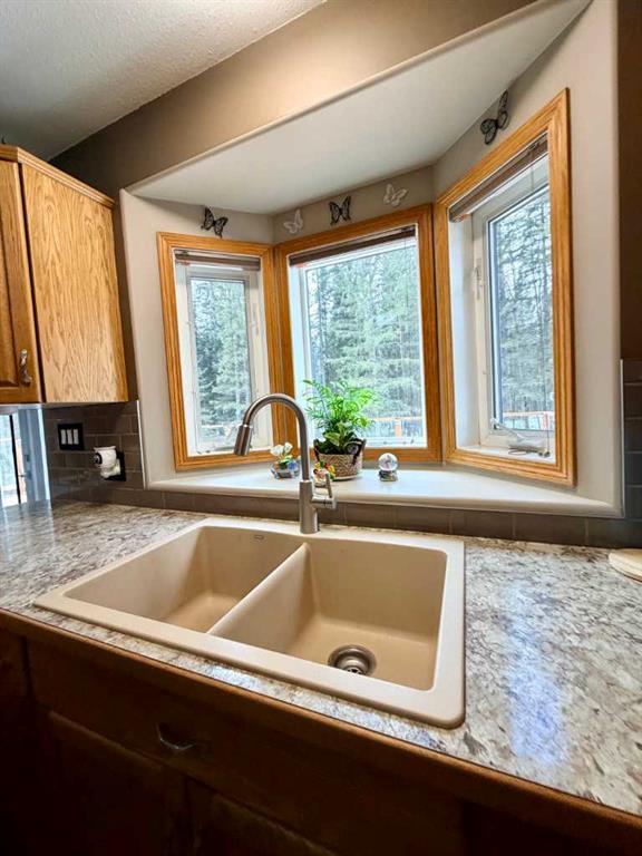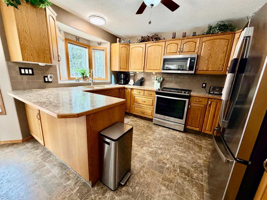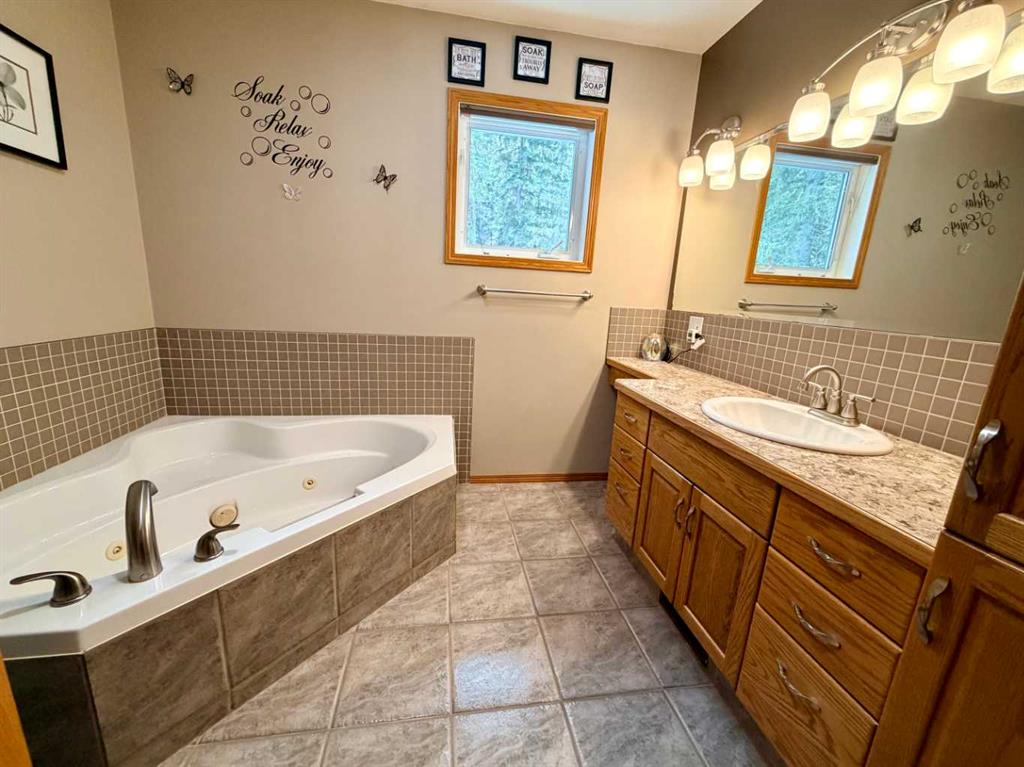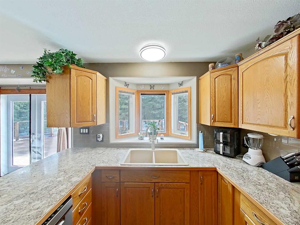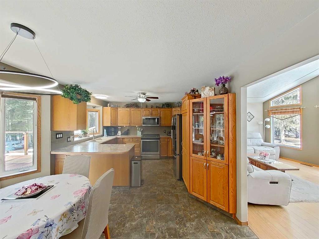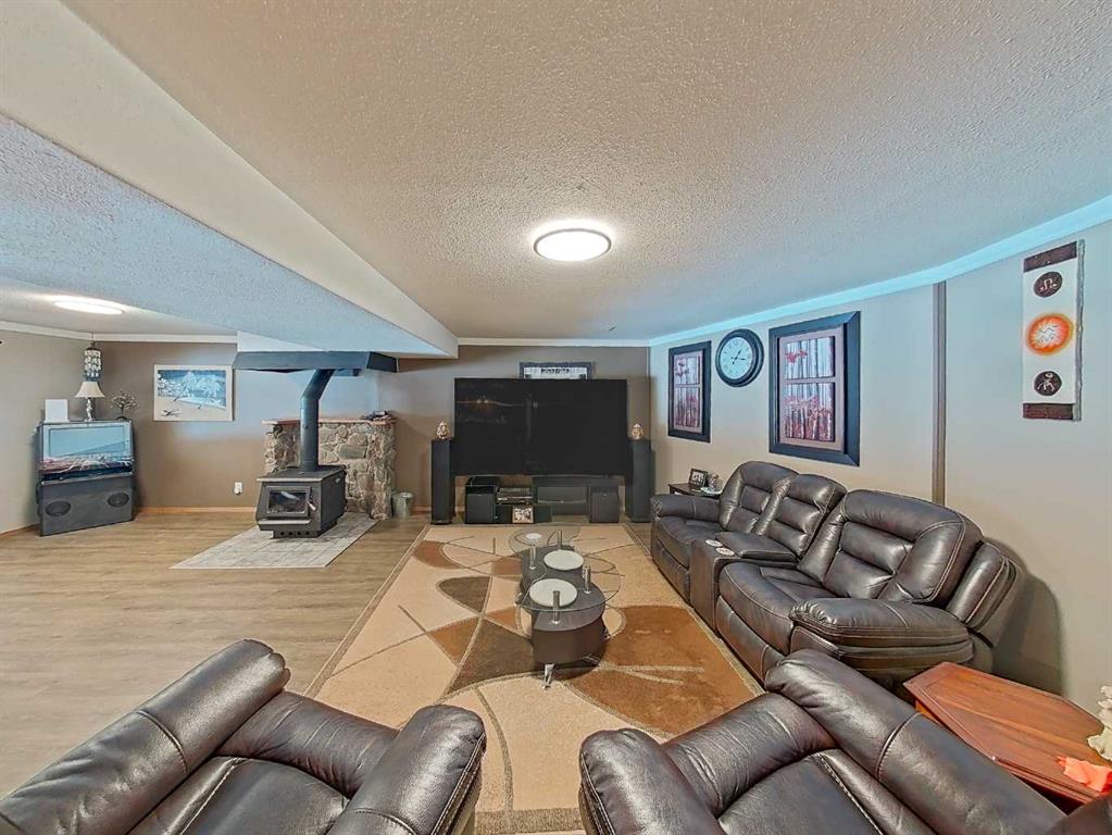 Scenic Acreage nicely tucked in the trees in the desirable community of Clearwater Estates, just south of Rocky Mtn. House. This walkout bungalow is well maintained and in immaculate condition with a comfortable kitchen, nice big main floor living room, oversized master bedroom with a private deck, ensuite with jetted tub and walk in closet. There's a second main floor bedroom as well as a laundry area and two piece bathroom conveniently located next to the back door. The lower level features a walk out to a covered concrete patio (that has a spot for a hot tub with a 60 amp GFI breaker), an oversized rec room with wood stove and kitchen area - the perfect place for entertaining, two additional bedrooms, a full bathroom as well as lots of storage space. The 24 x 28' detached garage is finished and heated and a site has been cleared next to it for a future shop or parking area. Numerous improvements to this property over the last few years including new flooring, paint and countertops, three new decks built with treated lumber, new windows in the home and stucco on both the house and garage, and a new septic field (2020). Here's an acreage that you can simply move in and enjoy!