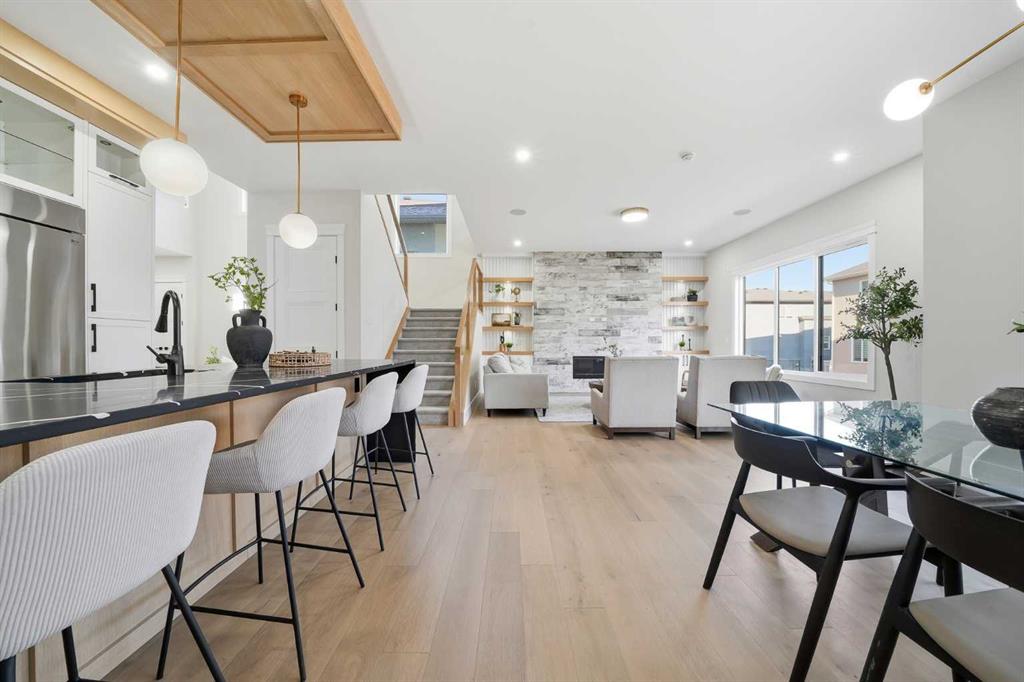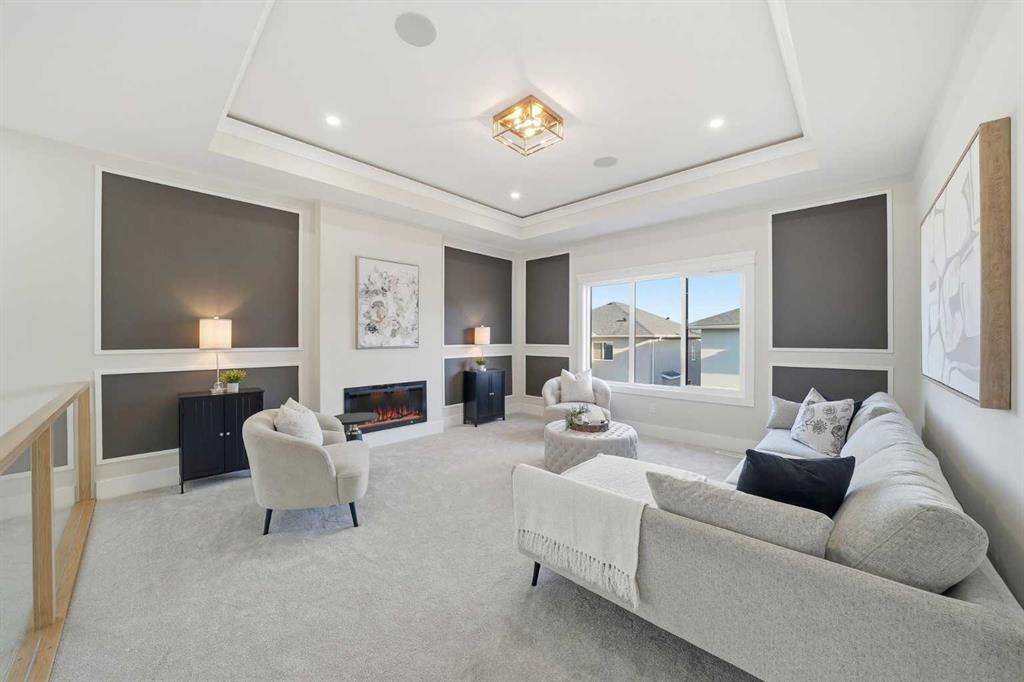 Stunning brand new 2-storey home in the prestigious Waterford Estates of Chestermere, situated on a large 56’ x 110’ lot with a triple attached garage and 3,370+ sq ft of beautifully finished living space. Designed for large or multi-generational families, this home offers 5 bedrooms and 4 full bathrooms, including two primary bedrooms with private ensuites. The main floor features 10’ ceilings, a grand open-to-above design, multiple living and dining areas, a chef’s kitchen with high-end appliances, and a walk-through spice kitchen with direct access to the mudroom and garage. A versatile flex room, full 3-piece bath, ambient staircase lighting, and upscale finishings throughout create a warm yet refined feel. Upstairs offers 4 bedrooms with walk-in closets, a spacious bonus room with tray ceiling, convenient upper-level laundry, and striking architectural details including vaulted ceilings. The basement is roughed-in and the home is wired for security cameras. Located in a family-friendly community close to schools, shopping, and amenities. Exceptional space, quality, and long-term value.