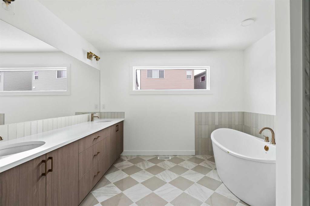 The Columbia 26 is a brand-new home built by Brookfield Residential, ready for immediate possession! Situated on an oversized conventional pie lot (not zero lot) with 4 bedrooms on the upper level and featuring nearly 2,600 square feet of developed living space + a full basement with private side entrance. Featuring 2 living areas, a home office space, 4 bedrooms above grade and 2.5 bathrooms, this home offers the perfect space for a large family! Upon entry a grand foyer provides plenty of space with sight lines from the entryway to the back of the home and main living area. Walls of windows across the back of the home allow natural light to fill the space all day long. The home boasts a central gourmet kitchen with an expansive pantry that has direct access to the mudroom for everyday convenience. The kitchen is complete with a chimney hood fan, built-in wall oven & microwave and a gas cooktop. The kitchen is complete with a large central island and open to the main living and dining space - making it the perfect place to host guests. Warm wood tones and a timeless design palette flow effortlessly throughout the home - creating a space that is beautiful today and will offer exceptional resale value long term. The main level is complete with a private flex space, perfect for a home office with double doors providing added privacy. A central gas fireplace on the main level is the perfect addition for cool winter nights. The main level is complete with 3 closets, an expansive mud room and 2 pc powder room. The upper level has a central bonus room that separates the primary suite from the other 3 bedrooms. The primary suite overlooks the backyard and has a large ensuite with dual sinks, a walk-in shower and soaker tub, in addition to the oversized walk-in closet. Three more large bedrooms, with walk-in closets and double closets, provide ample space for children and a full 5pc bathroom with double sinks and laundry room complete the upper level. The undeveloped basement includes a private side entrance and offers endless possibilities with rough-ins already in place! Located in the new community of Livingston, this home includes Alberta New Home Warranty as well as the builder's warranty, allowing you to purchase this brand-new home with peace of mind.