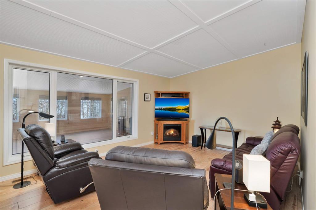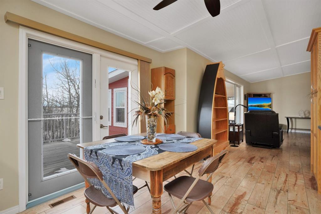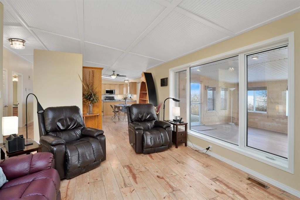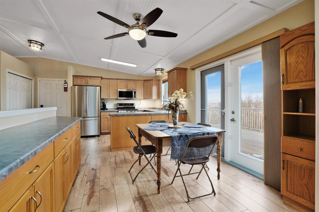 This beautifully designed 4-bedroom, 3-bathroom walkout bungalow offers the perfect balance of privacy, comfort, and lake-focused living. With over 2,000 sq ft of finished living space, the home is well suited for year-round use or as a seasonal retreat to enjoy in every season. The open-concept main floor is bright and inviting, featuring a modern kitchen with updated appliances including a gas stove, and seamless flow into the dining and living areas. The spacious primary bedroom includes a private 3-piece ensuite, while a second bedroom, full bathroom with jetted tub, and main floor laundry add everyday convenience. A standout feature of the home is the 3-season room added in 2017, offering a comfortable space to relax or entertain while staying protected from the elements. From here, step out onto the large deck ideal for outdoor dining, complete with a natural gas BBQ hookup and peaceful views of the surrounding landscape. The fully finished walkout basement completed in 2014 provides excellent guest accommodation with two additional bedrooms, a 3-piece bathroom, and a spacious family room with patio doors leading to a lower outdoor living area. In-floor heating, recessed lighting, and durable epoxy flooring enhance both comfort and durability on this level. Additional highlights include central air conditioning, a double heated garage, and a 6,500-watt Generac generator for added peace of mind. Ideally located just steps from the water and across from the village centre, residents enjoy easy access to the playground, snack shack, basketball, tennis and pickleball courts, and the community hall. The marina and boat launch are only minutes away, making lake access simple and convenient year-round. The property is approximately 20 minutes from Stettler, one hour from Red Deer, and two hours from Calgary or Edmonton. With quick possession available, this is a turnkey opportunity to enjoy everything Buffalo Lake has to offer, from boating and swimming to fishing and winter recreation. Whether you’re searching for a full-time residence, a family getaway, or a retirement retreat, this home delivers a relaxed lake lifestyle in a well-established community.
