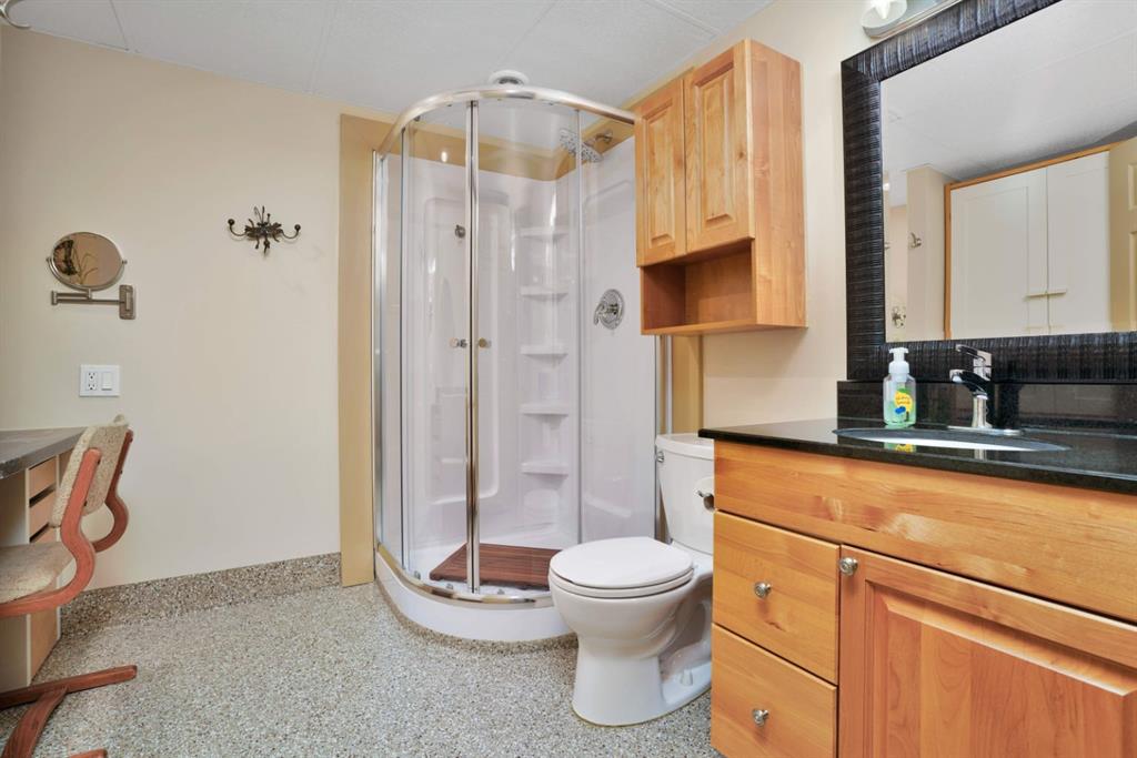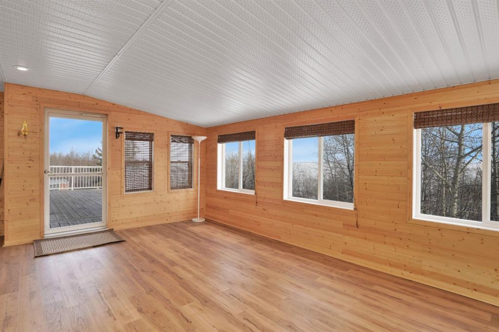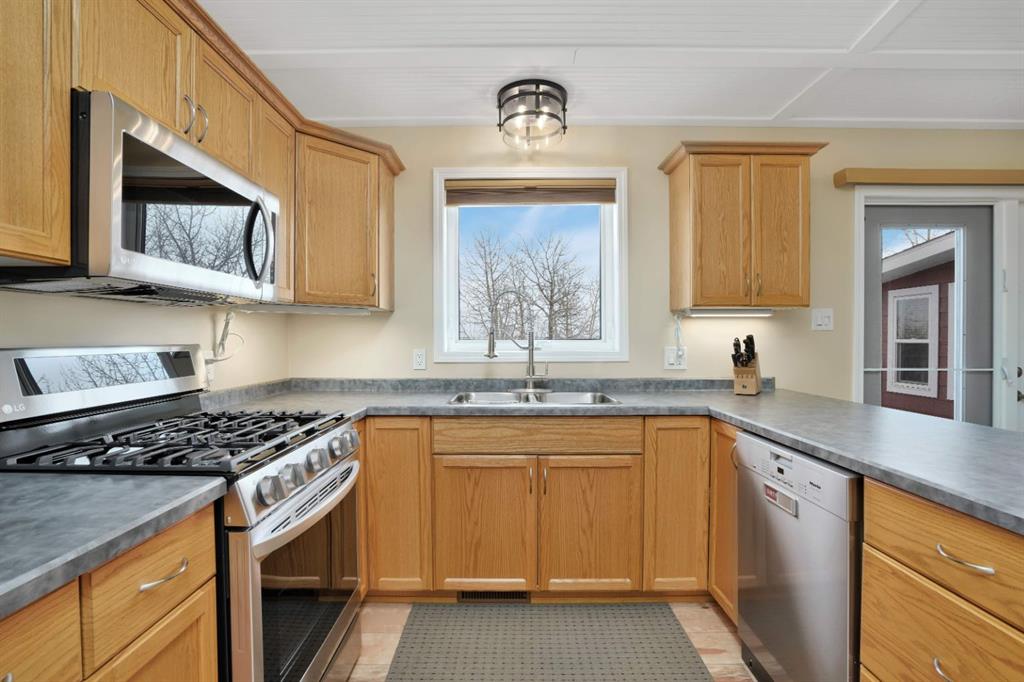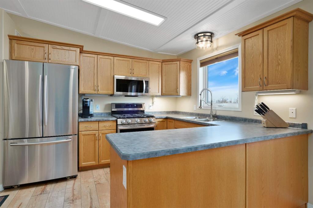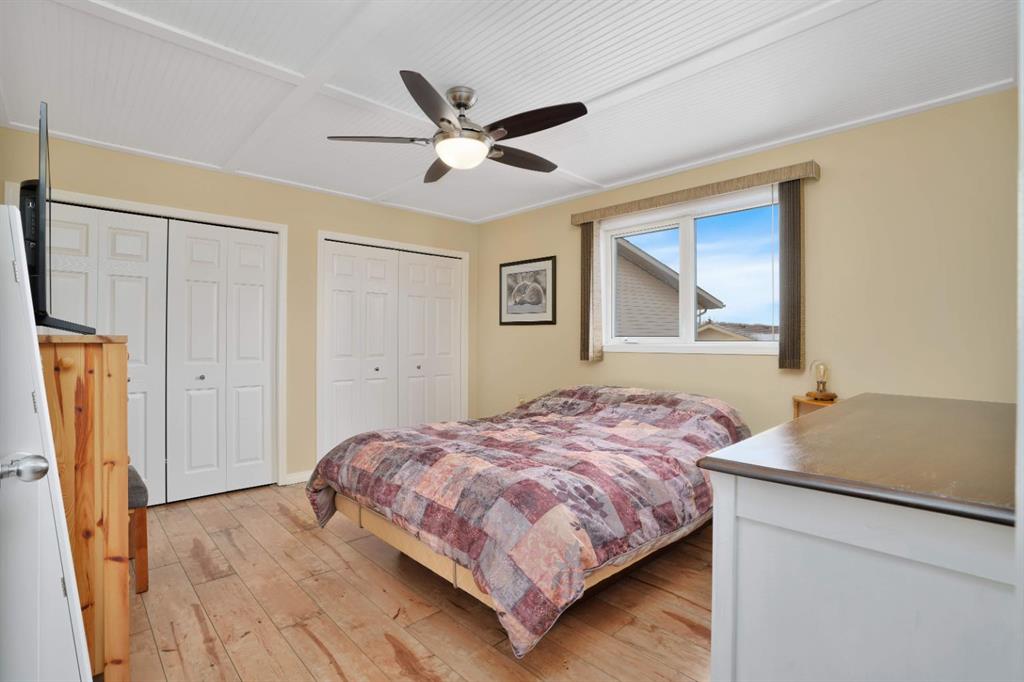 This beautifully designed 4-bedroom, 3-bathroom walkout bungalow offers the perfect balance of privacy, comfort, and lake-focused living. With over 2,000 sq ft of finished living space, the home is well suited for year-round use or as a seasonal retreat to enjoy in every season. The open-concept main floor is bright and inviting, featuring a modern kitchen with updated appliances including a gas stove, and seamless flow into the dining and living areas. The spacious primary bedroom includes a private 3-piece ensuite, while a second bedroom, full bathroom with jetted tub, and main floor laundry add everyday convenience. A standout feature of the home is the 3-season room added in 2017, offering a comfortable space to relax or entertain while staying protected from the elements. From here, step out onto the large deck ideal for outdoor dining, complete with a natural gas BBQ hookup and peaceful views of the surrounding landscape. The fully finished walkout basement completed in 2014 provides excellent guest accommodation with two additional bedrooms, a 3-piece bathroom, and a spacious family room with patio doors leading to a lower outdoor living area. In-floor heating, recessed lighting, and durable epoxy flooring enhance both comfort and durability on this level. Additional highlights include central air conditioning, a double heated garage, and a 6,500-watt Generac generator for added peace of mind. Ideally located just steps from the water and across from the village centre, residents enjoy easy access to the playground, snack shack, basketball, tennis and pickleball courts, and the community hall. The marina and boat launch are only minutes away, making lake access simple and convenient year-round. The property is approximately 20 minutes from Stettler, one hour from Red Deer, and two hours from Calgary or Edmonton. With quick possession available, this is a turnkey opportunity to enjoy everything Buffalo Lake has to offer, from boating and swimming to fishing and winter recreation. Whether you’re searching for a full-time residence, a family getaway, or a retirement retreat, this home delivers a relaxed lake lifestyle in a well-established community.