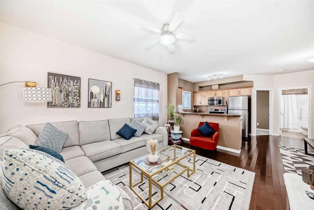 Welcome to this stunning TOP-FLOOR CORNER condo in Lighthouse Landing, offering exceptional privacy, natural light, and beautiful views from your semi-circular covered balcony. This immaculate home features 2 bedrooms and 2 full bathrooms, and an indoor underground parking, thoughtfully designed with no shared walls between bedrooms for added comfort. Inside, you’ll find a bright and spacious and functional layout highlighted by high-end engineered flooring, maple cabinetry, and stainless steel appliances. The inviting living room is anchored by a corner gas fireplace, creating the perfect space to relax or entertain, while the balcony gas line makes outdoor grilling a breeze. The main living area is warm and inviting, perfect for relaxing or hosting, while large windows bring in plenty of natural light throughout the home. The kitchen is efficiently designed with ample cabinetry and workspace, flowing seamlessly into the dining and living areas for easy everyday living. This home features two well sized bedrooms, including a primary retreat complete with its own ensuite and walk-in closet, offering both privacy and practicality. Enjoy your own private balcony, ideal for morning coffee or unwinding at the end of the day. With in suite laundry and a smart layout all on one level, this home is perfect for low maintenance living. Located in the highly desirable community of Country Hills Village, residents enjoy a walkable lifestyle with easy access to park, pond, shopping, restaurants, groceries (Superstore, Sobeys), medical & dental services, schools, library, public transit, and recreation, including the nearby Vivo Recreation Centre, Landmark Cinema, Commuters will appreciate quick connections to Stoney Trail and Deerfoot Trail, with CrossIron Mills just minutes away and the airport only a short drive. This is an ideal opportunity for first time buyers, downsizers, or investors looking for a property in a prime, amenity rich location. This is condo living at its finest—comfort, convenience, and style all in one.