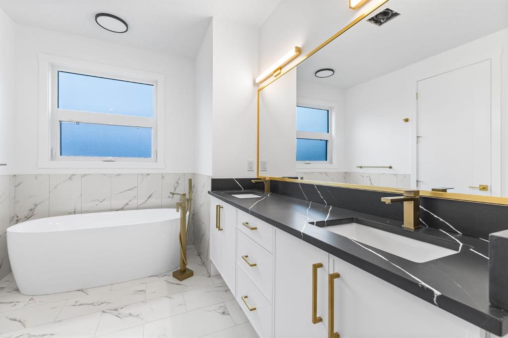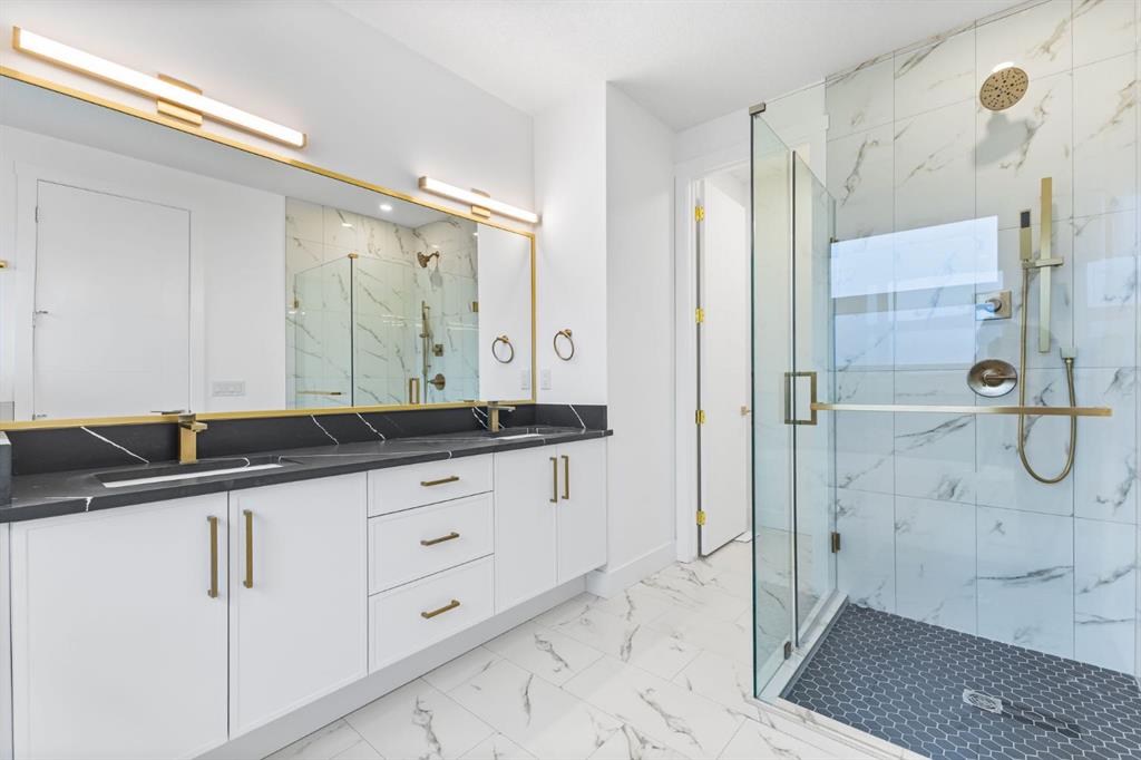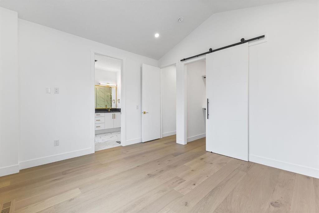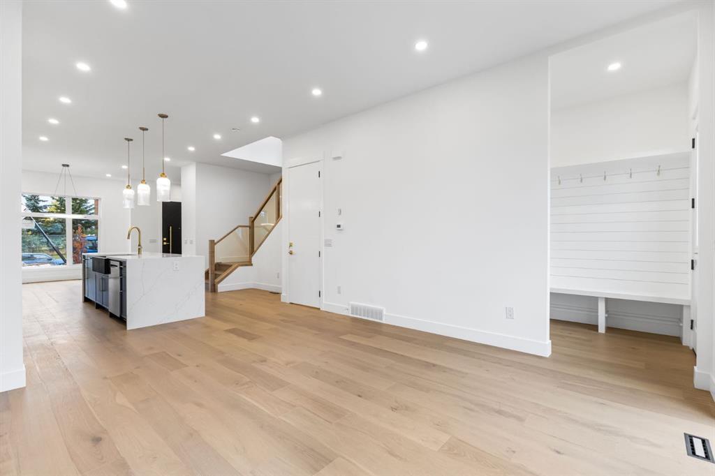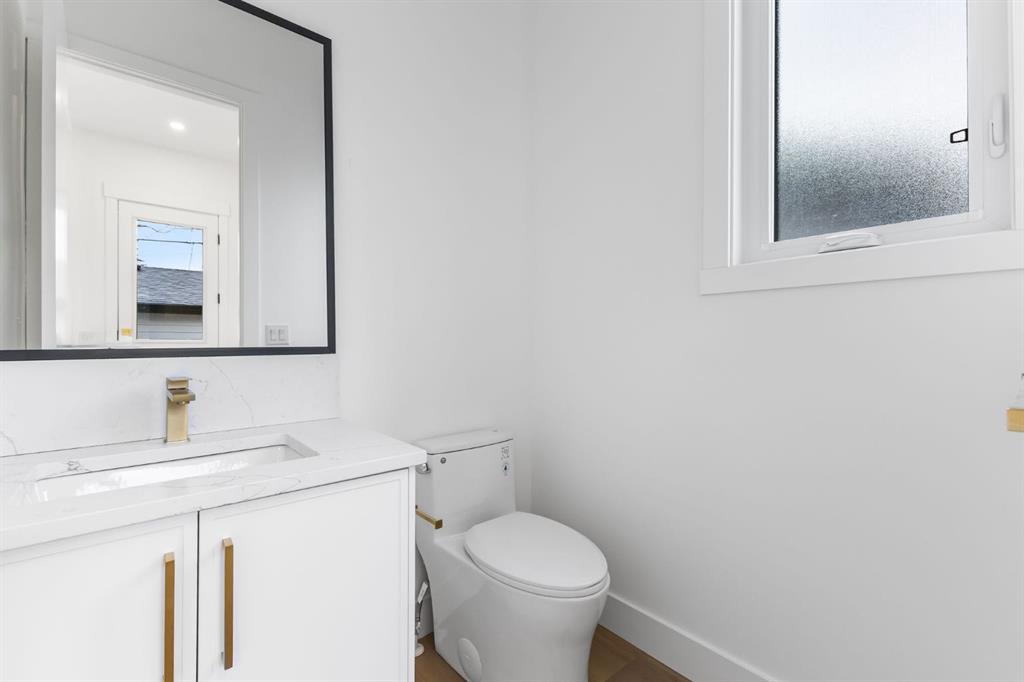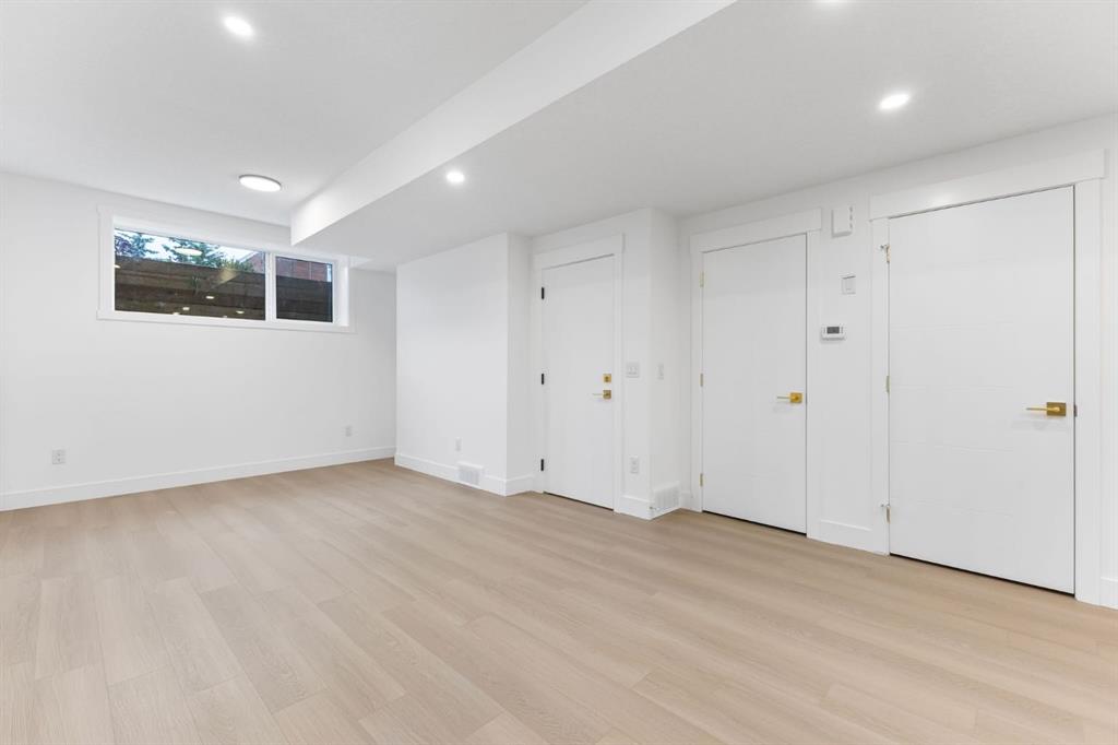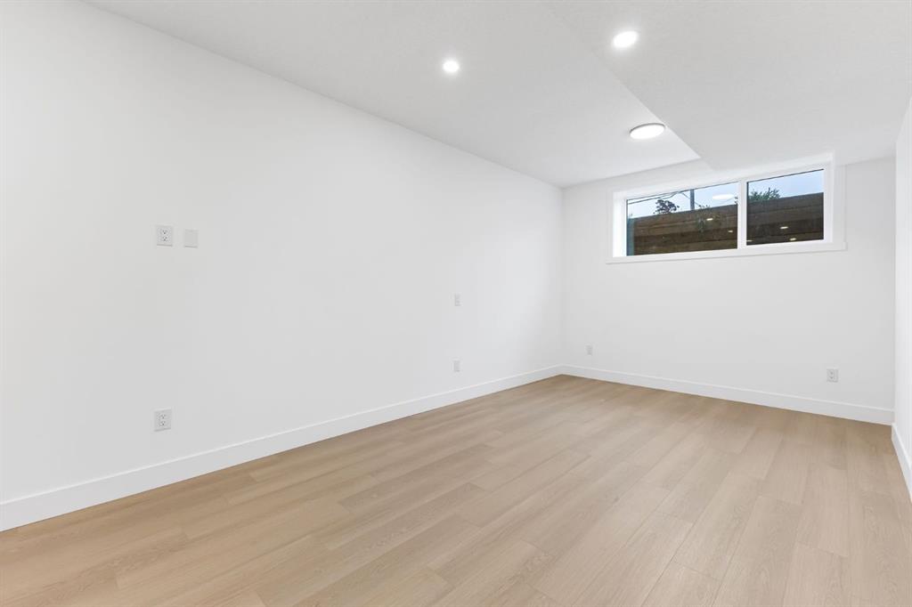 Welcome to this brand-new, 3 bedroom residence perfectly situated in the mature community of Rosscarrock. Designed for modern living and crafted with exceptional attention to detail, this contemporary two-storey home offers over 1900 sq ft of beautifully developed space, plus a legal self-contained one-bedroom basement suite—ideal for guests, or as a potential mortgage helper. The main level showcases an open-concept design enhanced by wide-plank hardwood floors, high ceilings, and expansive windows that flood the space with natural light. The inviting living room features a striking floor to ceiling fireplace and built-in shelving, creating a warm focal point for gatherings. The adjacent dining area easily accommodates family meals or formal entertaining. At the heart of the home, the chef-inspired kitchen impresses with full-height cabinetry, quartz countertops, an oversized island with breakfast bar and excellent appliance package. Thoughtful details such as recessed lighting, designer chandelier, a functional mudroom with custom built-ins and 2 piece powder room elevate the space. Upstairs, the vaulted-ceiling primary suite is a private retreat, complete with a spacious walk-in closet fitted with custom organizers and a luxurious 5-piece ensuite featuring double sinks, a quartz-topped vanity, freestanding soaking tub, and separate glass shower. Two additional bedrooms, a 4-piece bath, and a convenient laundry room with sink complete this level. The fully developed lower level has been designed as a private, self-contained legal one-bedroom suite, complete with its own kitchen, living area, full bathroom, and laundry facilities. Large windows, recessed lighting, and quality finishes ensure the suite feels bright and inviting—ideal for extended family, guests, or rental use. Outside, enjoy a private, landscaped yard with a rear deck, fencing, and a double detached garage. The home’s exterior blends timeless brick and composite siding with modern lines and a welcoming south-facing front exposure. Situated on a quiet street within walking distance to parks, playgrounds & schools and close to Shaganappi Point Golf Course, shopping, scenic Edworthy Park and public transit, this property offers the perfect balance of style, flexibility, and convenience. Newly built in 2025, this outstanding Rosscarrock residence delivers premium craftsmanship, functional design, and exceptional versatility—ideal for today’s discerning buyer seeking luxury living with the added benefit of a legal self-contained suite.