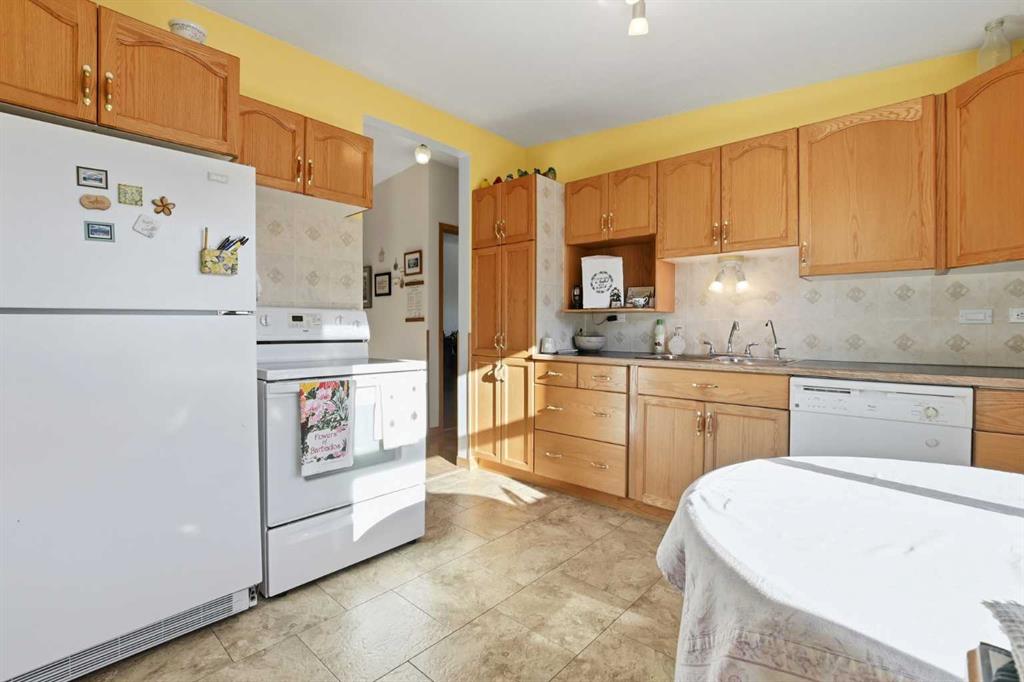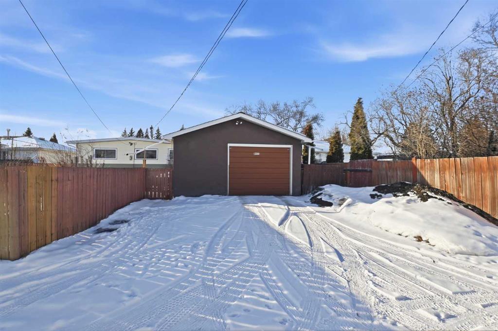 Beautifully maintained mid-century bungalow, lovingly cared for over the years and now awaiting its new owners. Situated on a large lot, this home offers a detached single-car garage plus a carport with accessibility features—making it a fantastic option for a variety of lifestyles. The main floor provides 1,170 sq. Ft. (above grade) of functional living space, featuring three bedrooms and a 4-piece bathroom. The living room showcases an original painted brick feature wall and impeccably preserved original hardwood flooring. A formal dining area sits just off the kitchen, while the bright kitchen offers space for additional seating and a convenient side entrance leading to the side yard. The fully finished basement includes a bedroom, storage room, comfortable living area, additional nook, a 3-piece bathroom with tiled curb-less shower, and a den—ideal for extended family, guests, or a home office setup. Additional highlights include: a fully fenced yard with large shed, all windows replaced with vinyl windows (except one basement window) in approx. 2011 & 2022, updated basement flooring (hallway, stairs, den, and living area), and the furnace + hot water tank are scheduled to be replaced for the new owners. The carport/ramp was completed in 2011 as well as new fascia, soffit, siding, and insulation. This home has been immaculately cared for and offers exceptional value.