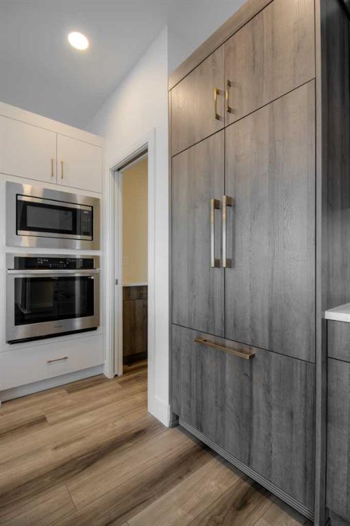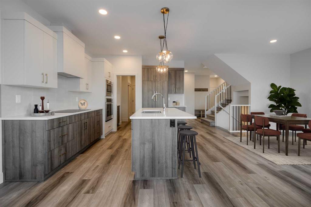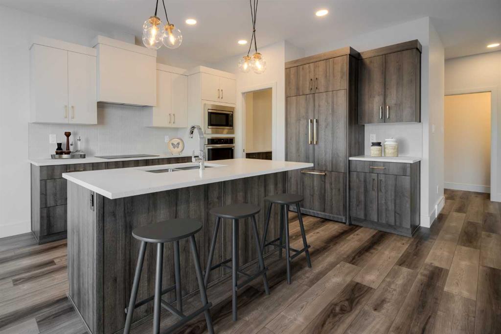 Welcome to the "Comrie" by Stranville Living, located in the desirable Lethbridge community of Southbrook. This new home is situated merely a few dozen meters from Dr. Robert Plaxton K-5 public elementary school, whose property includes a new playground, soccer pitch, baseball diamond, and a basketball court. Southbrook is conveniently located minutes away from big box shopping, various restaurants, and the VisitLethbridge.com arena and event center. This two storey home is well laid out and boasts a main floor rivaled by few homes of this size. It incudes a beautifully appointed kitchen with Adora Cabinets, fully tiled backsplash, and quartz countertops at the base cabinets and large island. Stranville Living's top tier appliance package includes a seamlessly integrated paneled Fisher & Paykel fridge, paneled dishwasher, induction cooktop, built-in hood fan, and a stainless steel wall oven and microwave combo unit. All in all, this is a clean and tight family home backing onto a new elementary school in one of the nicest neighborhoods in south Lethbridge. Tasteful finishes and quality workmanship make this an excellent investment for a buyer looking to start or continue the path to building equity through home ownership. High efficient mechanical equipment, Low E windows, and spray foam in the rim joists help keep your heating ad cooling costs in check. Very cool house on a terrific street in south Lethbridge! Photos contain virtual staging. There's nothing like NEW!
