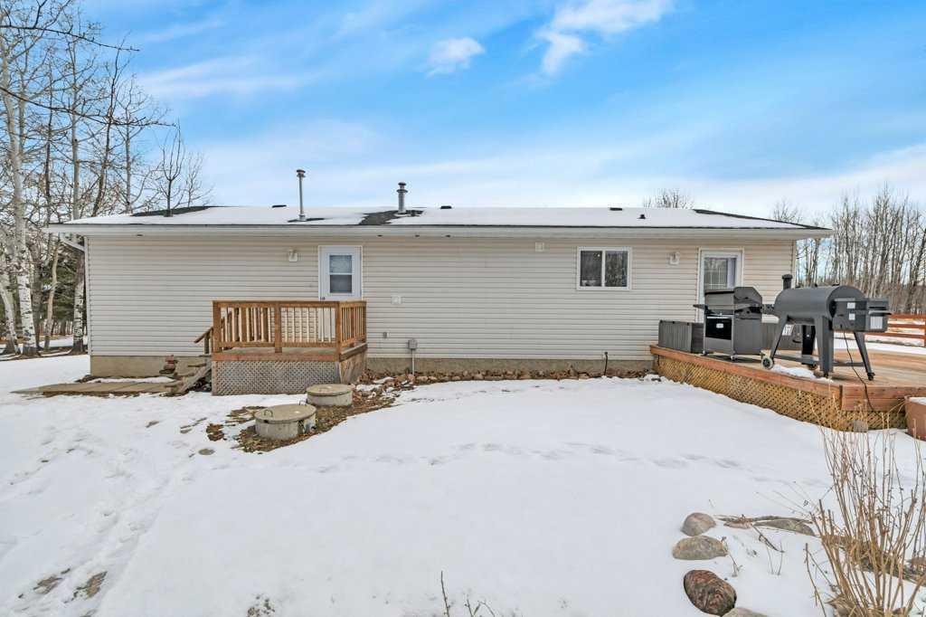 Tucked away on a quiet dead-end road, this immaculate 3.97-acre property offers the privacy and peaceful lifestyle rural Alberta buyers are searching for—just minutes from Buck Lake and within easy reach of Twin Lakes, Battle Lake or Pigeon Lake to the East and Rocky Mountain House & beyond to the West. Location is ideal for an outdoor enthusiast and has also been an easy commute for owners working in town. And you are just 3.5 miles away from the best pizza in the area at Pendryl Store! This beautifully maintained 2005, 1,286 sq ft manufactured home truly stands out from the rest. Thoughtful updates throughout include new shingles (2023), stylish composite wood flooring, and new vinyl flooring in the kitchen. The refreshed kitchen, complete with updated lighting and a functional island, creates a warm and inviting space that feels both modern and practical. Outside, the property is equally impressive and well set up for country living. Previously home to horses, the acreage features a small barn with water service, along with multiple outbuildings including a workshop, sheds, and a sea can—all included. The yard and gardens have been meticulously cared for, showcasing established perennials and newly planted saskatoon bushes added just last year. The home is serviced by propane with a 1,000-gallon leased tank through the Co-op (which the new owners could transfer to themselves if they choose), and natural gas is conveniently available at the property line should a buyer wish to connect (standard connection fees apply). Zoned Conservation District, this versatile acreage offers excellent potential for a hobby farm or a peaceful rural retreat. Whether you're looking to keep animals, garden, or simply enjoy the outdoors, this property delivers space, privacy, and location in one exceptional package.