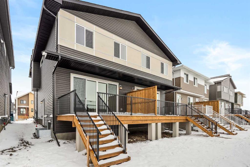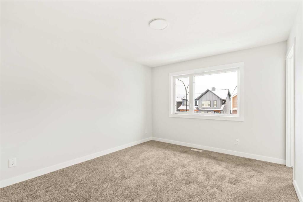 Welcome to the 'Oak' by Brookfield Residential, a beautifully crafted semi-detached home tucked into Calgary’s newest community, Starling. Thoughtfully planned and rich with natural light, this residence blends style, function, and future potential in a way that feels instantly welcoming. Step inside to a layout that truly works for everyday life. Centered around a bright, well-appointed kitchen, the main floor offers seamless flow between the front dining area and the spacious rear living room. The gourmet kitchen package elevates the space with a large central island, ideal for gathering, prepping, or hosting with ease. At the back of the home, the great room frames peaceful views of the backyard and the park beyond, with a full wall of windows and patio doors keeping the space sunlit from morning to sunset. Upstairs, an airy bonus room anchors the second floor, thoughtfully separating the primary retreat from the secondary bedrooms. The primary suite feels like a quiet getaway, featuring a windowed walk-in closet, and a private ensuite complete with dual sinks and a walk-in shower. Two additional bedrooms, a 4-piece bathroom, and a conveniently located laundry room ensure the upper level meets the needs of families, guests, or home office setups. The lower level opens up a world of opportunity. With a private side entrance and basement rough-ins already in place, the space is ready for future development, whether you're envisioning a suite (subject to City of Calgary approval), recreation area, or additional living space. Built with quality in mind and backed by both full builder warranty and Alberta New Home Warranty, this home delivers peace of mind with every detail. In Starling, you’re not just buying a home - you’re choosing a place designed to grow with you.