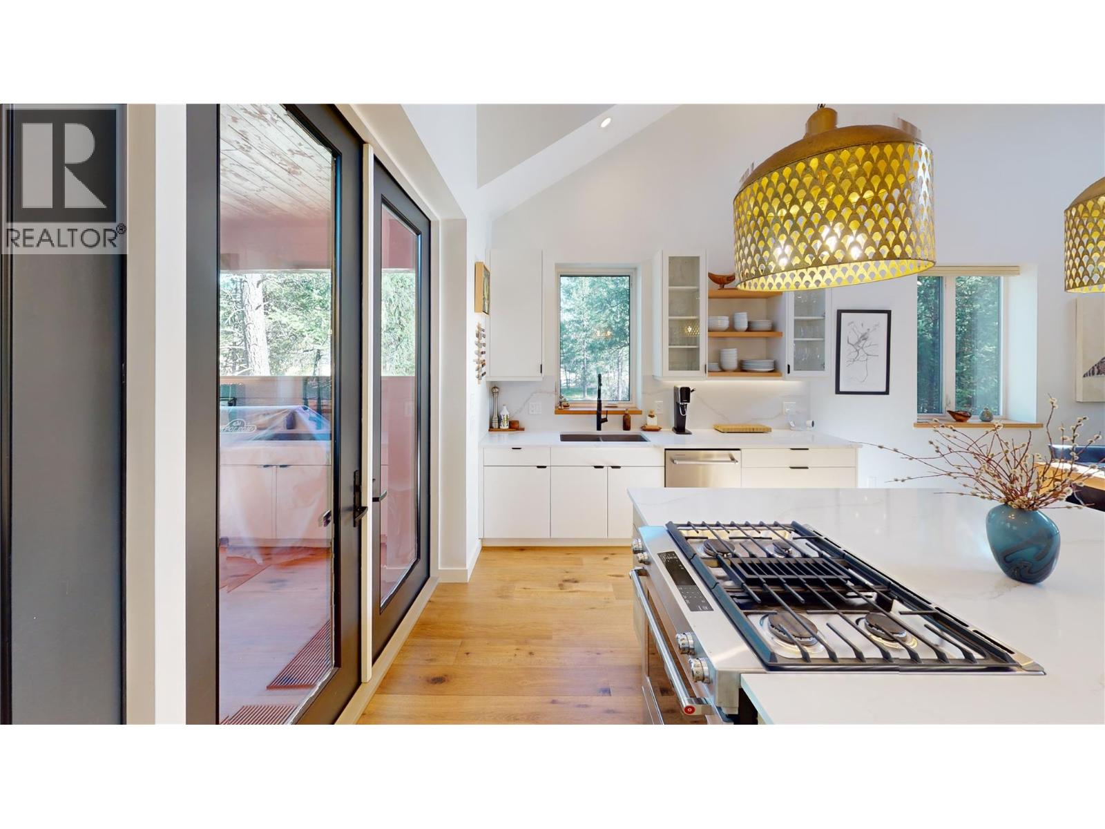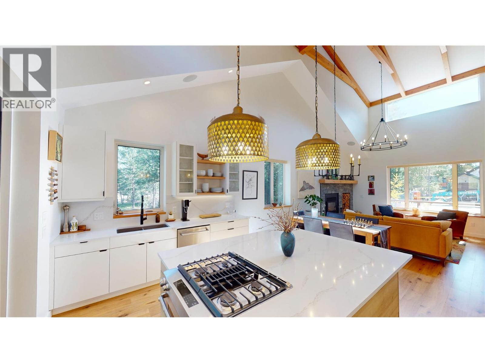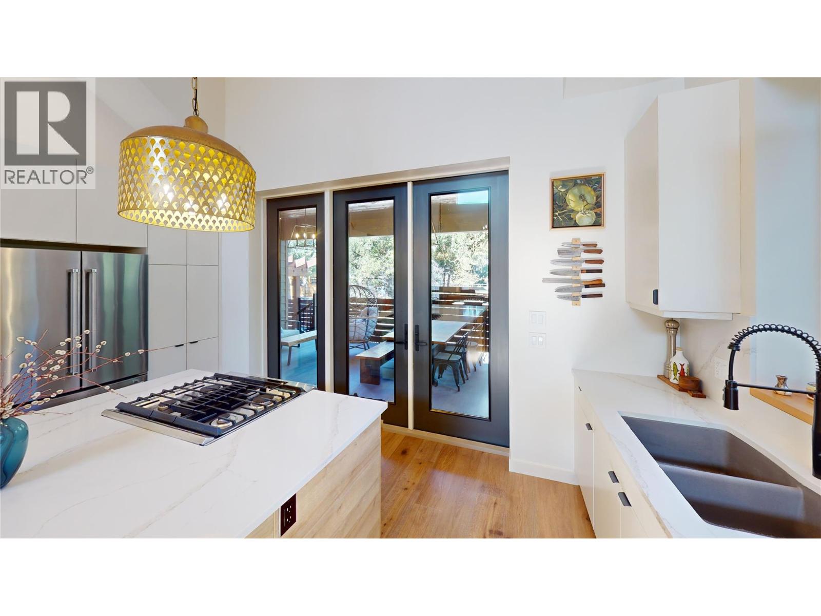 Discover this stunning, nearly-new Pedley Heights residence offering exclusive beach access and modern mountain living at its finest. Featuring three spacious bedrooms plus a versatile den that can serve as a fourth bedroom, this home blends comfort, craftsmanship, and style. The open-concept main floor is designed for effortless entertaining, with two sets of deck doors that extend your living space to a heated concrete patio. Overhead radiant heaters allow you to enjoy the outdoors throughout the year. Inside, vaulted ceilings with locally sourced custom wood beams and large windows fill the space with natural light. A sealed, high-efficiency fireplace with a fan creates the perfect spot to curl up with a book or a warm drink on cold winter nights. The generous primary suite offers private deck access and a bright, spa-inspired ensuite featuring heated floors, a rainfall shower with multiple showerheads, and direct access to the saltwater hot tub. The lower level includes two additional bedrooms, a full bathroom, a laundry room, and a family or recreation room with a custom wet bar that includes wood shelving, a dishwasher, a wine fridge, and a microwave. The oversized garage accommodates trucks and boats and features heated floors, a half bath, and a side gear room for all your equipment. Outside, you will find thoughtful details such as firewood storage for the fireplace and firepit, along with ample storage beneath the rear deck. The custom, low-maintenance landscaping showcases vibrant flowers, mature trees, rock features, and a sweeping rock wall firepit area. A full irrigation system keeps everything lush so you can spend more time enjoying the nearby beach and golf courses. Just steps from your back door, a path leads to the private community beach, playground, and pickleball and basketball courts. This is your opportunity to experience the best of the Columbia Valley lifestyle.