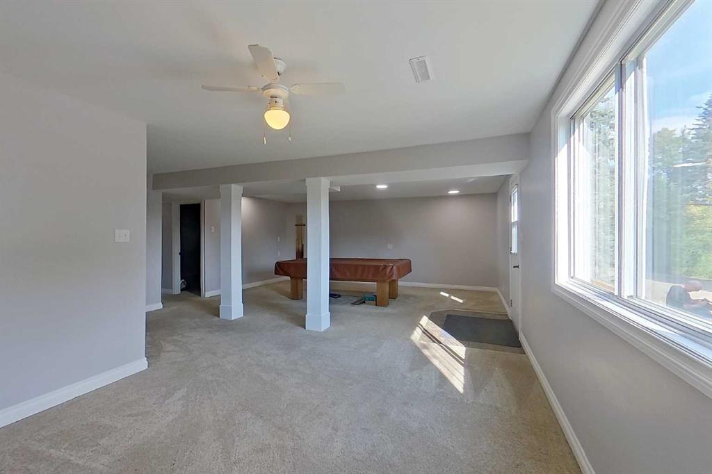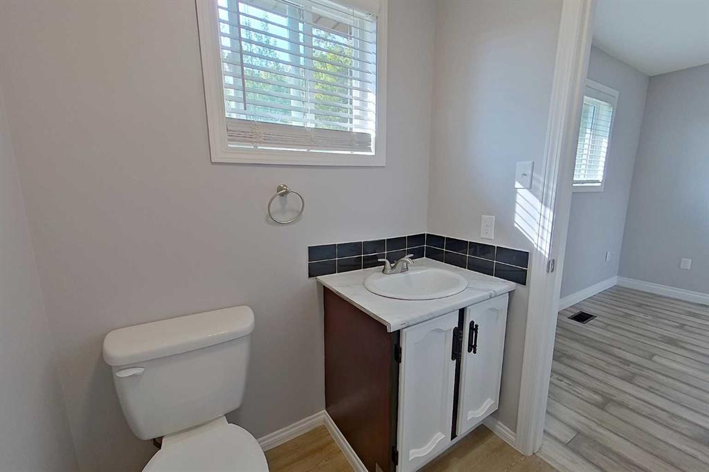 Welcome to this beautifully updated 4-bedroom, 3-bathroom home with a walkout basement, ideally located in town yet offering exceptional privacy. Step inside to find stunning updated flooring throughout and a gorgeous modern kitchen featuring a large island—perfect for family gatherings and entertaining. The upper level offers a spacious primary bedroom with a 3-piece ensuite, plus two additional bedrooms and a 4-piece bathroom complete with a luxurious jetted tub. Downstairs, the walkout basement expands your living space with a bright rec room, cozy family room, a 3-piece bathroom, a fourth bedroom, and a versatile flex room ideal for an office, toy room, or home gym. A large utility/laundry room provides extra storage space for convenience. Enjoy your own private outdoor retreat with a fenced yard, deck for entertaining, and space for kids and pets to play safely. Recent upgrades include brand new carpet flooring downstairs, a new furnace, and a durable metal roof and gutters installed approximately 4-5 years ago. Additionally, a tarp shed and a garden shed are also included.