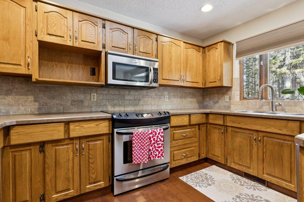 Spacious, updated family home on quiet cul-de-sac in desirable Redwood Meadows. The bathrooms, carpet, hardwood, lighting and paint were updated in 2010, and a new furnace in 2025. There is a large primary bedroom with modern five piece ensuite, featuring a custom shower with rain-head and massage jets, and a heated floor. There are two other bedrooms and a renovated bathroom upstairs. Main level has lofted ceiling, skylights and hardwood throughout. Large kitchen features stainless steel appliances, new backsplash and lots of counter space. The cozy family room has a stone-faced wood burning fireplace, and there is also a home office and full bath on this level. The basement is partially finished with a comfortable flex room and lots of storage space. The large, private backyard has a wonderful brick firepit for enjoying summer evenings, and also is very close to the berm trail, river, and lots of walking and biking paths. The roof has been finished with long life concrete tiles. This home has never been affected by flooding! Redwood Meadows is a popular and friendly community only a 20 minute drive to Calgary and a 15 minute drive to Cochrane, and only five minutes to the popular hamlet of Bragg Creek, with restaurants and shopping. World famous Kananaskis Country is also close by, with all of its recreational opportunities. Check out the 3-D tour and book your appointment today!