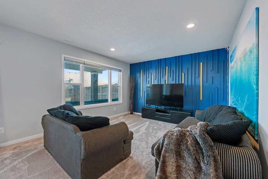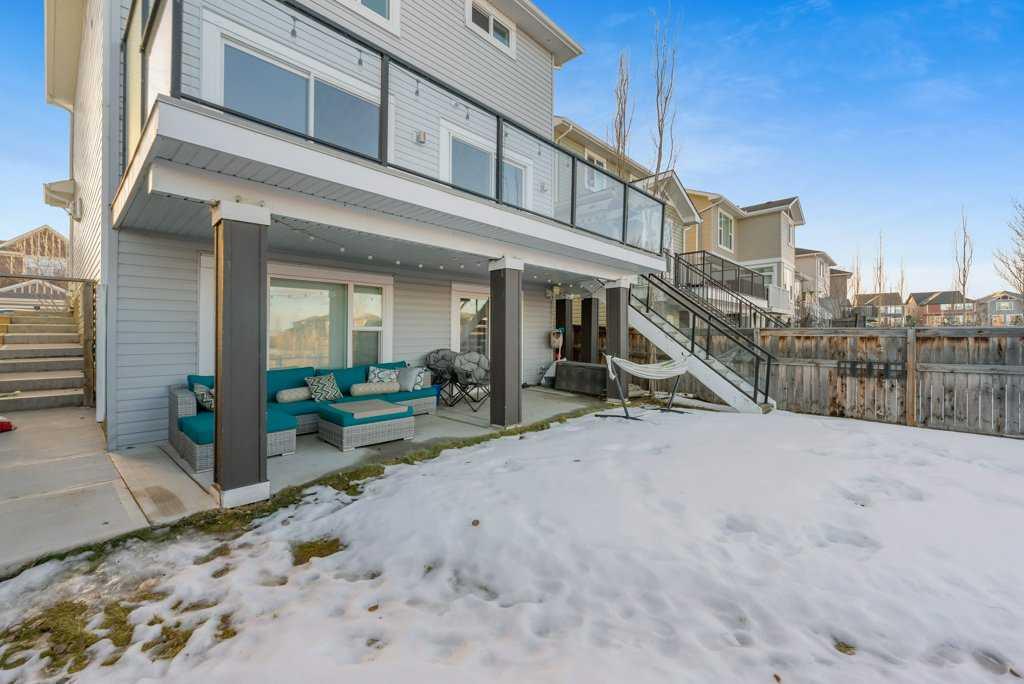 Beautiful 4 bedroom, fully developed WALKOUT HOME backing directly onto GREEN SPACE & PLAYGROUND, offering over 3,000 sq ft of total living space in a quiet, family friendly lake community of Auburn Bay, close to schools and all amenities. Perfectly positioned on a peaceful street, this home offers a thoughtful design, creating a bright and spacious environment that is ideal for comfortable living and effortless entertaining. The main floor showcases an open-concept layout filled with natural light from two expansive sliding patio doors & plenty of windows that frame tranquil pond views behind the home. At the center of the home is a stunning chef-inspired kitchen, featuring sleek cabinetry, quartz countertops, stainless steel appliances, including two ovens and a gas line ready for a gas range. A large central island highlights the room, offering plenty of seating and workspace while connecting seamlessly to the dining area and welcoming living room, making it the perfect setting for gatherings with family and friends. Just off the dining area, step outside to the impressive full-width deck complemented with modern glass panel railings. With a gas line already installed for your BBQ and beautiful views overlooking the green space and park, this outdoor area creates an fantastic extension of the living space and a perfect setting for summer evenings. Upstairs, you’ll find a spacious vaulted bonus room featuring built-in bench seating with storage, creating a functional space for movie nights or relaxing with family. The generous primary bedroom serves as a private space with a large walk-in closet and a 5 pc. ensuite complete with dual vanities, a deep soaker tub, and separate shower. Two additional bedrooms and a full bathroom complete the upper level. The builder finished walkout basement expands the living space even further, featuring a large recreation room, a guest bedroom, a full bathroom, and a flexible area perfect for a home office, gym, or playroom. Walkout access leads directly to the backyard and green space beyond, enhancing the sense of openness and connection to nature. With over 3,000 sq ft of developed living space, an oversized double attached garage, and the rare advantage of backing directly onto green space and parkland, this home offers a unique combination of privacy, views, and luxury. Located close to both catholic and public elementary and middle schools, pathways, amenities, this is a wonderful opportunity to own a walkout home in a highly desirable community setting. Book your viewing today!
