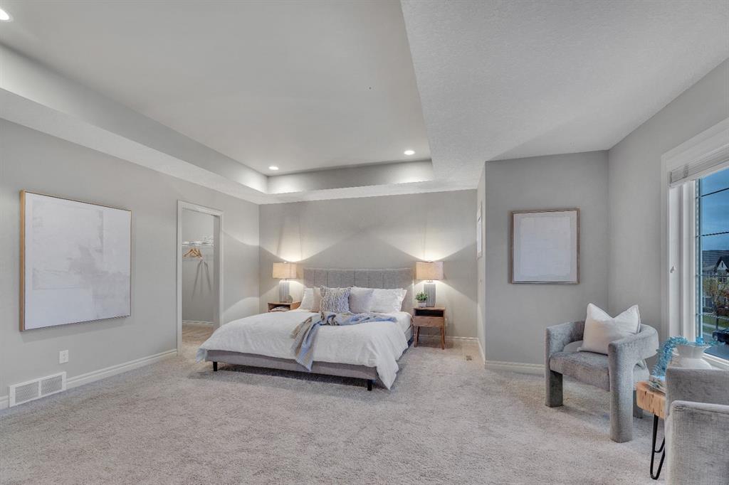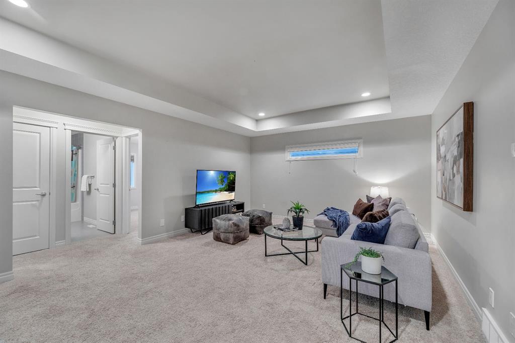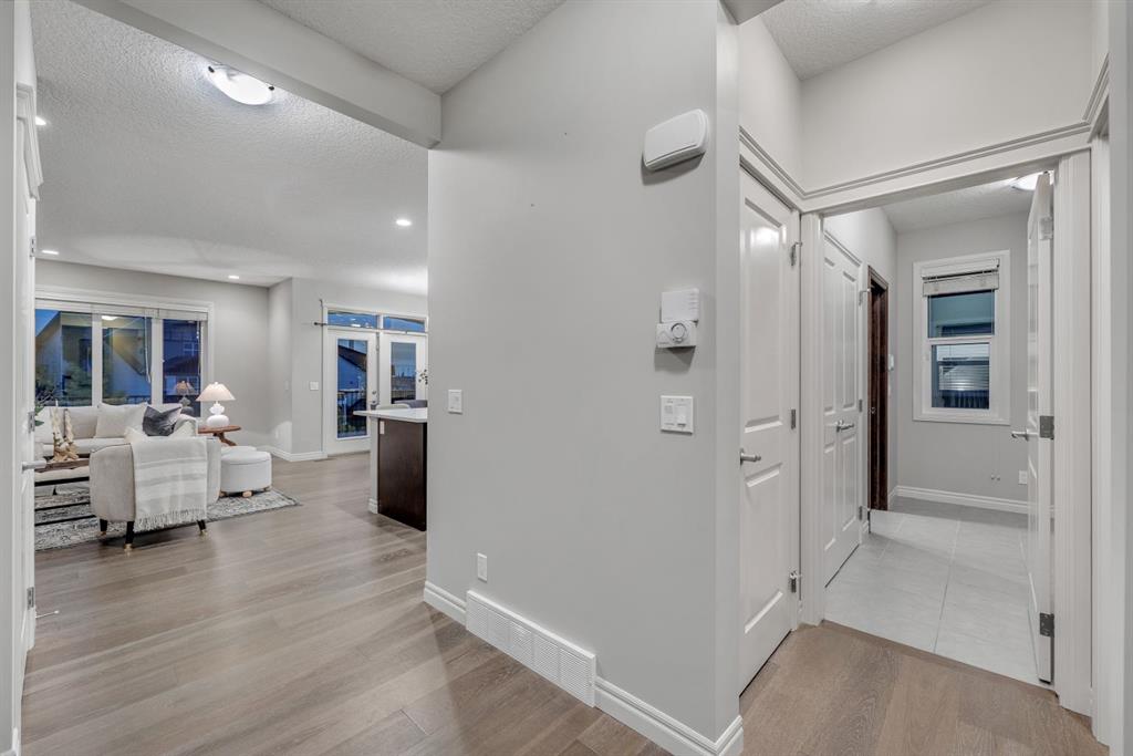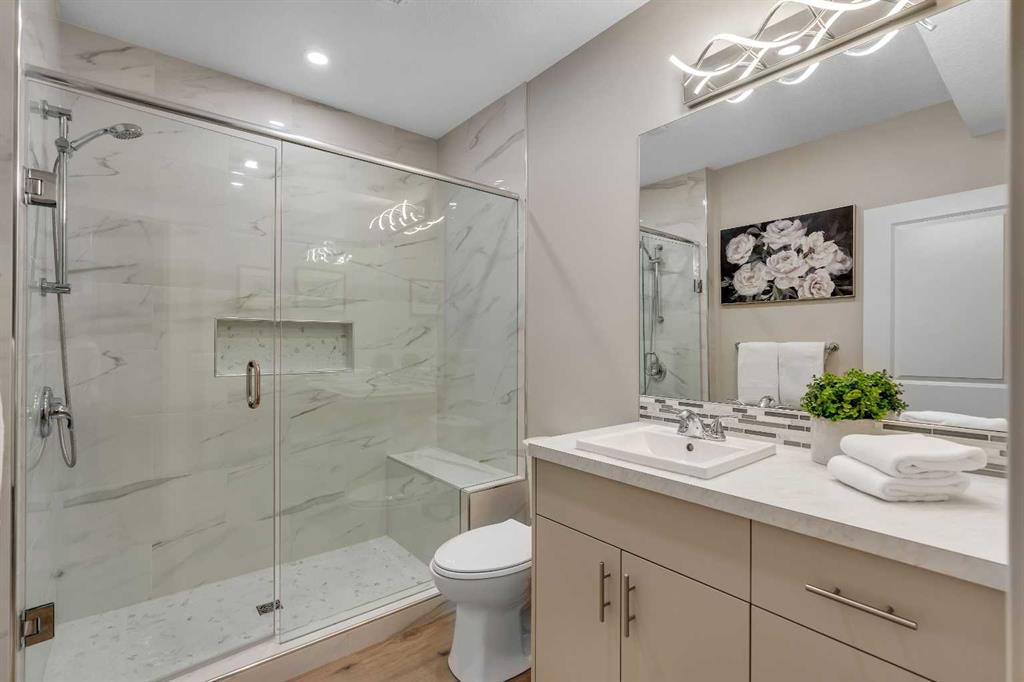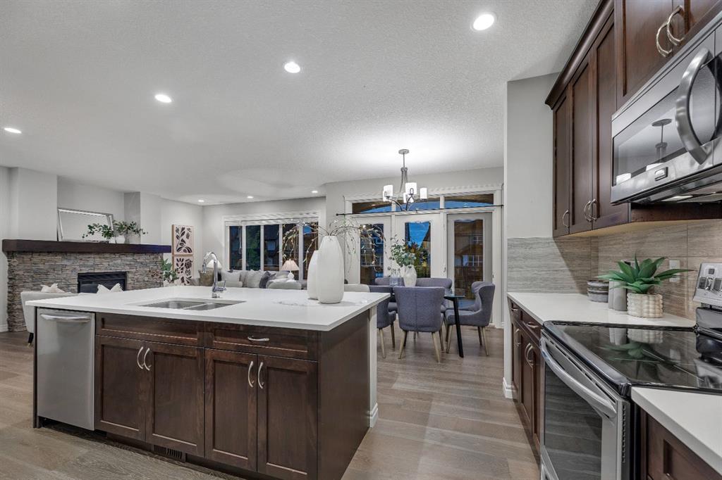 REALTOR BONUS of 5k if conditions are waived by Nov 14 - Step into this stunning 4-bedroom Trico built walkout home, offering over 3,300 sq ft of developed living space, and backing directly onto a peaceful pathway with direct access to the Mahogany wetlands—providing rare privacy and scenic views right in your own backyard. The fully fenced yard and elevated balcony make it easy to enjoy your morning coffee or take in breathtaking evening sunsets while overlooking one of the most desirable natural landscapes in the city. Inside, a grand front entry leads into a bright, open-concept main floor where expansive windows flood the kitchen, dining, and living areas with natural light. A central fireplace serves as a cozy focal point of the living room, while the kitchen features a quartz countertop island, generous counter space, and direct access to the upper balcony for effortless indoor-outdoor living. A smart walkaround layout connects seamlessly to the mudroom, attached garage, and convenient half-bath. Throughout the main floor, engineered hardwood flooring enhances the sense of flow and style. Upstairs, you'll find a spacious bonus room ideal for a media area or playroom, along with two additional bedrooms that share a full bath. The standout is the luxurious primary retreat, complete with high tray ceilings, a spa-inspired ensuite featuring a soaker tub, walk-in shower, double vanity, and a large walk-in closet. The fully finished walkout basement has been newly developed with modern style ~ which offers even more living space, including another generous great room with direct access to the backyard and the serene private pathway beyond which takes you through the various nature setting wetlands. You will also find a spacious additional bedroom with outdoor access, a 3-piece bathroom, and a built-in bar area—perfect for entertaining. For further comfort and convenience, the home has dual air-conditioning, perfect for year-round comfort! Located in the vibrant lake community of Mahogany, you can enjoy exclusive access to beaches, swimming, paddleboarding, and year-round recreation with skating as a winter seasonal hi light. With top-rated schools, shops, restaurants, and a lively community center nearby, Mahogany offers the perfect blend of nature, luxury, and convenience.