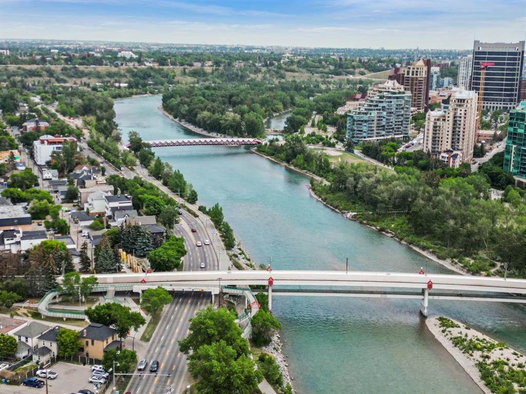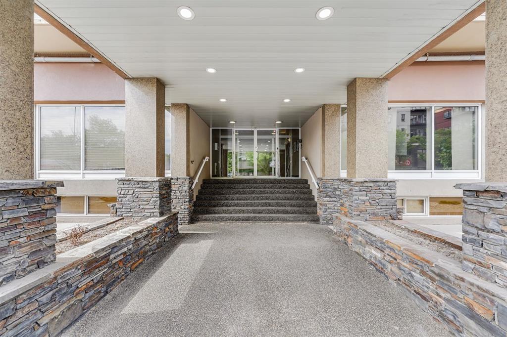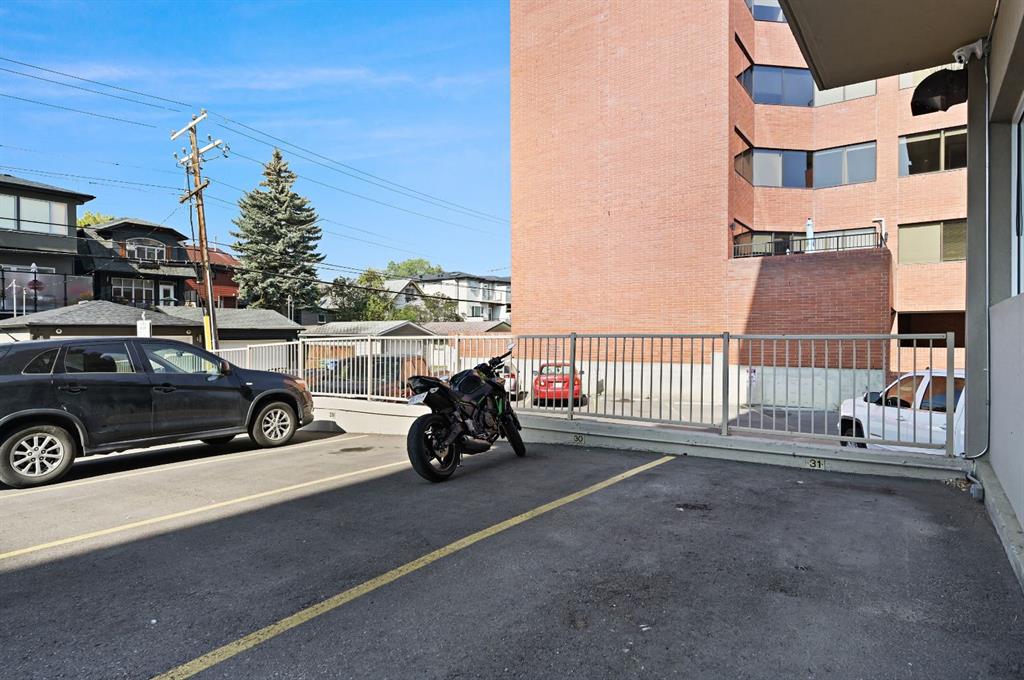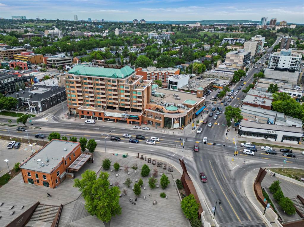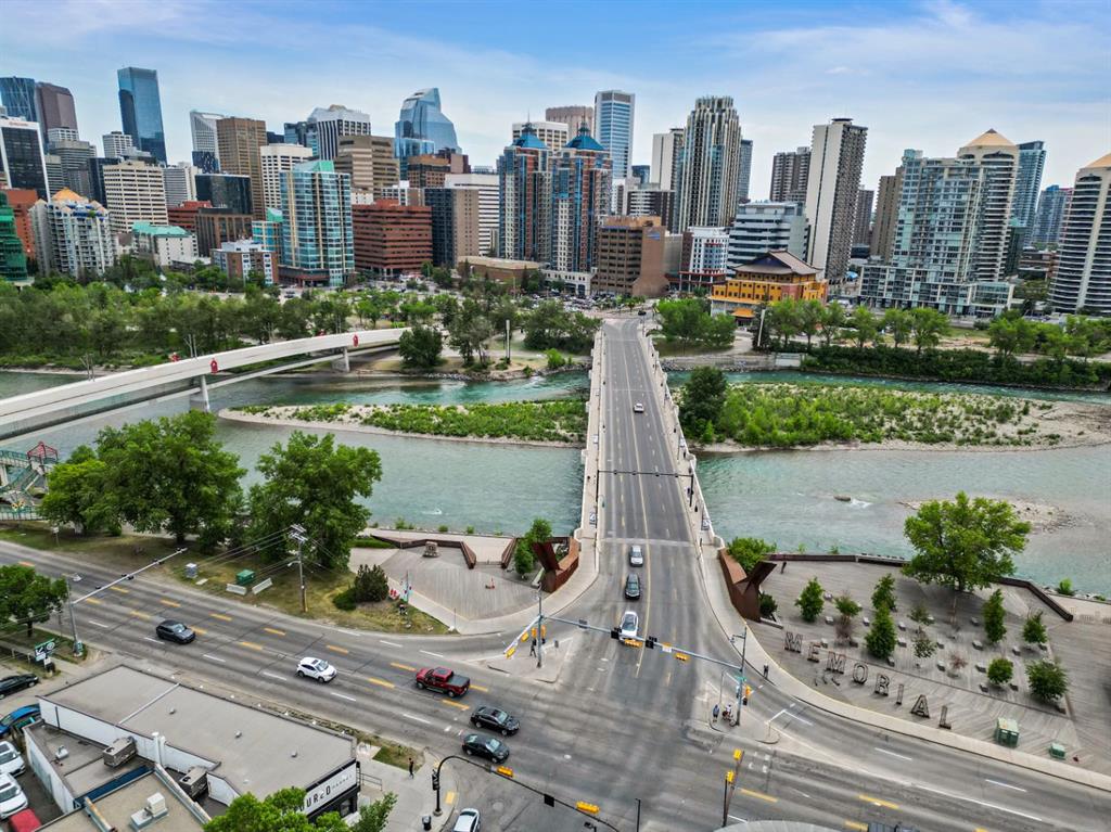 This corner END unit showcases fantastic CITY SKYLINE VIEWS and must be seen. Very close to the downtown core in the heart of Hillhurst, and walking distance to the pubs, restaurants, and shops of Kensington. Stroll to the walking paths along the Bow River, beautiful Riley Park, and the Sunnyside LRT station and even up the hill to SAIT! In a concrete building, this 1-bedroom condo features a kitchen perfect for entertaining with eating bar, stainless steel appliances, granite countertops, mosaic tile backsplash, and darker stained cabinetry, a 5-piece bath with jetted tub and granite counters, cozy living room, IN-SUITE laundry, parking stall (#31) and separate private storage area (#31). The bedroom is separated from the living room and eating area for privacy and quiet. The Vue building offers a fully equipped exercise room with newer equipment and bike storage! The very low condo fee ($440/month) includes heat and water and sewer. Experience the great location, style and convenience of this condo and the Kensington area. Priced to sell.
