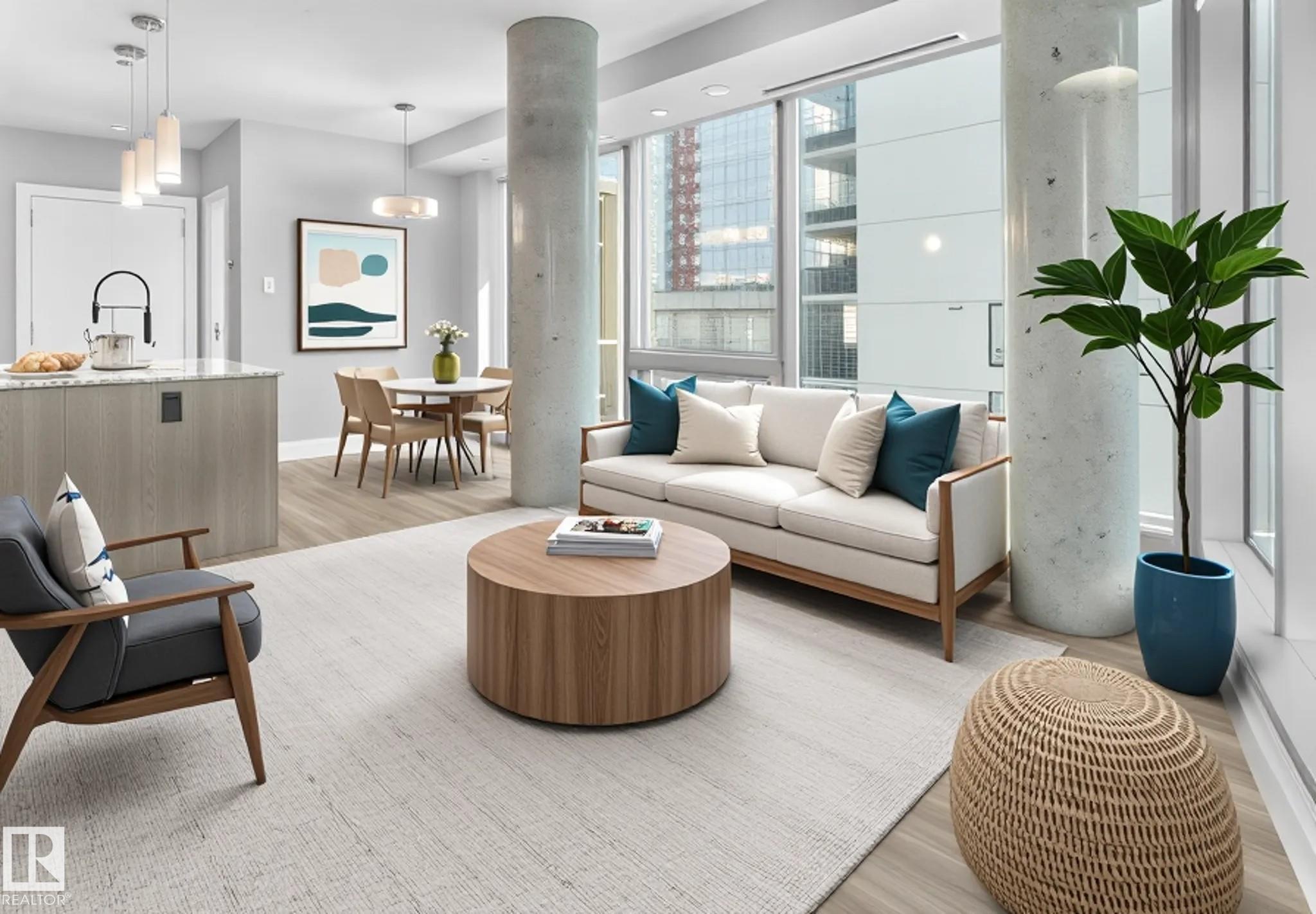 Immaculate 2-bedroom, 2-bath executive condo in the prestigious Pearl Tower. This beautifully maintained unit features floor-to-ceiling windows, new white oak engineered flooring, and an open, stylish floor plan. The contemporary kitchen offers granite counters and stainless steel appliances, flowing seamlessly into a bright living area with glass-door access to your private balcony. The layout includes two spacious bedrooms and two well-appointed bathrooms, including a 4-piece bath with a soaker tub/shower surround. Additional highlights: in-suite laundry, heat-pump heating and central A/C, and more. Enjoy premium building amenities such as concierge service, a well-equipped fitness centre, and elegant social rooms with a kitchen and outdoor patio. All set in an exceptional location close to restaurants, shopping, transit, and Edmonton’s River Valley.