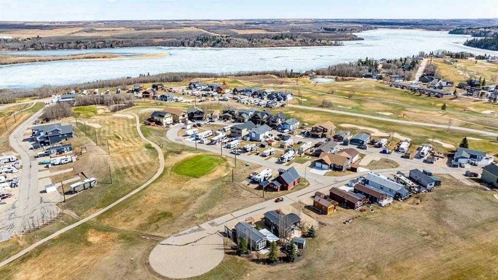 Welcome to the serene beauty of Whispering Pines, where every day feels like a lakeside getaway. Nestled on the shores of picturesque Pine Lake, this exceptional property offers the perfect transition from weekend camping to full-time ( 4 season) lakeside living. Set apart with no neighbors on three sides, this unique lot offers breathtaking panoramic views of the golf course, tranquil pond and sparkling lake just a walk away— an unrivaled retreat of privacy and natural splendor. Step inside the charming park model, where sunlight floods the open-concept interior. The well-appointed front kitchen, cozy dining area and spacious living room create a warm and inviting atmosphere — perfect for everyday living or entertaining. The primary bedroom easily fits a king-size bed. Hosting guests? A pull-out sofa in the living area ensures everyone has space to relax. Double sliding doors lead to a large east-facing deck with a pergola — ideal for morning coffee, evening dinners, or simply soaking in the spectacular views. Equipped with a natural gas furnace, this all-season escape is comfortable year-round. Whether you are seeking solitude, adventure, or a blend of both, Whispering Pines delivers. This community allows short term rentals. As part of a gated, bare land condominium community, residents enjoy access to top-tier amenities including an 18-hole golf course, indoor heated pool, fitness center, clubhouse, restaurant, playground, marina, and sandy beach. From boating and fishing to golfing and swimming, there is something for everyone. Located just 30 minutes from Red Deer, this fully furnished, pet-friendly, turnkey property offers convenience, comfort and community — all in one. Bare land condominium ownership means you own the lot, with low monthly fees covering water, sewer, garbage, lawn maintenance, and clubhouse access. Do not miss your chance to own a piece of paradise at Pine Lake — where lake life meets luxury, and every season brings new memories.