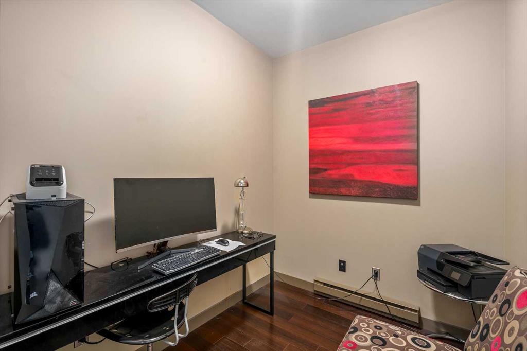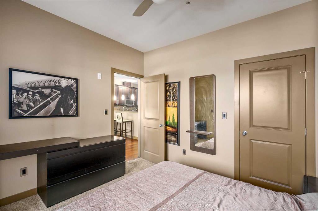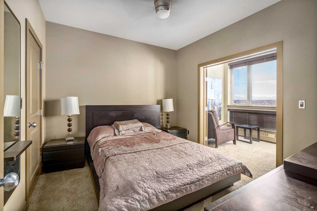 AMAZING VIEWS, INCREDIBLE INNER CITY LOCATION, LUXURY LIVING in this AMENITY RICH COMPLEX. Grande House in SoBow beckons with its warm exterior facade of brick and stone and captures the essence of Historic Inglewood. Concierge services greet you as you enter the spacious front foyer of this concrete building. Stepping into this West facing 5th floor condo your eyes move to the unobstructed views of the city and lush green neighborhood - a picturesque backdrop to a spacious open floor plan. Espresso stained cabinetry is overlaid with gleaming granite counters and is offset with stainless steel appliances in this step saving kitchen that maximizes the ample use of work space and offers the additional casual eating area at the raised eating bar. Flooded with natural light a full bank of floor to ceiling windows highlights the 9 foot ceilings and creates a spacious ambience for relaxing. A sectional will fit comfortably in the Great Room where you can enjoy the A/C in summer or the fireplace in the cooler days ahead. Thoughtfully planned, this unit features a sun room adjacent to the primary bedroom which opens up to the view of the mountains in the morning and the nightlights of the city by evening. A flexible layout in the primary bedroom suits a king sized bed. The four piece main bath is complete with a deep soaker tub, walk-in shower, and a great sized vanity that includes doors and drawers for toiletries and towels. This floor plan also includes a private den/office offset from the Great Room as well as a laundry room with a stacking washer/dryer. This amenity rich building includes a state of the art gym facility, a recreation room with pool tables and foosball table, a movie area complete with recliners; all accessed through Grande House and included in the condo fees which also include water/waste and heat. Inglewood embraces a lifestyle that delivers shops, boutiques and eateries all within walking distance. Pearce Estate Park, the Bow River and the Inglewood Bird Sanctuary are your neighbors at SoBow. Titled Parking and a titled storage locker are found in the secure underground heated parking garage. Call today for your private viewing! Immediate Possession.