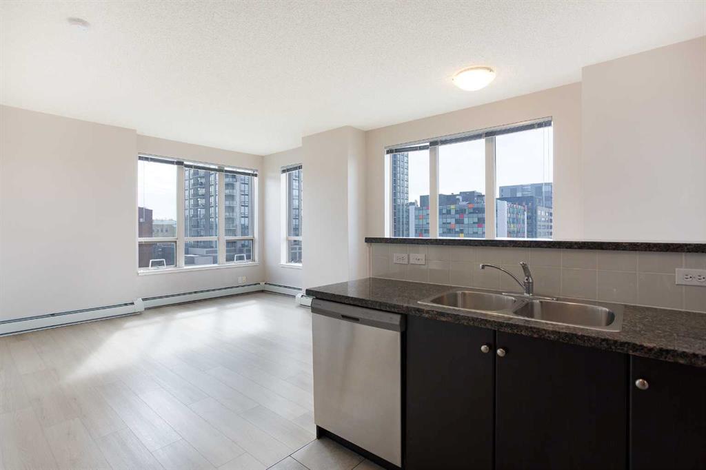 2 BED 2 BATH | CORNER UNIT | SOUTH-WEST FACING | TITLED UNDERGROUND PARKING | CONCIERGE & AMENITIES Welcome to elevated inner-city living in this stylish 2-bedroom, 2-bathroom WEST-facing corner unit in the heart of the Beltline. Recently updated with brand-new Luxury Vinyl Plank flooring, this home features 9-foot ceilings throughout, offering a modern, low-maintenance lifestyle perfect for busy professionals. One of the best layouts in the building, the smart floorplan places the primary bedroom and second bedroom on opposite sides of the unit, with the kitchen and living room in between—creating ideal separation and privacy for roommates, guests, or a home office setup. The living room enjoys south and west exposure and the balcony faces west—making this an exceptionally bright, sun-filled home throughout the day. The open-concept living space is flooded with natural light from wall-to-wall windows and showcases beautiful west-facing views and stunning sunsets. Step outside to your rare oversized balcony (13 ft x 8 ft), significantly larger than most in the building, offering the perfect space to relax, entertain, or enjoy warm summer evenings. The contemporary kitchen features granite countertops, stainless steel appliances, and a convenient breakfast bar for casual dining or hosting friends. The spacious primary bedroom includes a private 3-piece ensuite, while the second bedroom is generously sized and positioned beside a full second bathroom. In-suite laundry adds everyday convenience. This home includes secure underground parking, and condo fees cover all utilities—gas, water, and electricity—providing exceptional value and predictable monthly costs. Located just steps from grocery shopping (including Co-op), cafés, restaurants, nightlife, transit, and downtown offices, this location is ideal for professionals who want to live, work, and play without the commute. Stylish upgrades, an unbeatable layout, west-facing views, and a standout balcony—this is Beltline living done right.