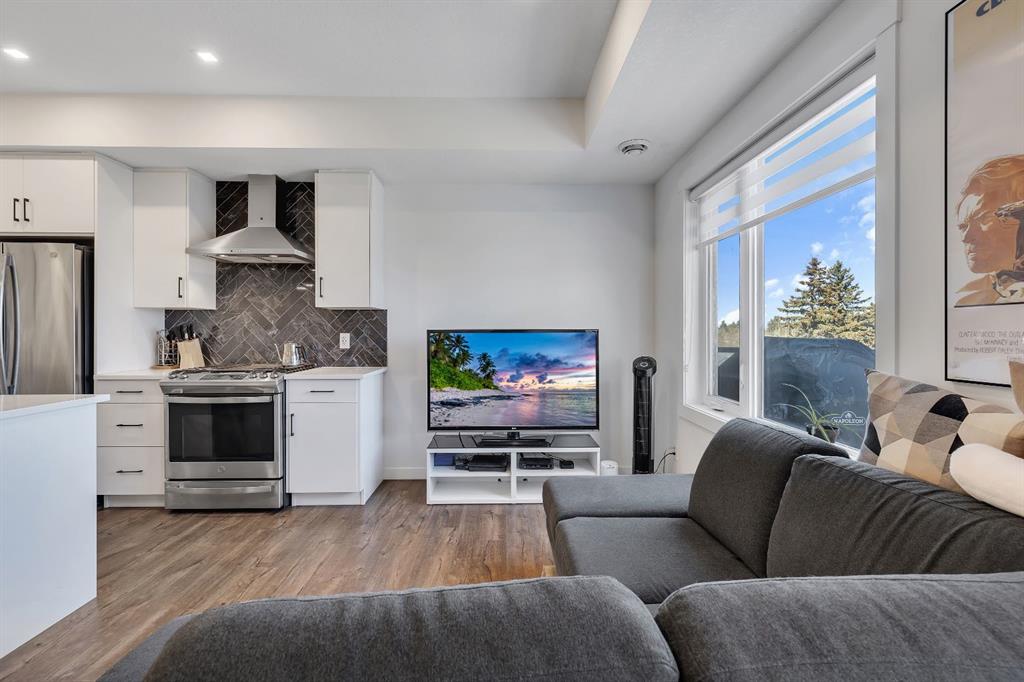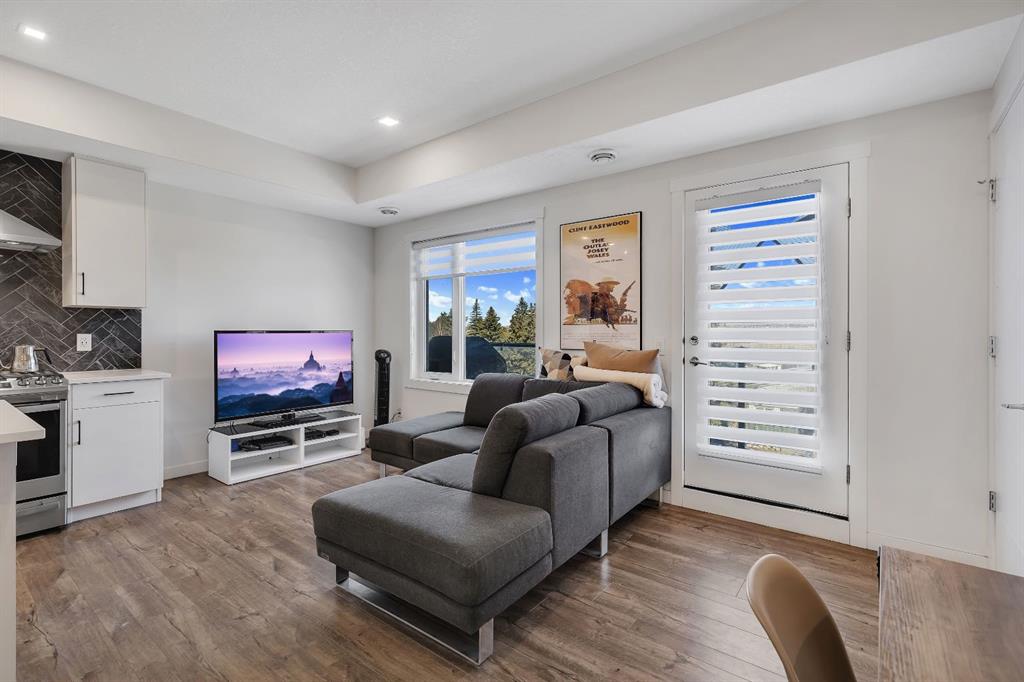 *** Open House Event Saturday April 18th from 2pm-4pm *** Welcome to 516 Greenbriar Common NW, located in the highly sought after community of Greenwich in Calgary. This top floor, end unit stacked townhome showcases upgraded luxury finishes and a bright, open concept layout designed for modern living. Offering over 1,000 sq ft of living space, this thoughtfully designed home features 2 bedrooms and 2 full bathrooms, along with a private, secure single attached garage and a full builder show home upgrade package. It perfectly blends the privacy of a townhome with the convenience of an apartment style layout. Upon entry, you are greeted by a welcoming foyer with under stair storage, leading to two flights of stairs up to your exclusive top floor retreat. The upper level opens into a spacious living and dining area, complemented by a beautifully upgraded kitchen featuring stainless steel gourmet appliances, a gas stove, chimney hood fan, built in microwave, and a full herringbone tile backsplash. Just off the living room, enjoy a large glass panelled balcony with sweeping views toward Bowness and the surrounding green space, perfect for relaxing or entertaining. With only a limited number of upper level units, just 8 in the community, this home offers a rare opportunity for elevated privacy and scenic outlooks over established greenery and ridge pathways. The single level floor plan includes two well appointed bedrooms and two full bathrooms. The primary suite is enhanced by additional corner windows, providing abundant natural light with east facing and south backing exposure. It also features a spacious closet and a private ensuite with a walk in shower, upgraded tile work, and quartz countertops. Built with quality and attention to detail, this home includes vinyl plank flooring from Divine Flooring’s Voyage line, quartz countertops throughout, upgraded stainless steel appliances, enhanced tile work in the kitchen and bathrooms, upgraded carpet and underlay, window coverings, and 9 foot ceilings. Greenwich is a vibrant, growing community offering excellent walkability to nearby amenities such as the Calgary Farmers’ Market, Analog Coffee, Market Wines, and Mash Pizza. Residents also enjoy access to established walking and biking trails, two playgrounds, and an off leash dog park. Conveniently located just 18 minutes to downtown Calgary, 12 minutes to the University of Calgary and Foothills Hospital, and only 45 minutes to the mountains, this home offers the perfect balance of urban convenience and outdoor lifestyle. Discover what makes Greenwich one of NW Calgary’s premier communities to call home.