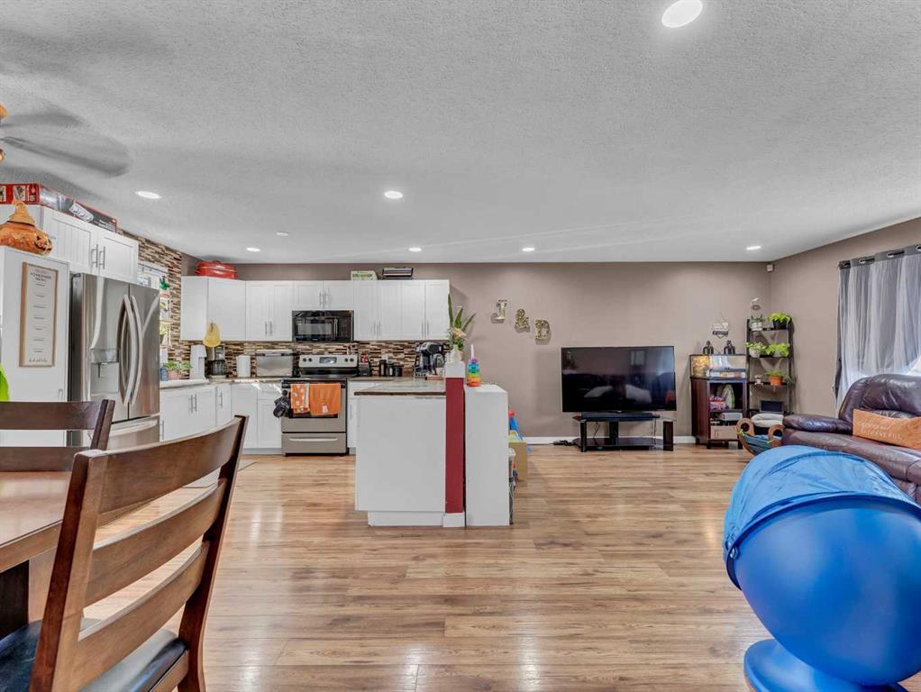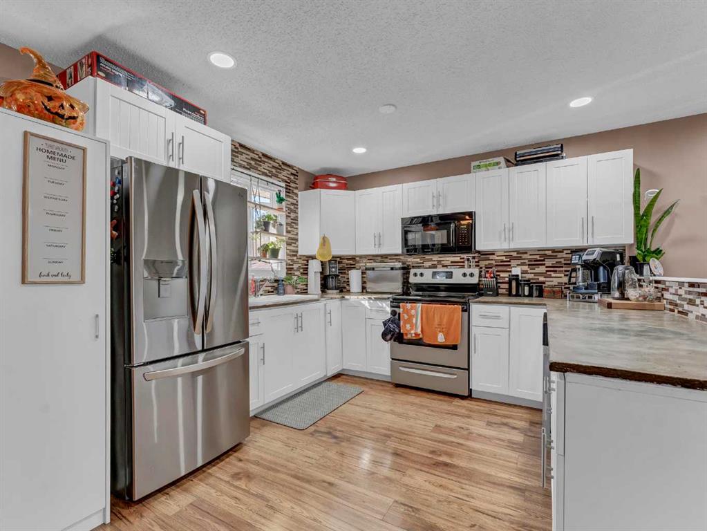 Welcome to this beautifully updated and move-in ready 4-bedroom, 2-bath home located on a great, quiet street — the perfect blend of comfort, affordability, and modern upgrades. Step inside to an inviting open-concept main floor where the living, dining, and kitchen areas flow seamlessly together, enhanced by pot lighting and fresh paint. The kitchen features a new fridge (2024) and stylish updates that make it both functional and attractive. Two bedrooms, including the primary suite, and a refreshed 4-piece bathroom complete the main level. Downstairs, you’ll find two additional bedrooms — one with durable rubber flooring, ideal for a playroom or home gym — along with a cozy family room, a 3-piece bath, and a spacious laundry area with plenty of storage. Numerous updates throughout the home include new shingles and eavestroughs (2021), a new electrical panel (2021), and a brand-new A/C (2024), giving peace of mind for years to come. Outside, enjoy the fully fenced backyard with white vinyl fencing, underground sprinklers both front and back, and ample room to relax or entertain. The true standout is the brand-new premium oversized double garage — fully finished, heated, and extra tall — offering exceptional storage, workspace, or hobby potential. This property truly delivers a rare combination of affordability, updates, and incredible value — a must-see for anyone seeking a move-in ready home with an exceptional garage.